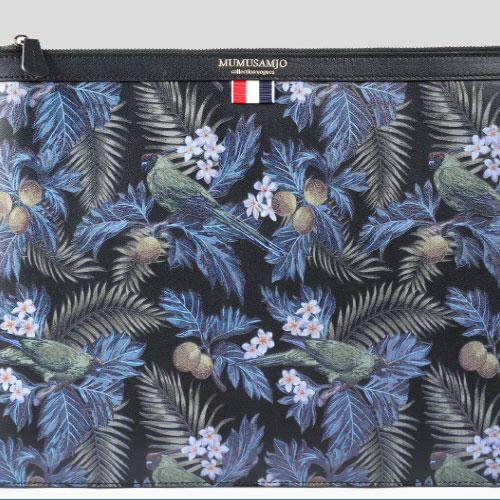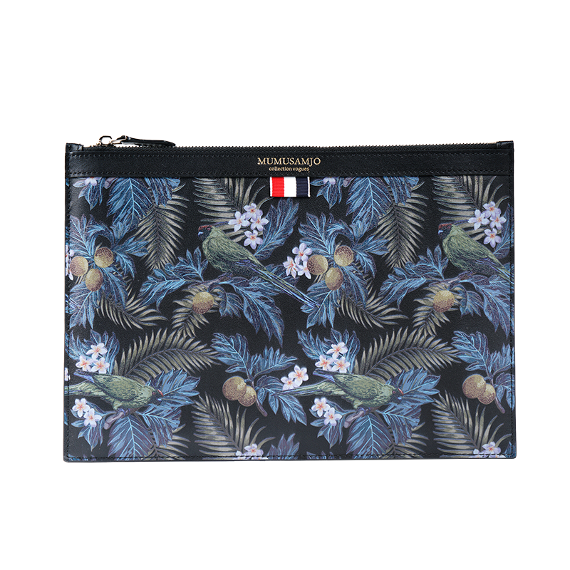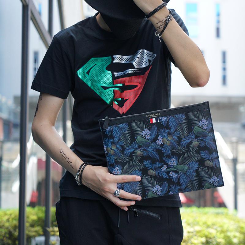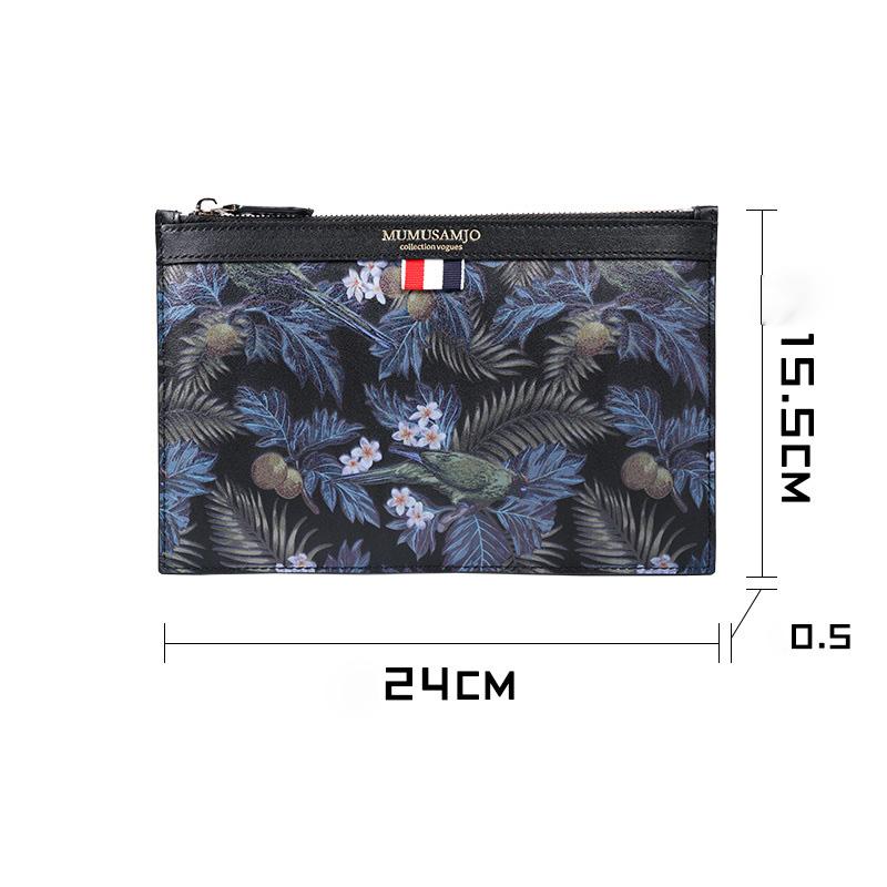 Design: Handmade Leather Mens Clutch Parrots Cool Slim Wallet Zipper Clutch Wristlet Wallet for Men