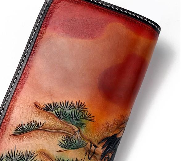 Design: Handmade Leather Mens Clutch Wallet Cool Red-Crowned Crane Tooled Wallet Long Zipper Wallets for Men