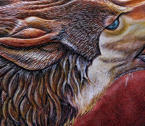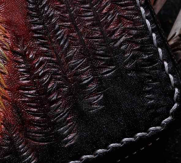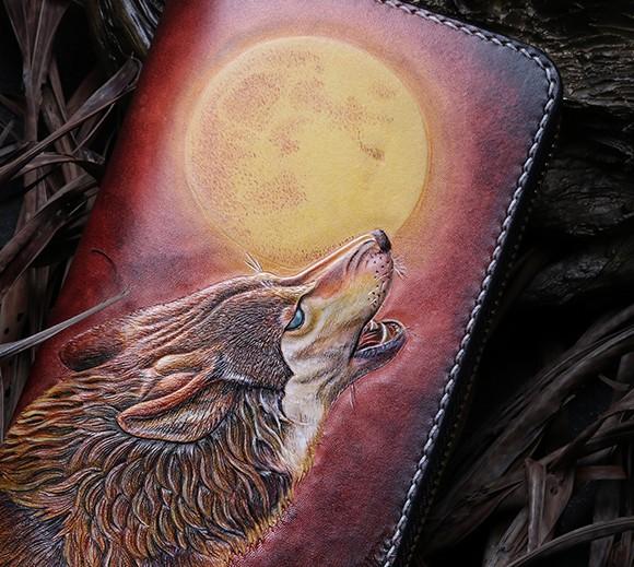 Design: Handmade Leather Mens Clutch Wallet Cool Wolf Tooled Wallet Long Zipper Wallets for Men