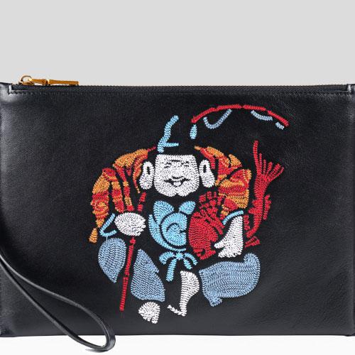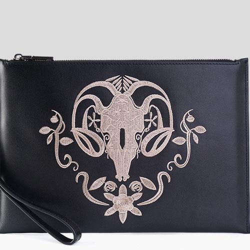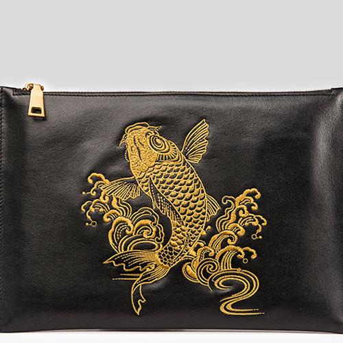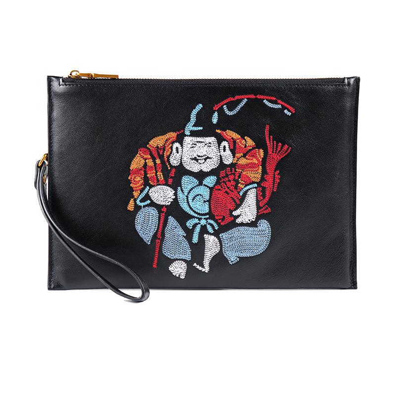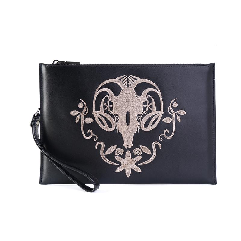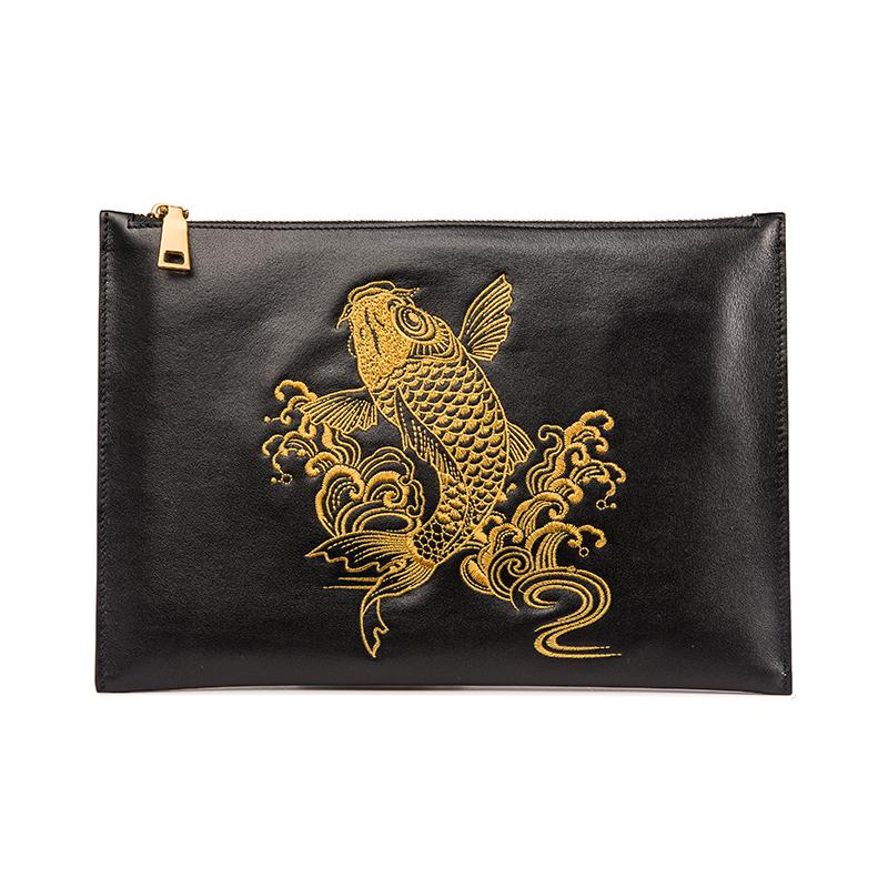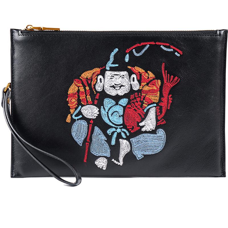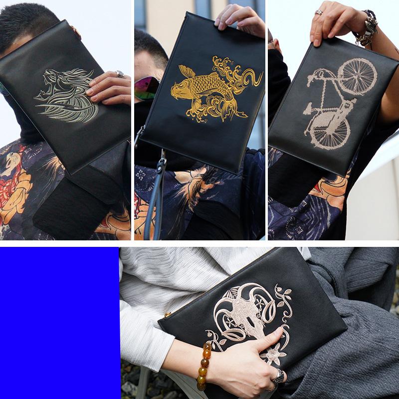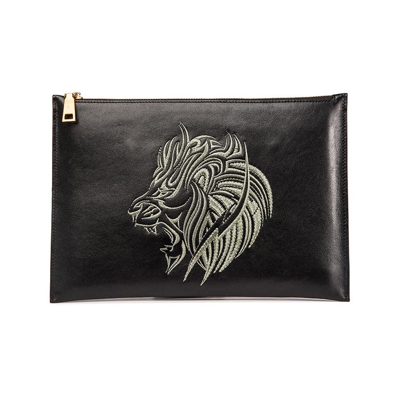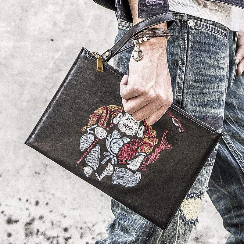 Design: Handmade Leather Mens Cool Embroidery Wallet Zipper Clutch Wristlet Wallet for Men