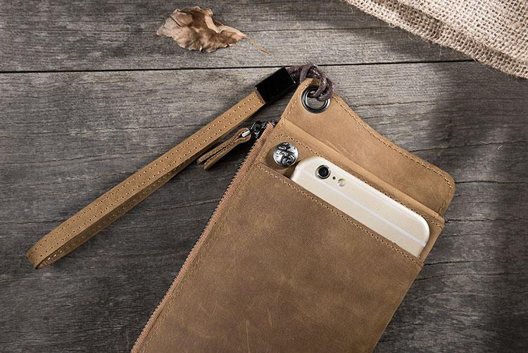 Design: Handmade Leather Mens Cool Long Chain Wallet Phone Biker Trucker Wristlet Wallet