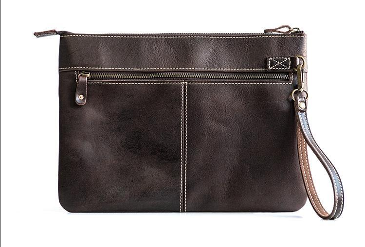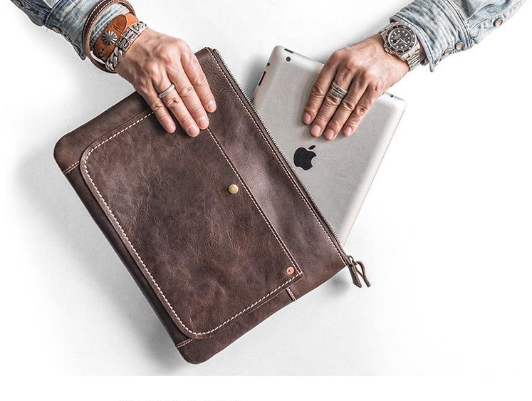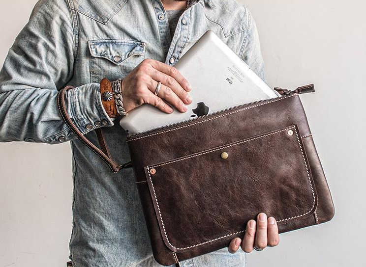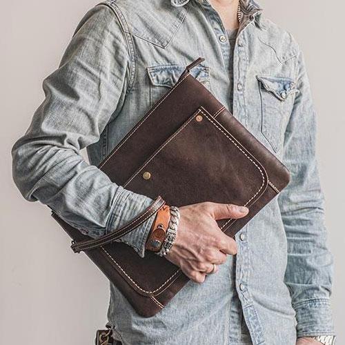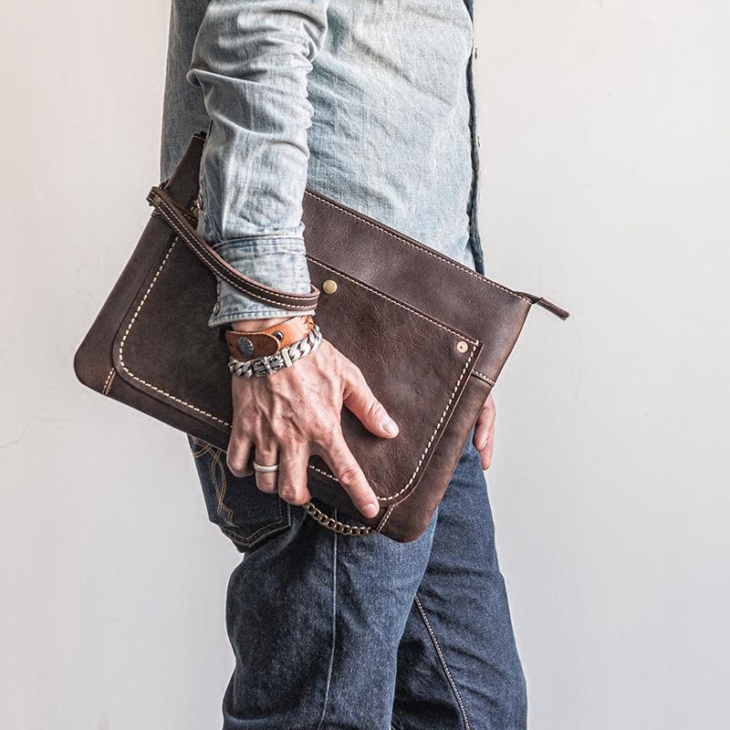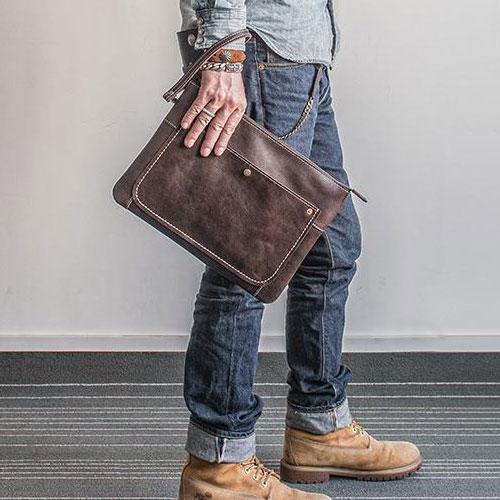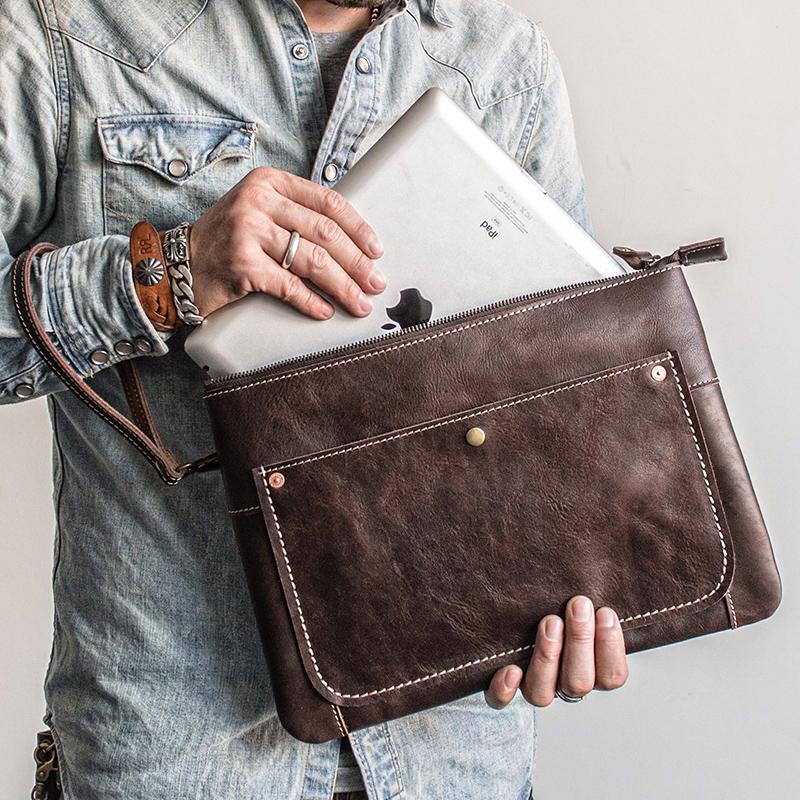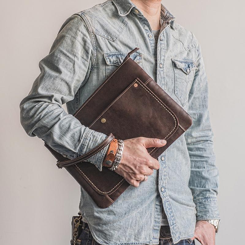Handmade Leather Mens Cool Long Leather ipad bag Bifold Clutch Wallet for Men