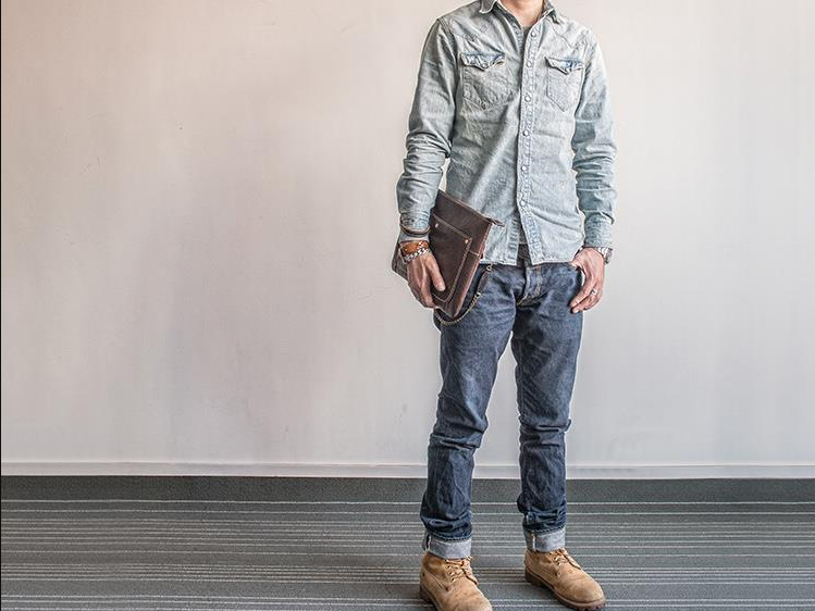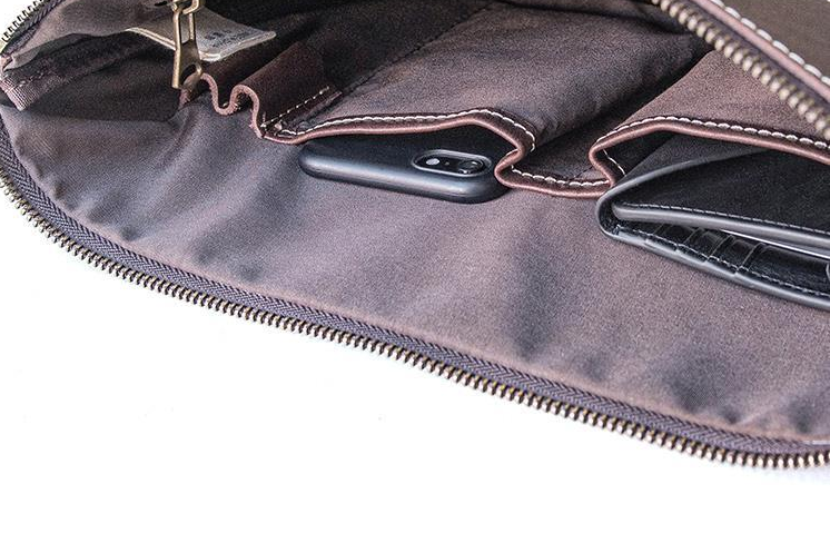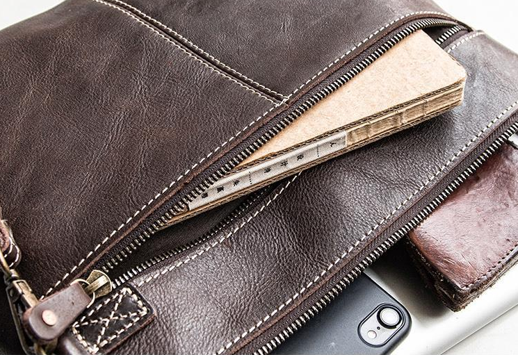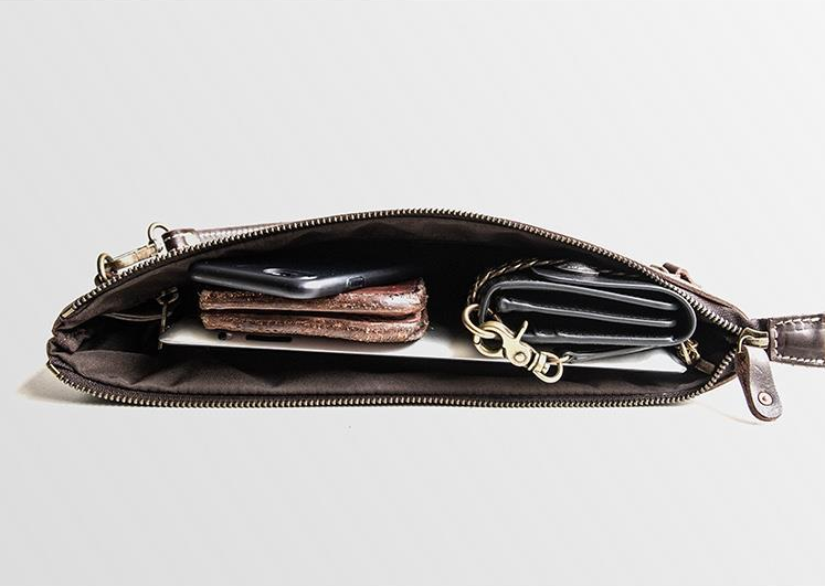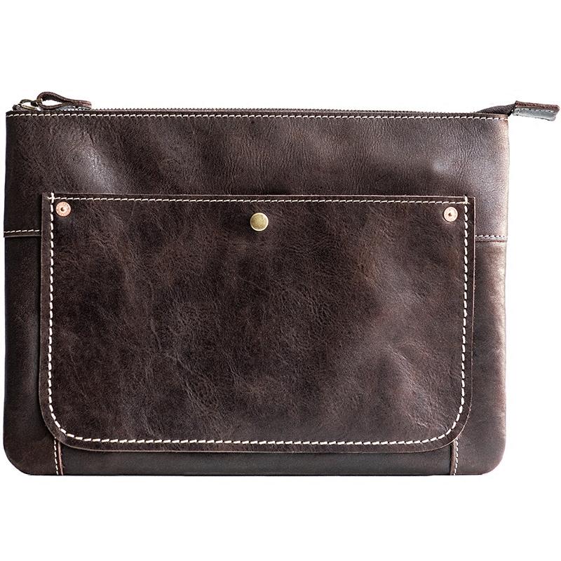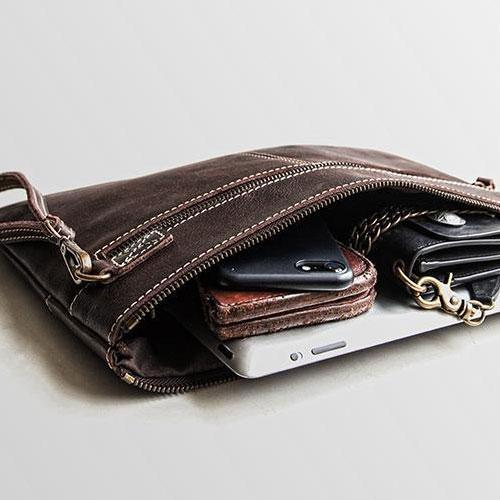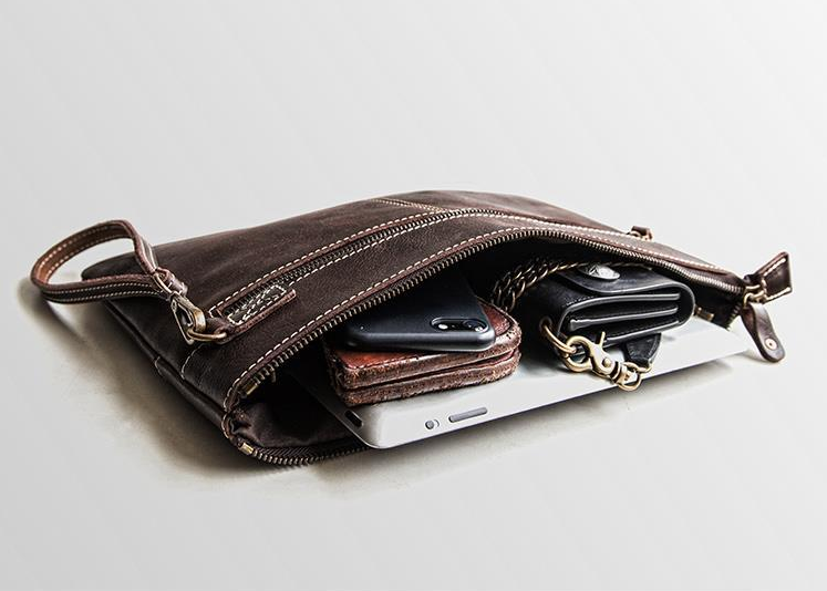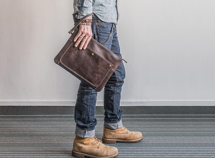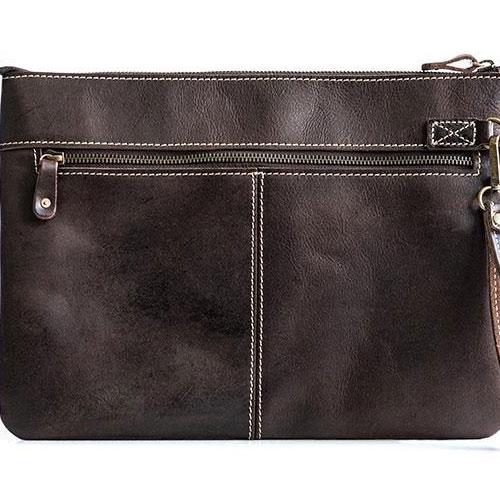 Handmade Leather Mens Cool Long Leather ipad bag Bifold Clutch Wallet for Men