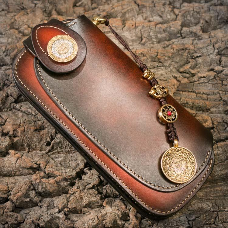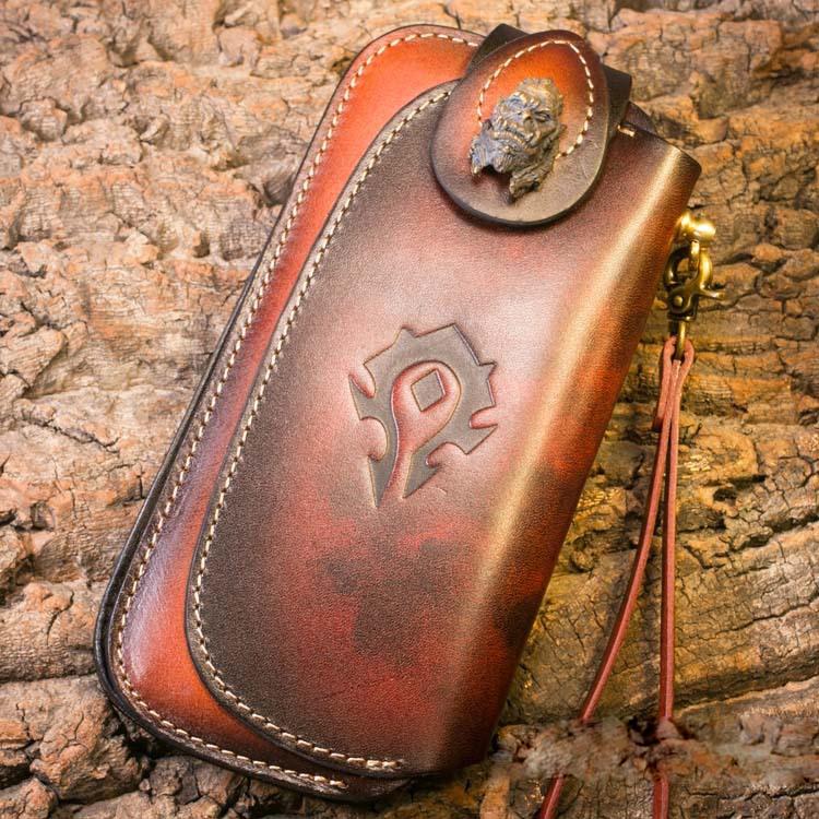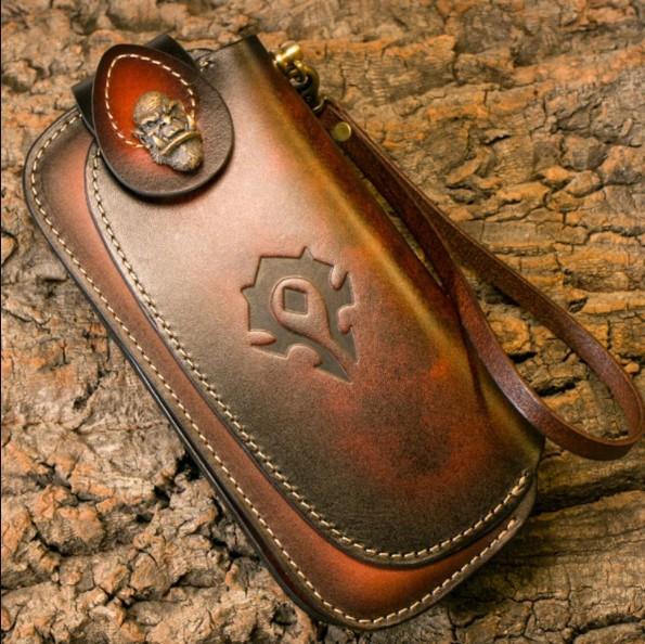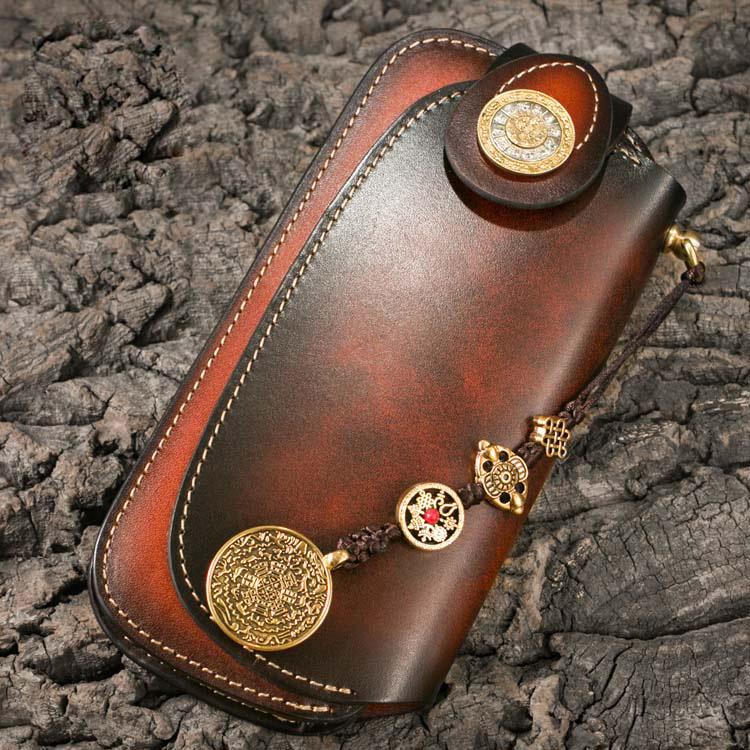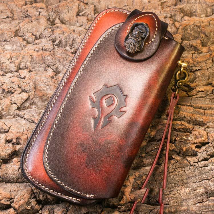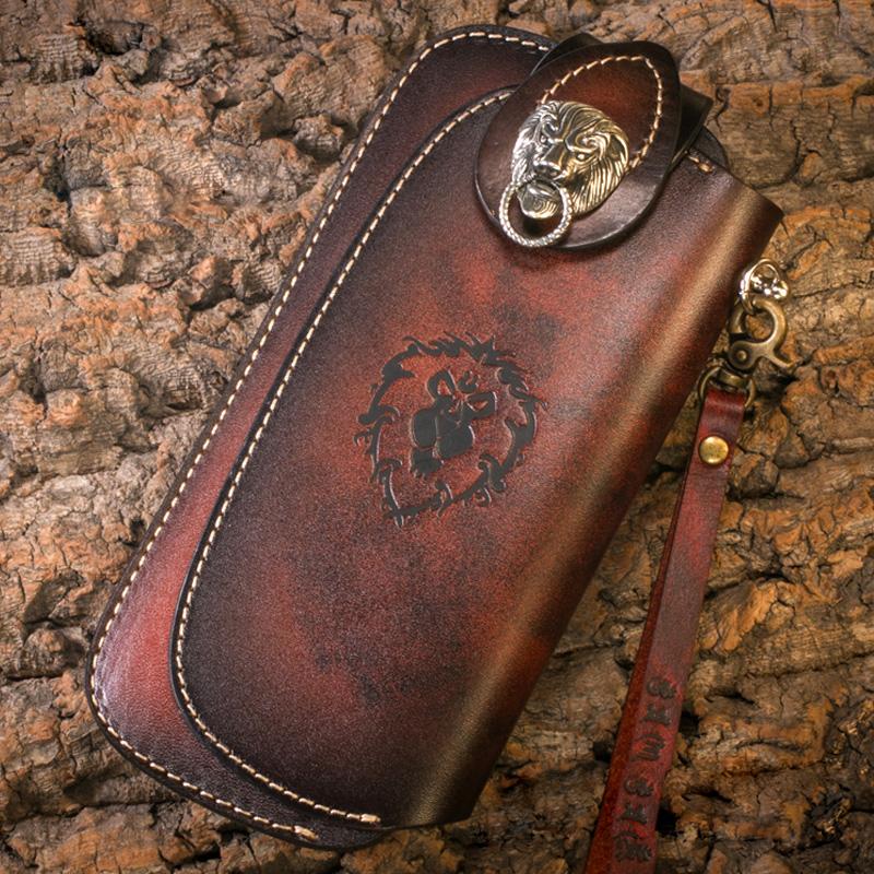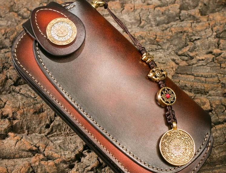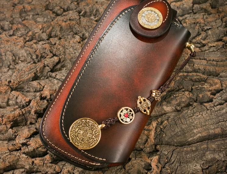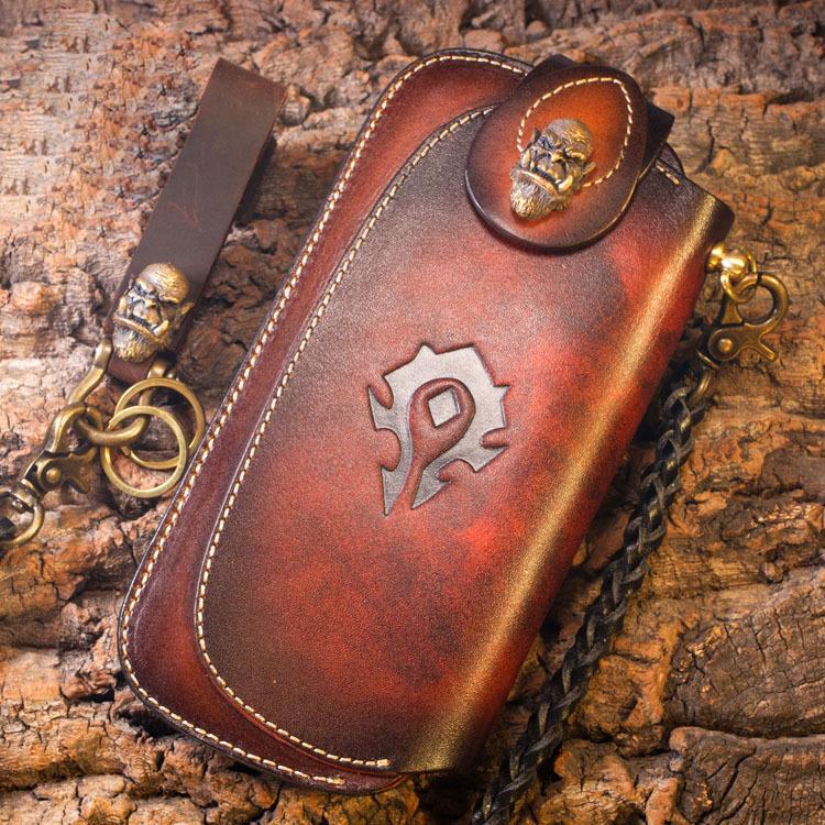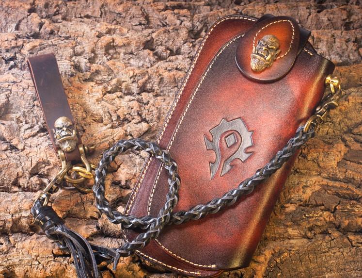 Design: Genuine Mens Cool Long Leather Chain Wallet Cards Biker Trucker Wristlet Wallet