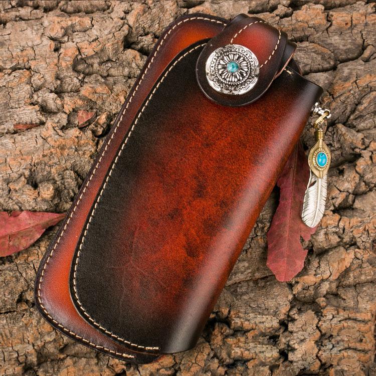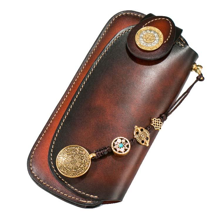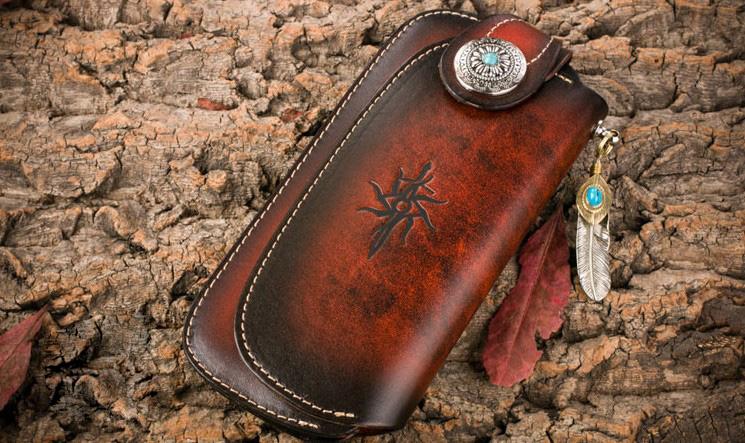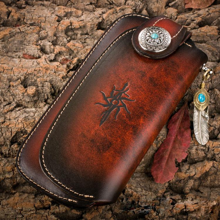 Style: Genuine Mens Cool Long Leather Chain Wallet Cards Biker Trucker Wristlet Wallet