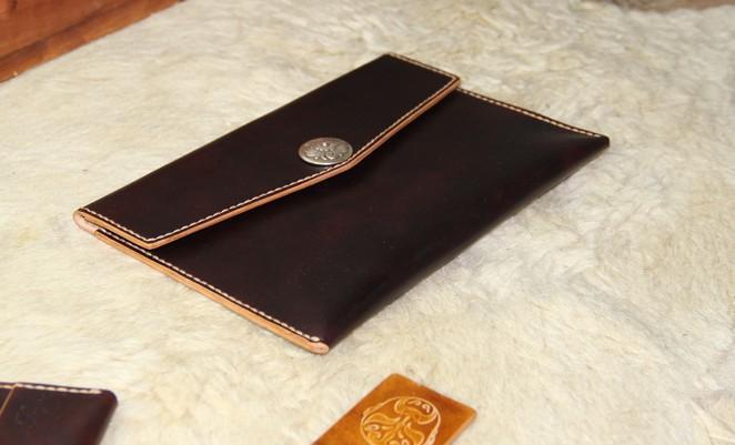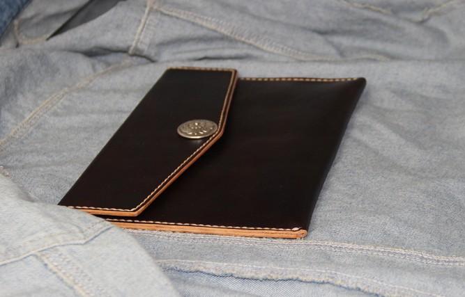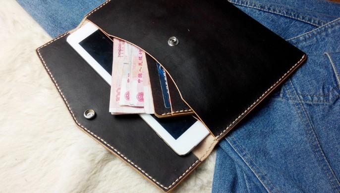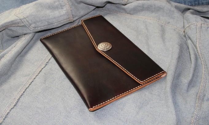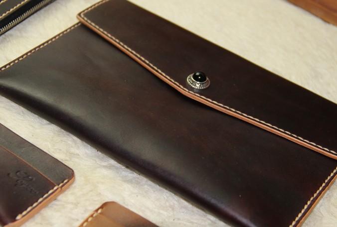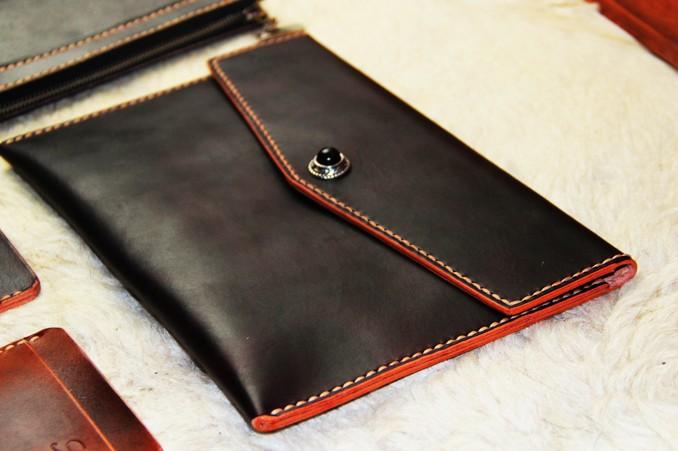 Design: Handmade Leather Mens Large Clutch Wallet Wristlet Wallet iPad Case