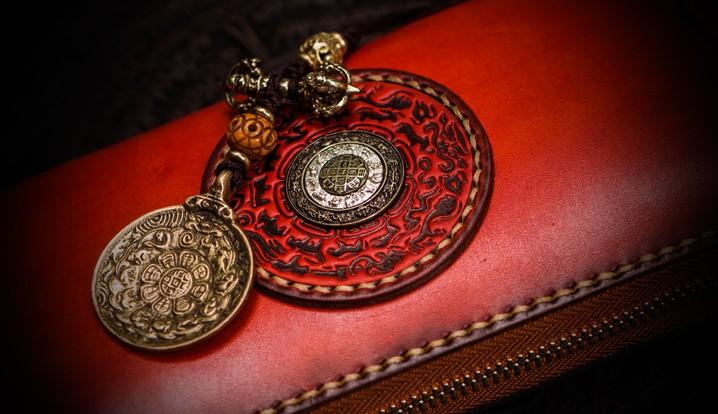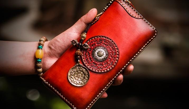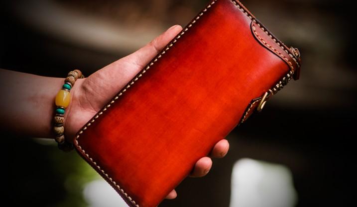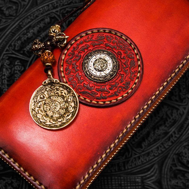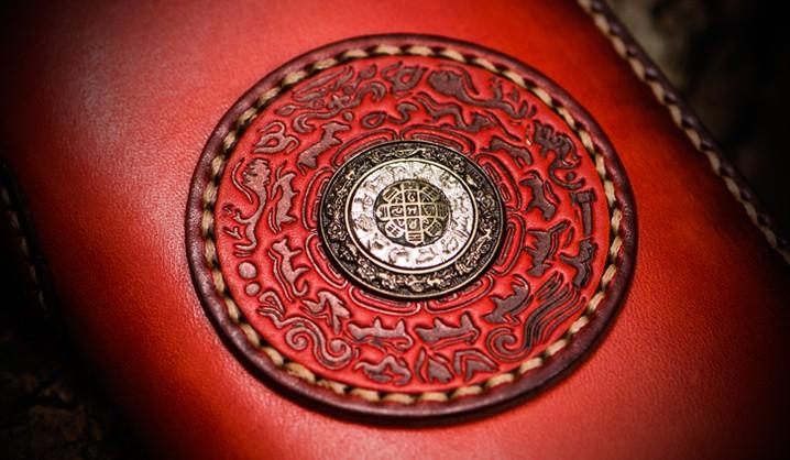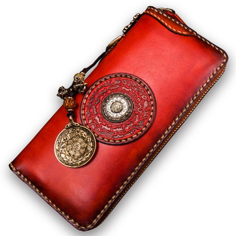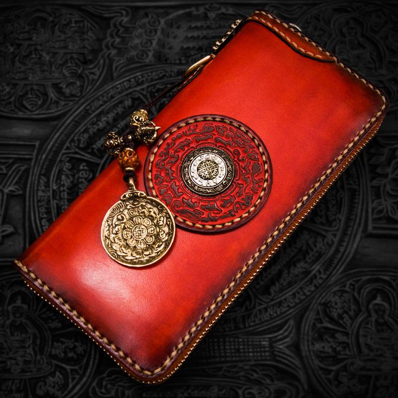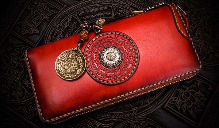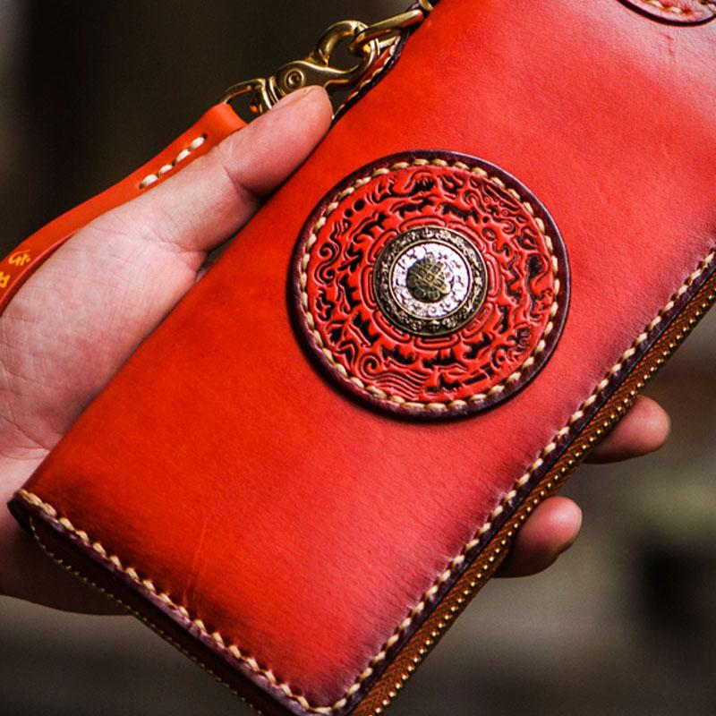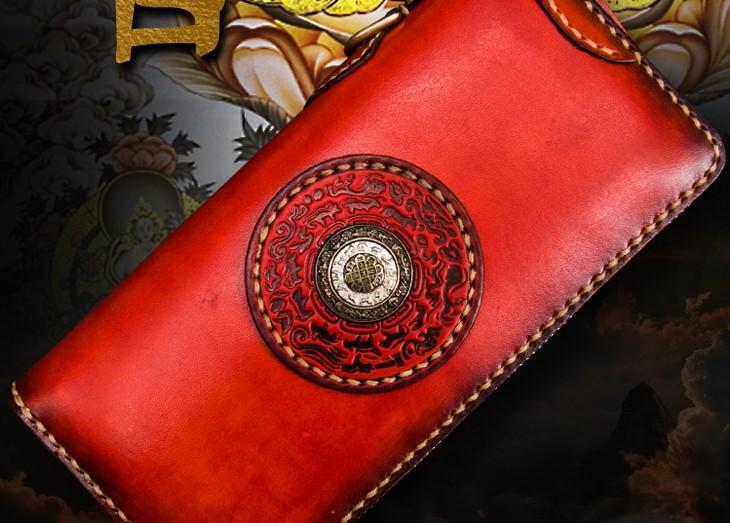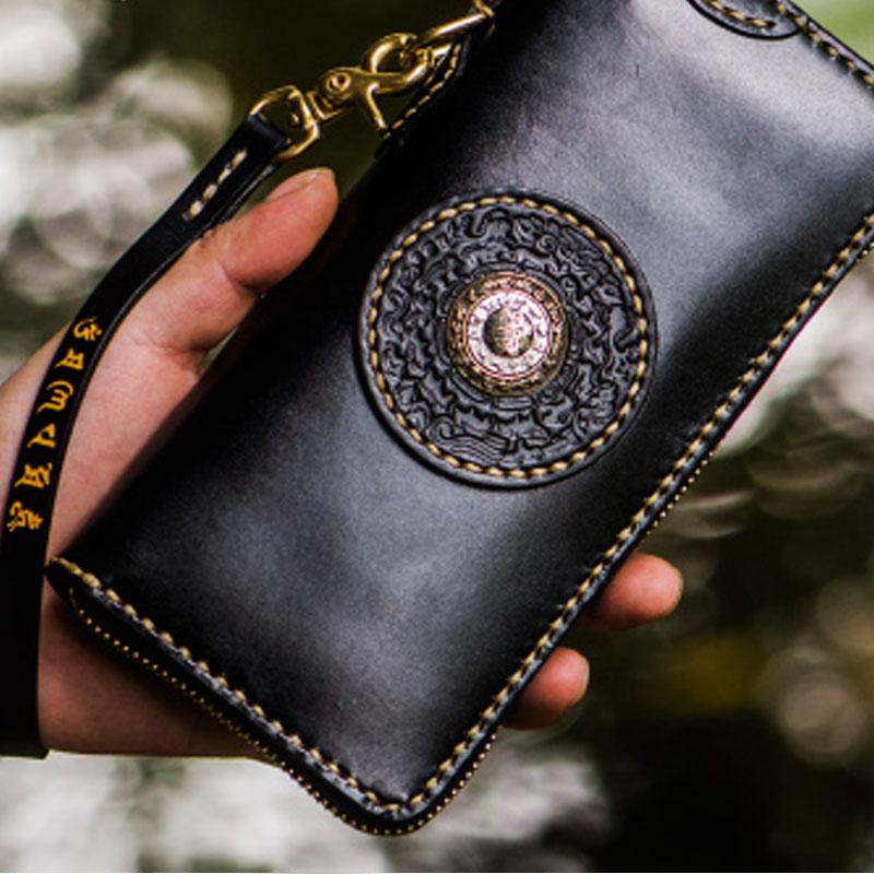 Design: Handmade Leather Mens Tibetan Chain Biker Wallet Cool Leather Wallet Long Clutch Wallets for Men