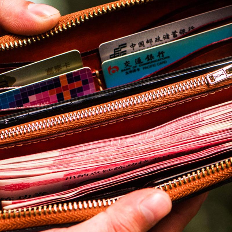 Slots: 2 full size bill slot, 8 card holders, 1 zipper slot