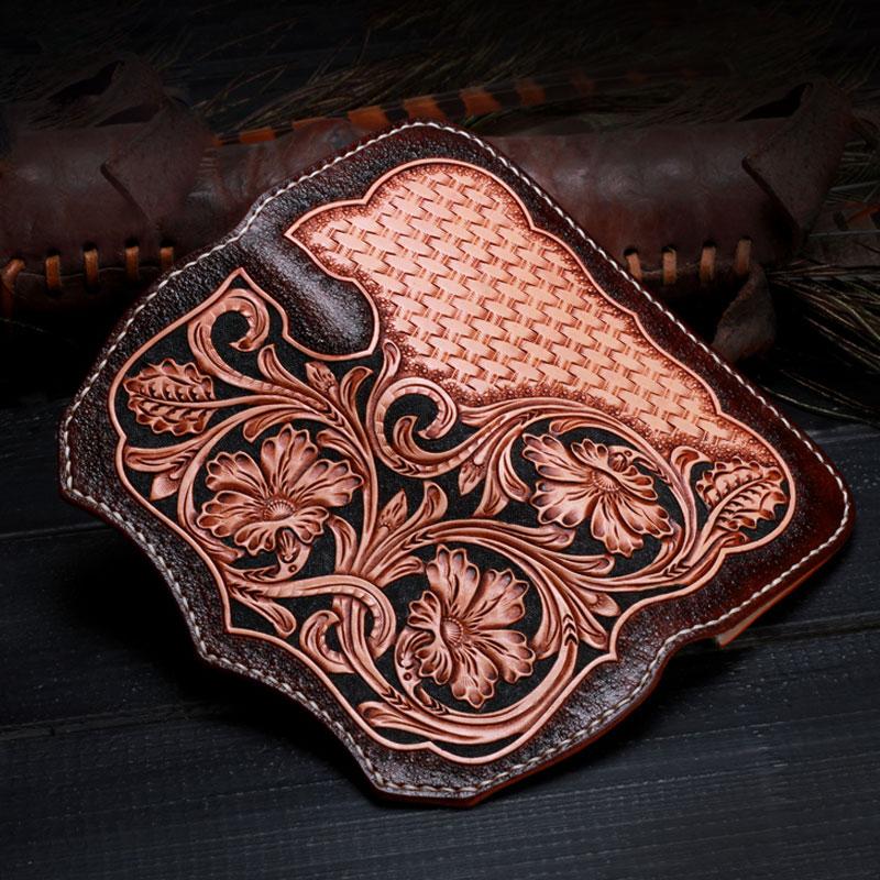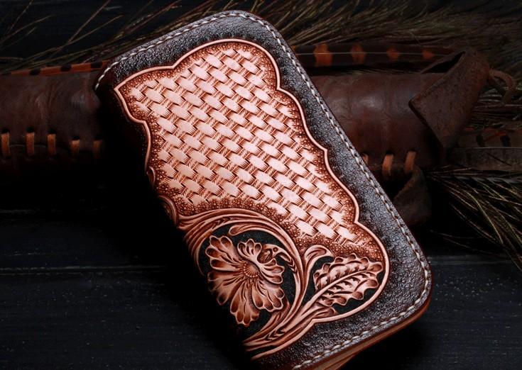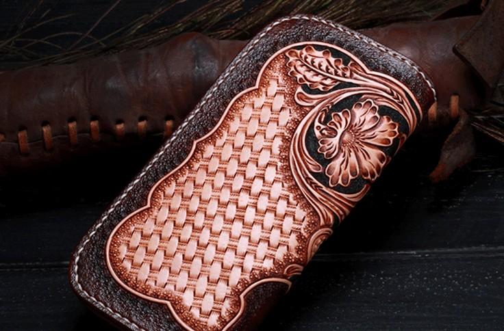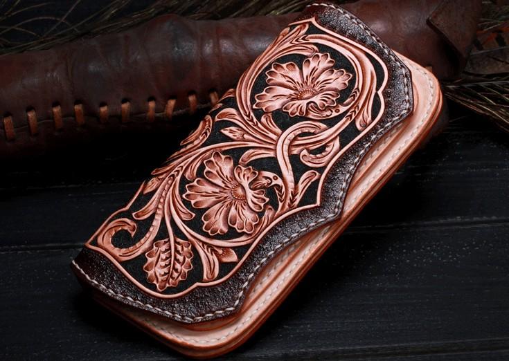 Design: Handmade Leather Mens Tooled Floral Clutch Wallet Cool Wallet Long Wallets for Men Women