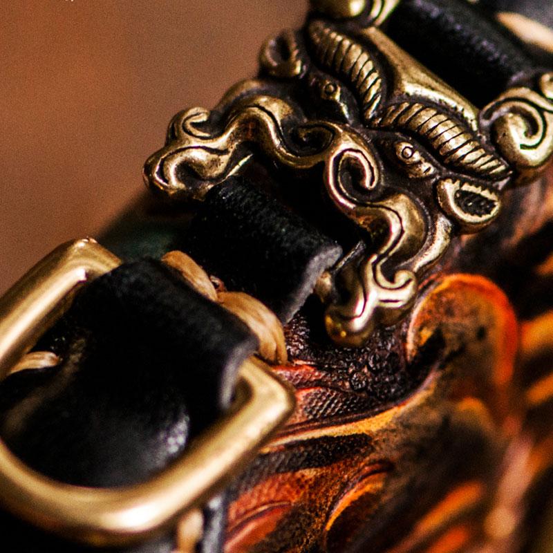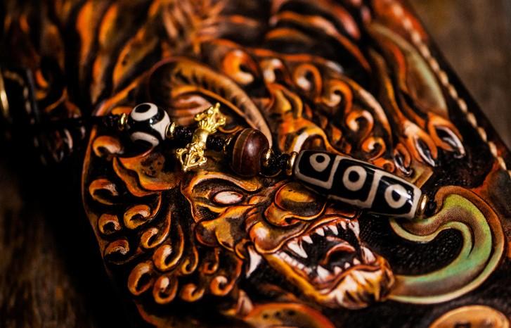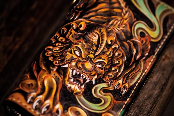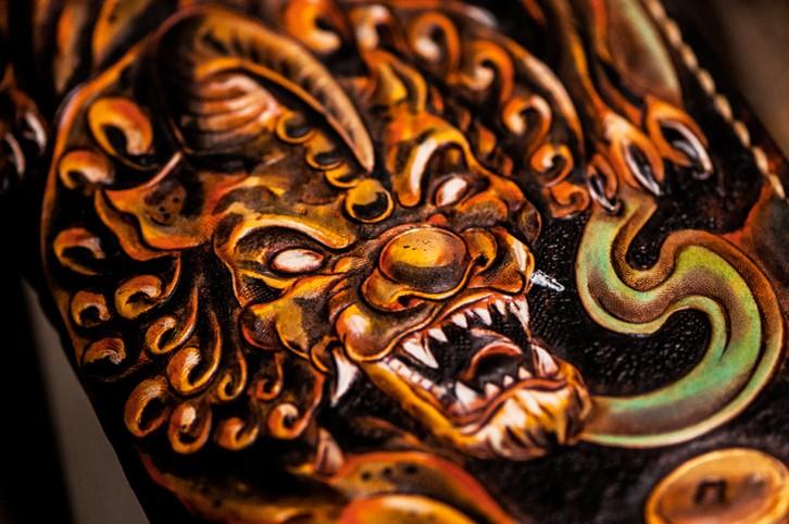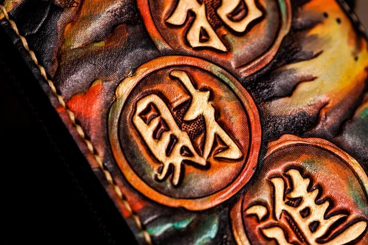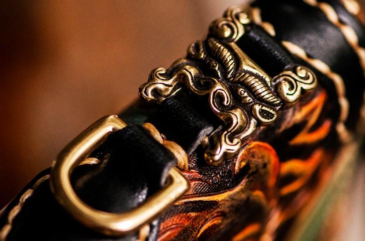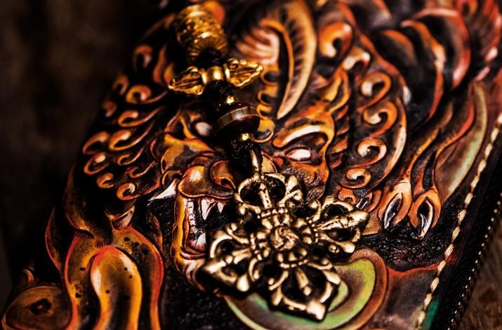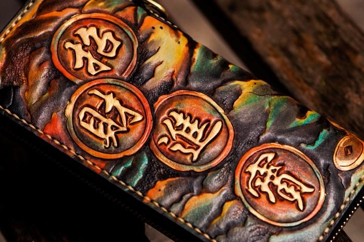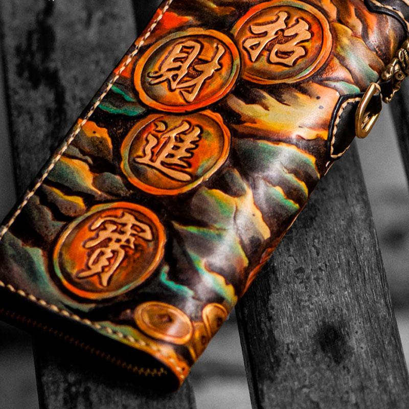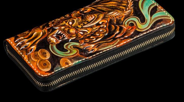 Design: Handmade Leather Mens Tooled Monster Chain Biker Wallet Cool Leather Wallet Long Clutch Wallets for Men
