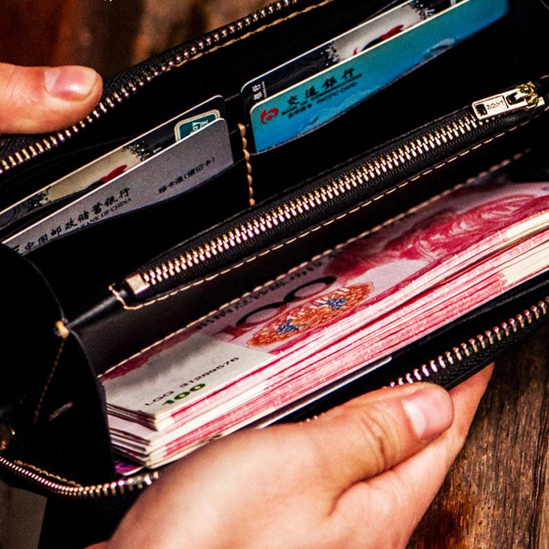 Handmade Leather Mens Tooled Monster Chain Biker Wallet Cool Leather Wallet Long Clutch Wallets for Men