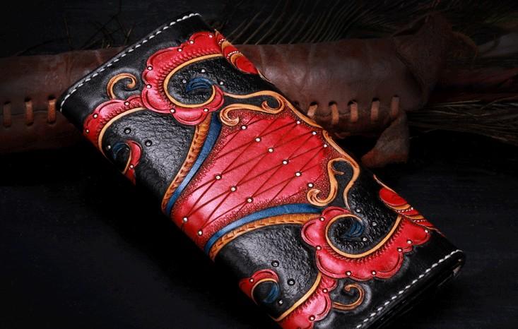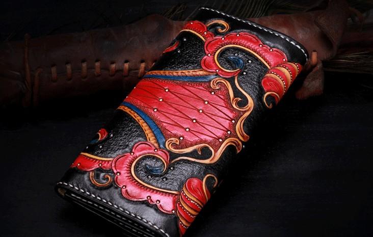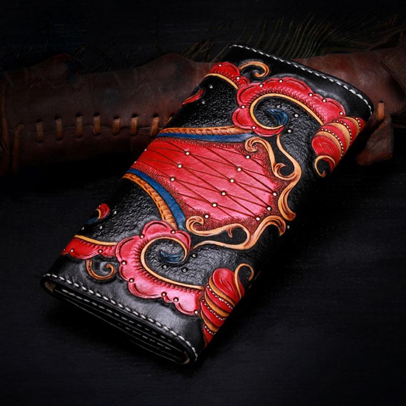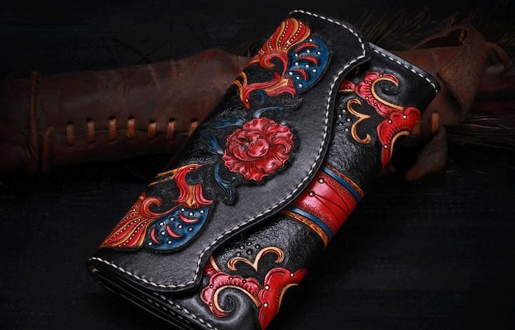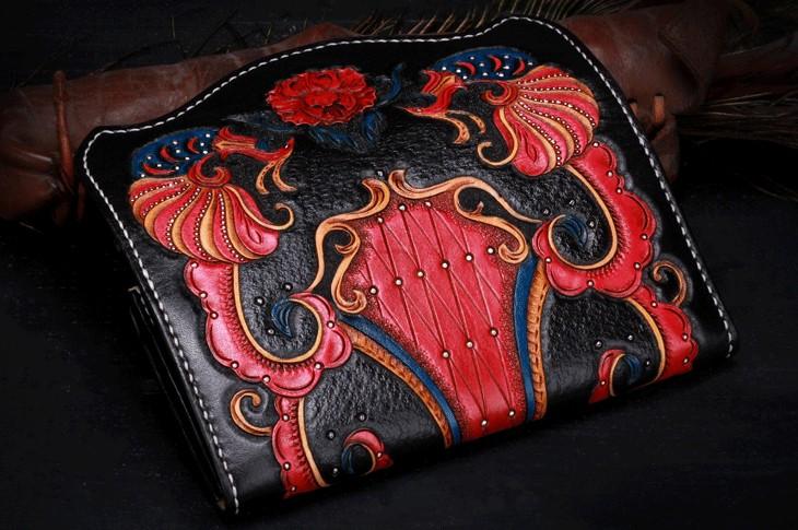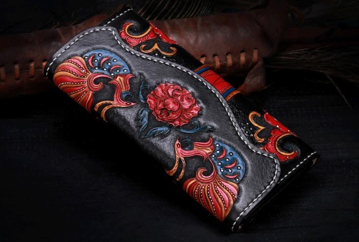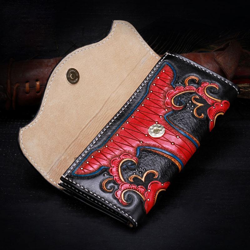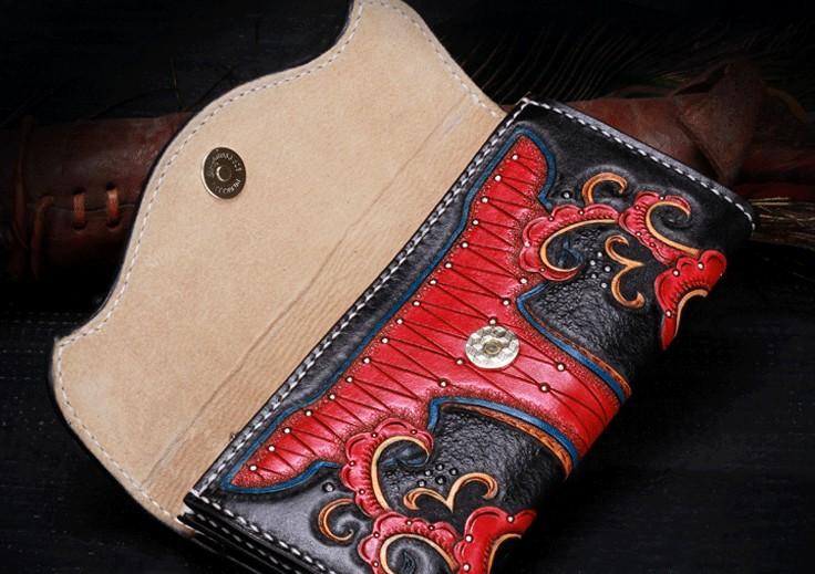 Design: Handmade Leather Mens Womens Tooled Phoenix Clutch Wallet Cool Wallet Long Wallets for Men Women