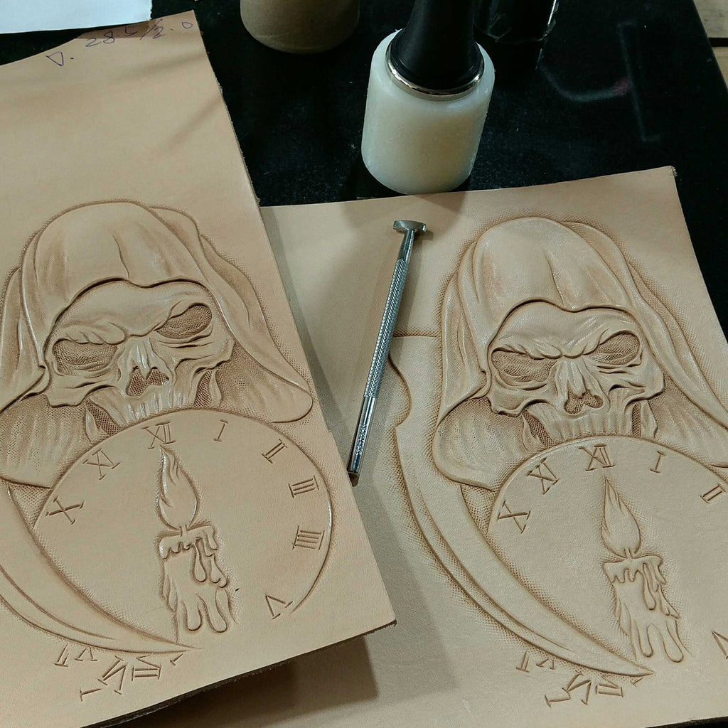 Design: Handmade Leather Skull Death Tooled Mens Long Wallet Cool Leather Wallet Clutch Wallet for Men