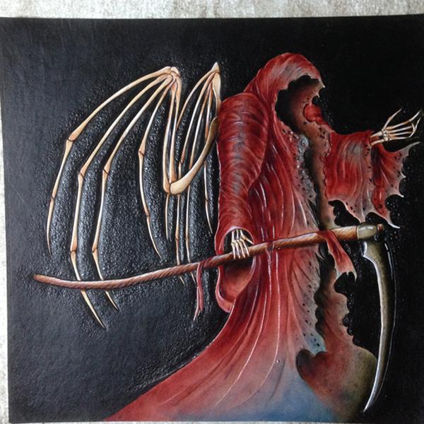 Design: Handmade Leather The Death Tooled Mens Long Wallet Cool Leather Wallet Clutch Wallet for Men