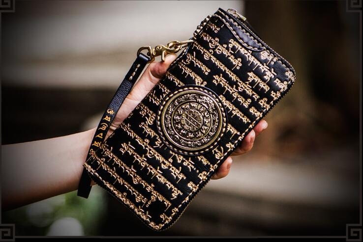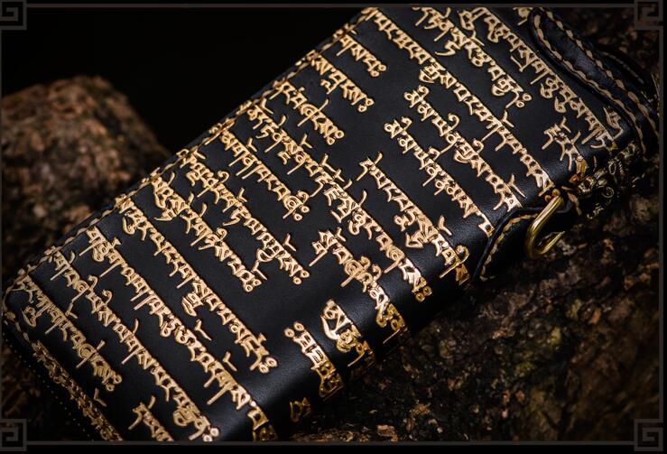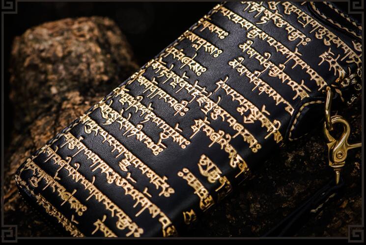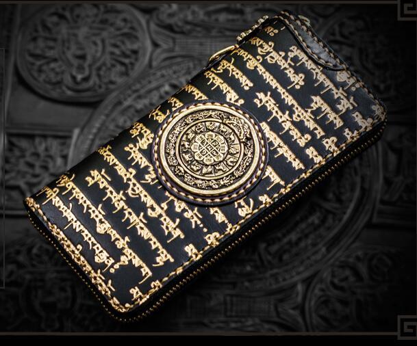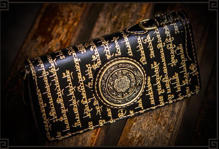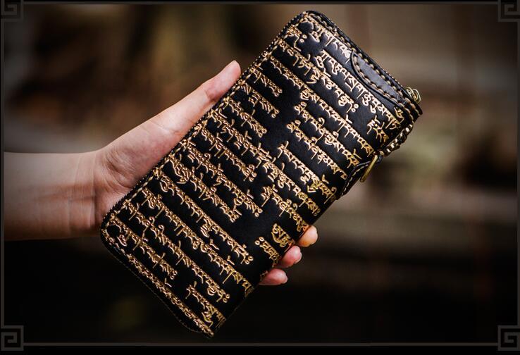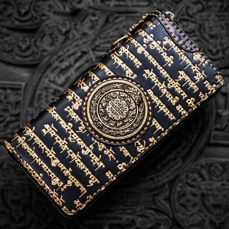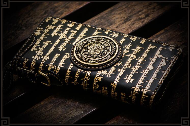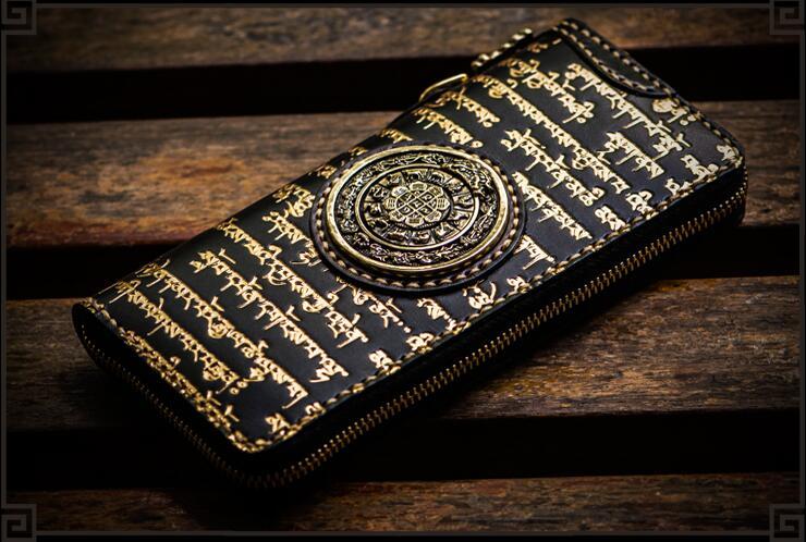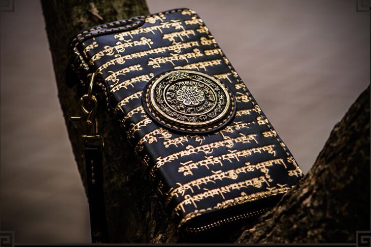 Design: Handmade Leather Tibetan Mens Chain Biker Wallet Cool Leather Wallet Long Clutch Wallets for Men
