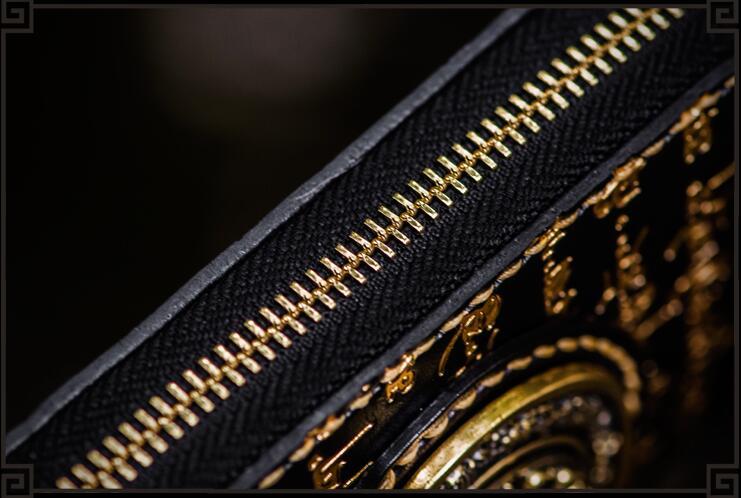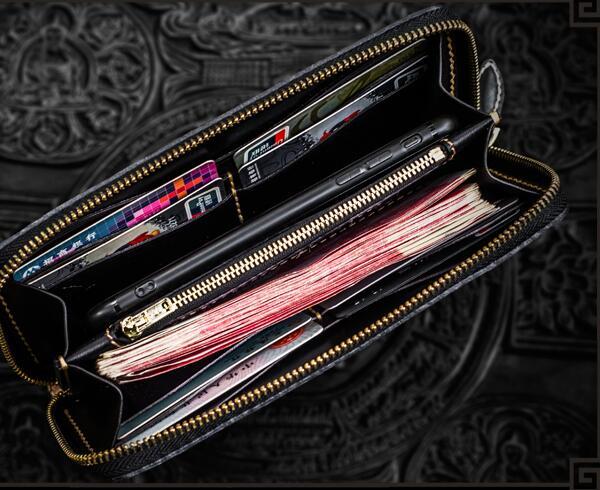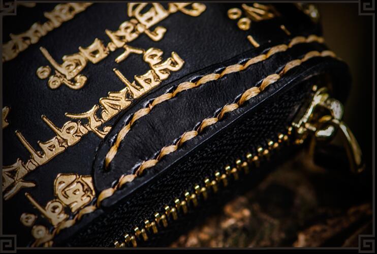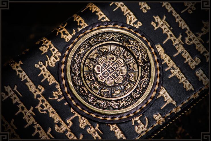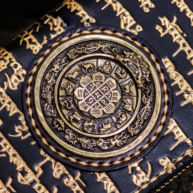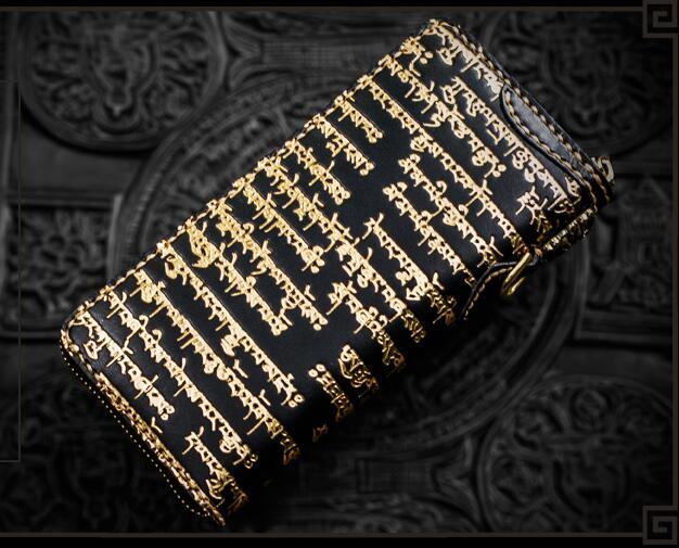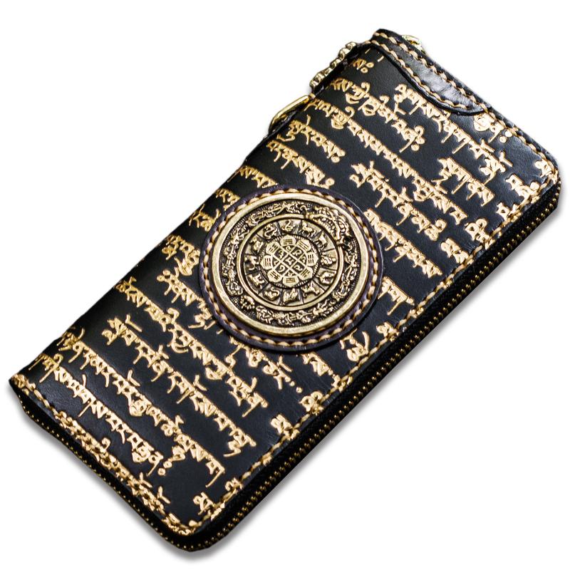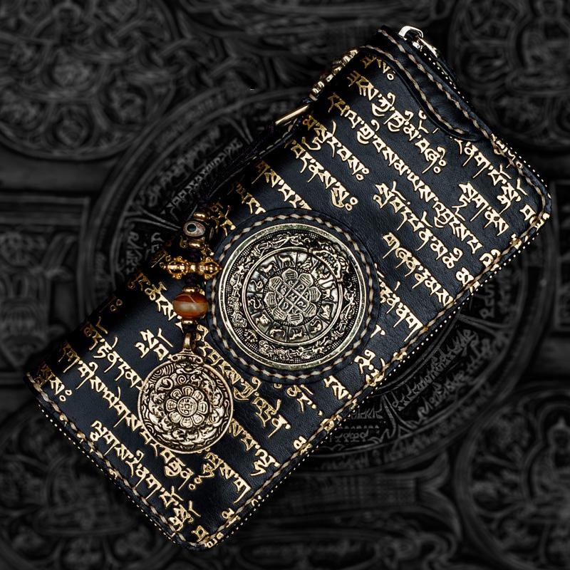 Design: Handmade Leather Tibetan Mens Chain Biker Wallet Cool Leather Wallet Long Clutch Wallets for Men