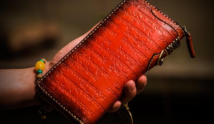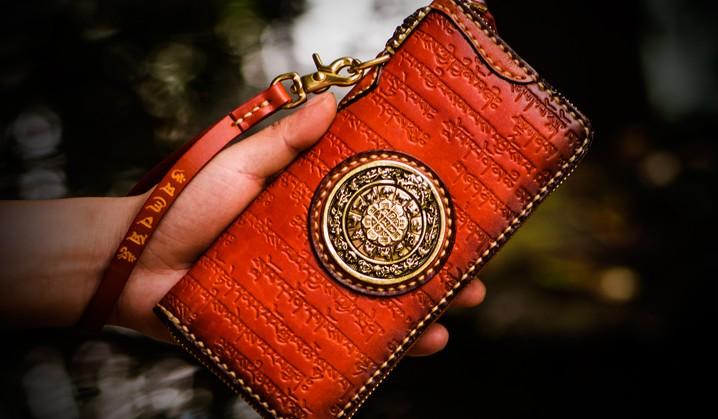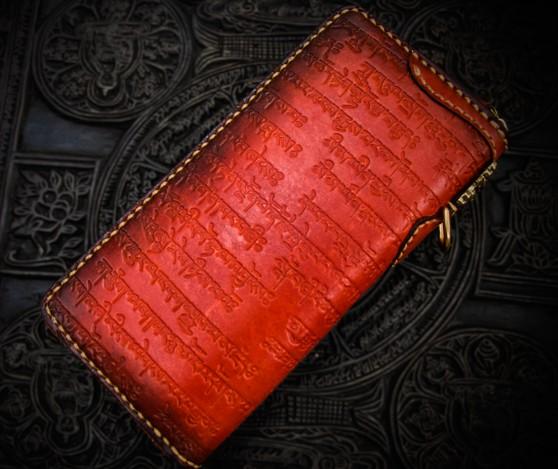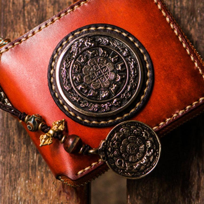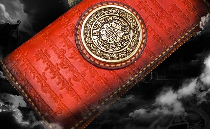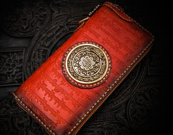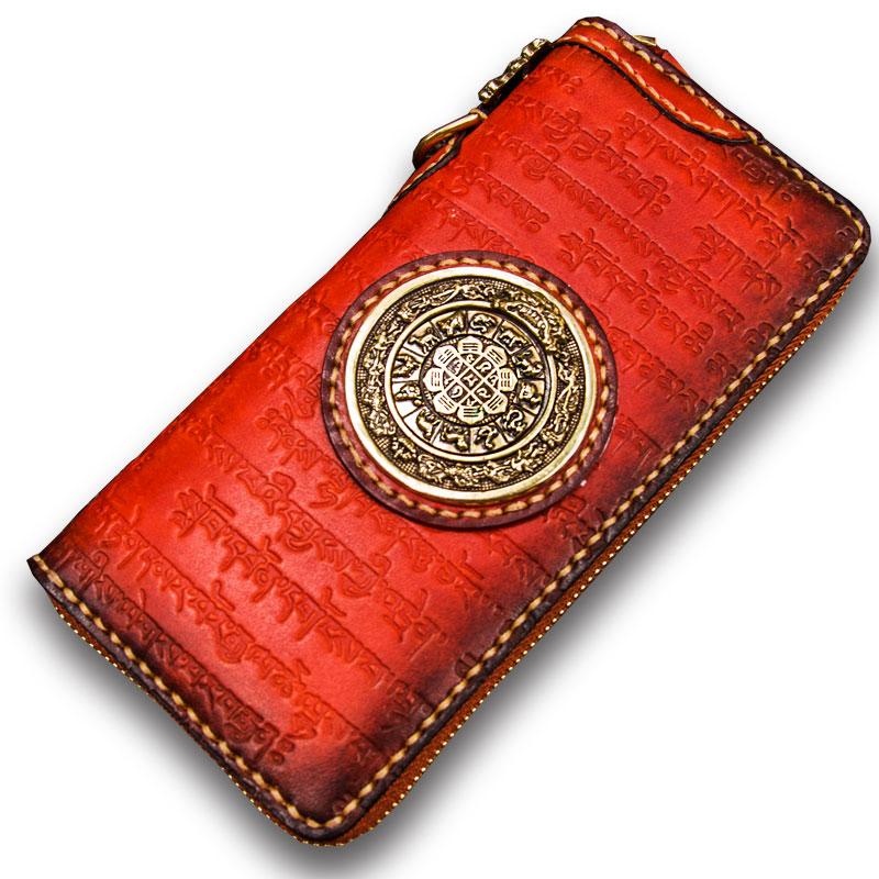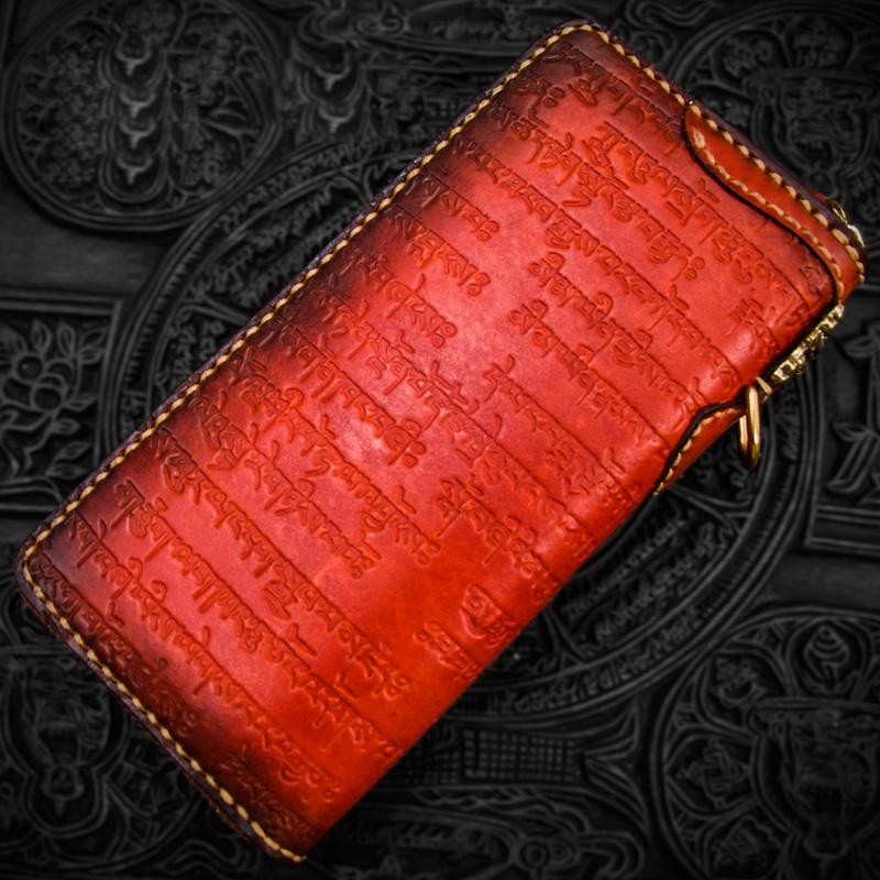 Design: Handmade Leather Tibetan Mens Chain Biker Wallet Cool Leather Wallet Long Clutch Wallets for Men