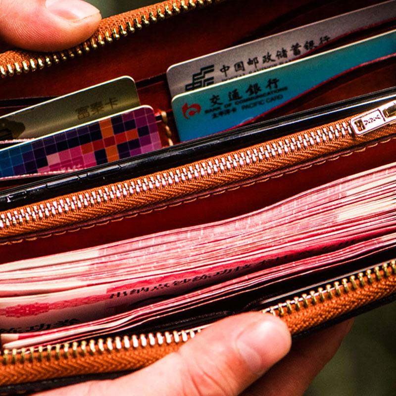 Slots: 2 full size bill slot, 8 card holders, 1 zipper slot