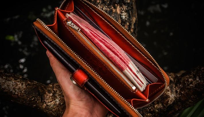 Slots: 2 full size bill slot, 8 card holders, 1 zipper slot