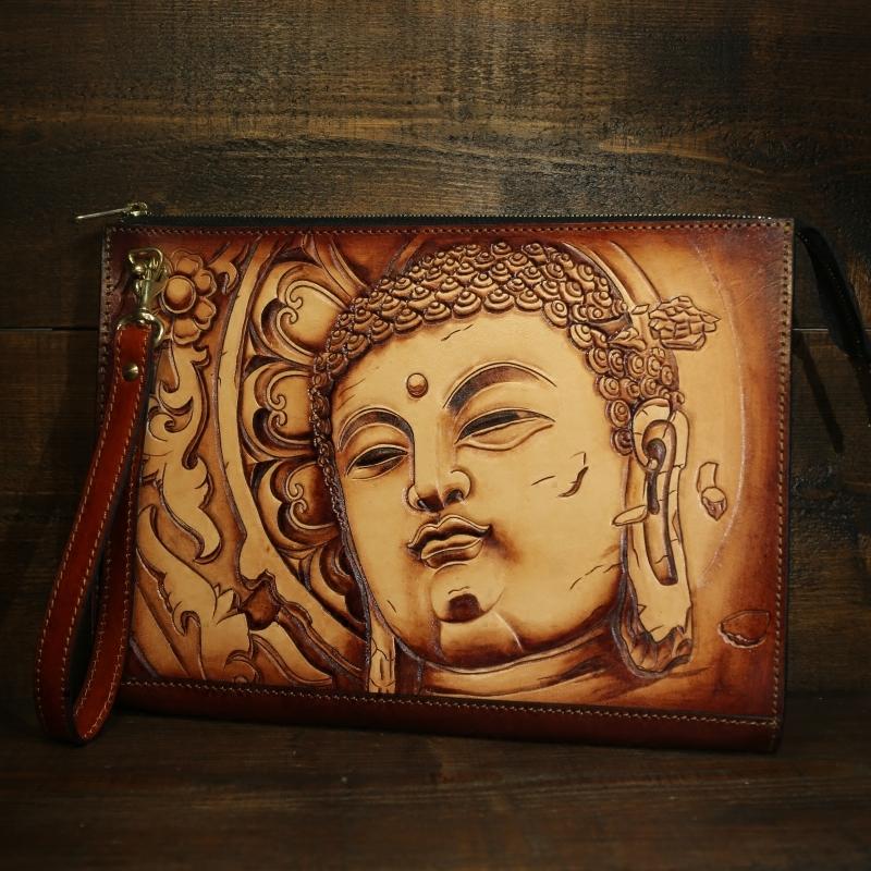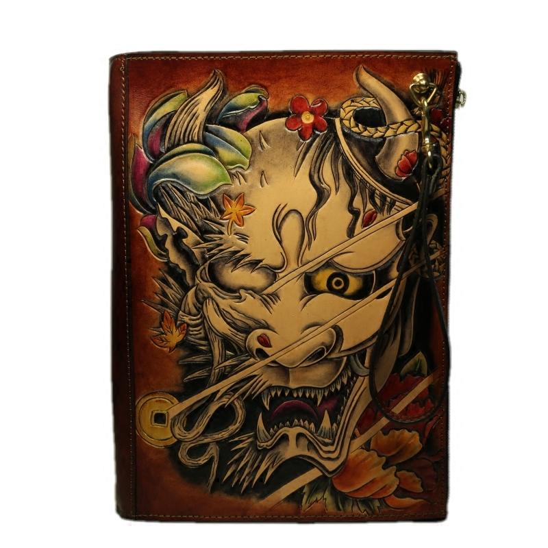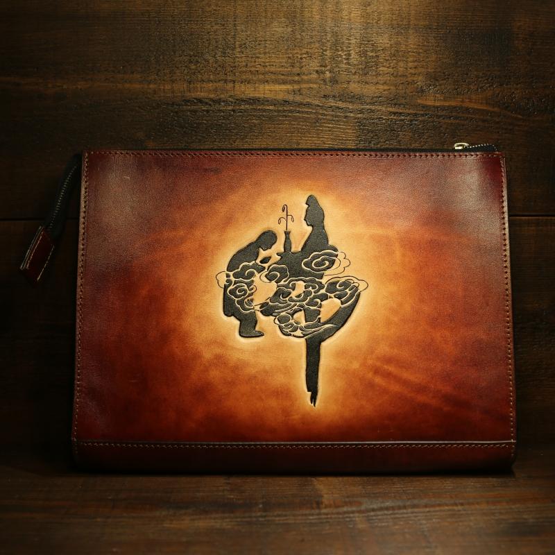 Style: Handmade Leather Tooled Mens Cool Long Leather iPad Bag Wristlet Clutch Wallet for Men