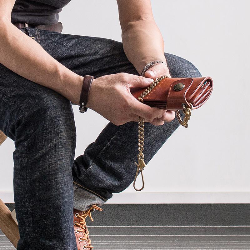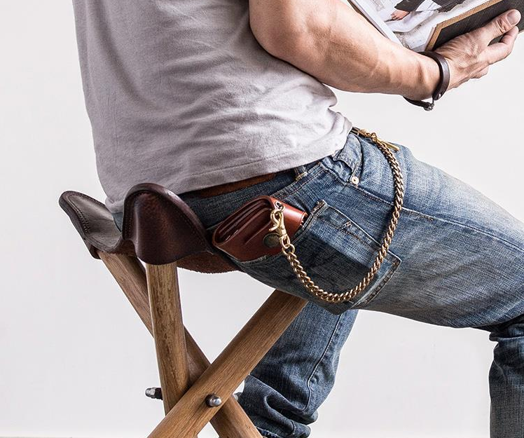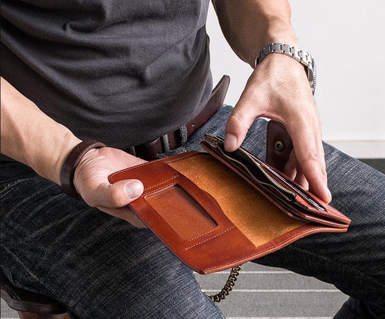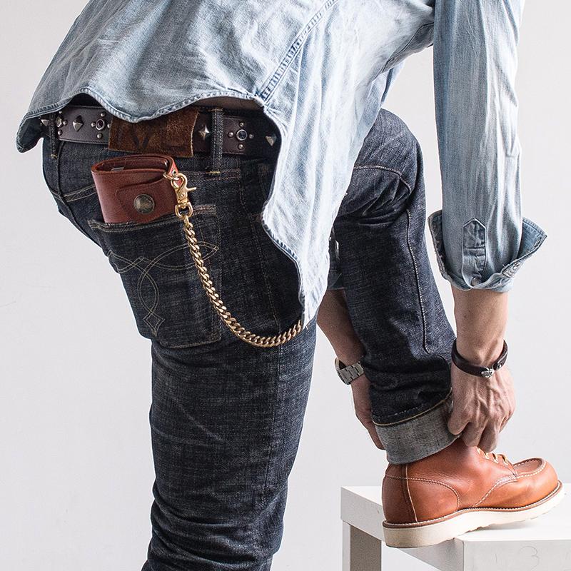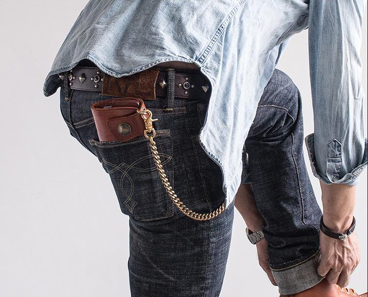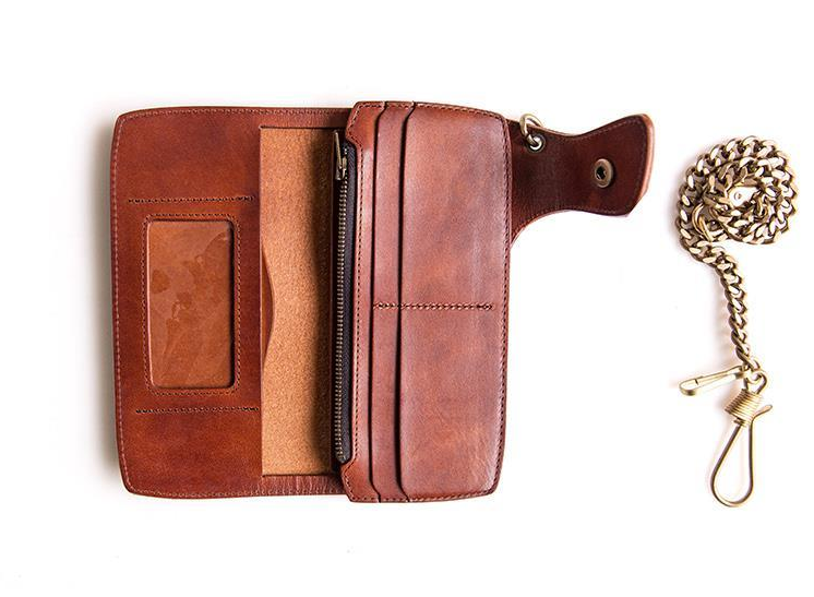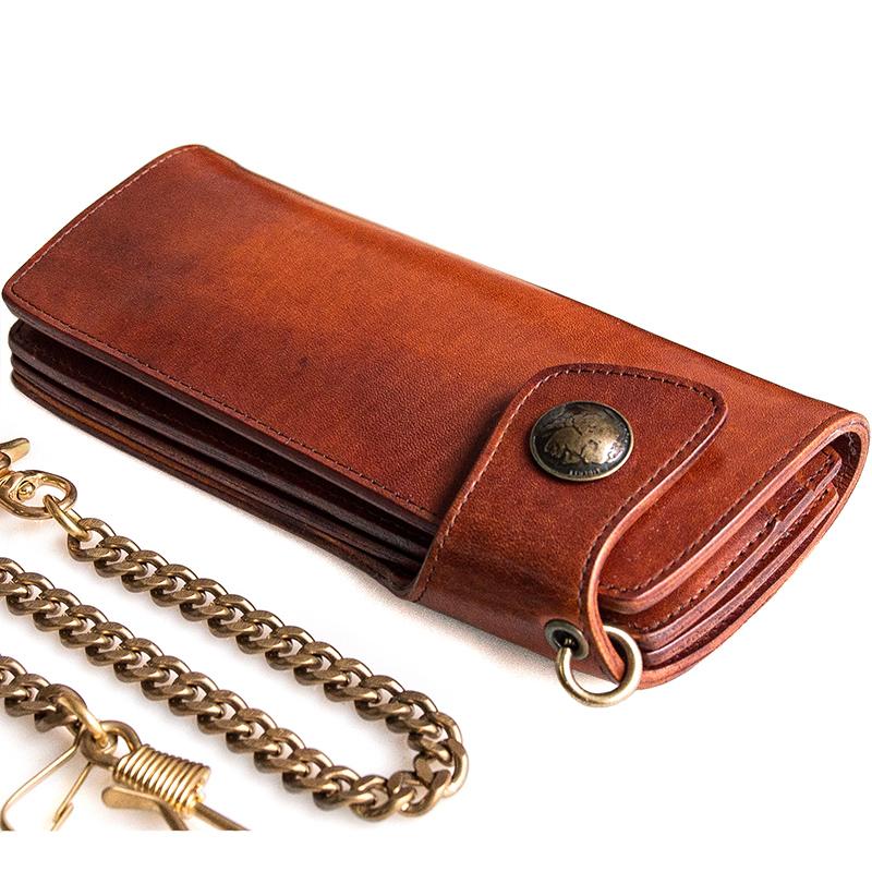 Style: Handmade Mens Cool Leather Chain Wallet Biker Trucker Wallet with Chain for Men
