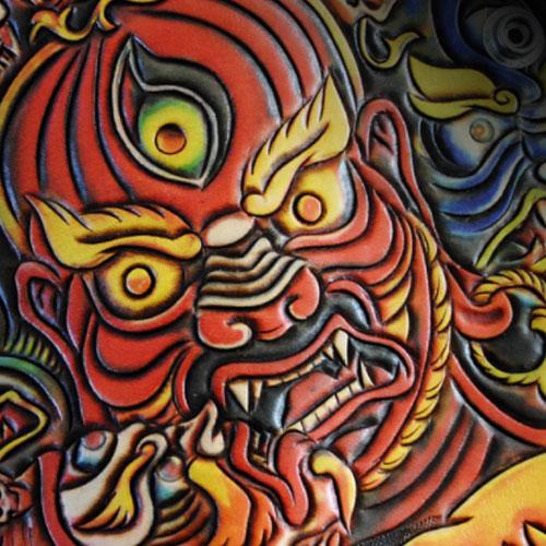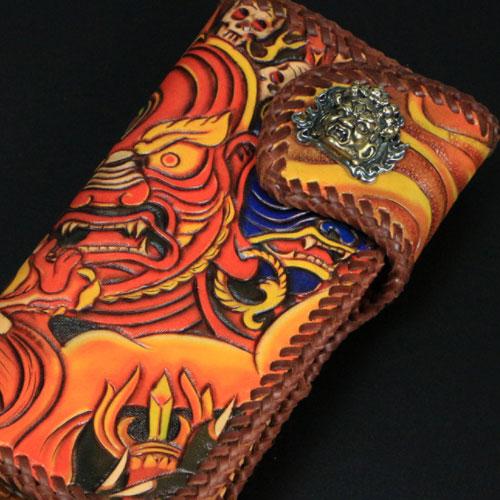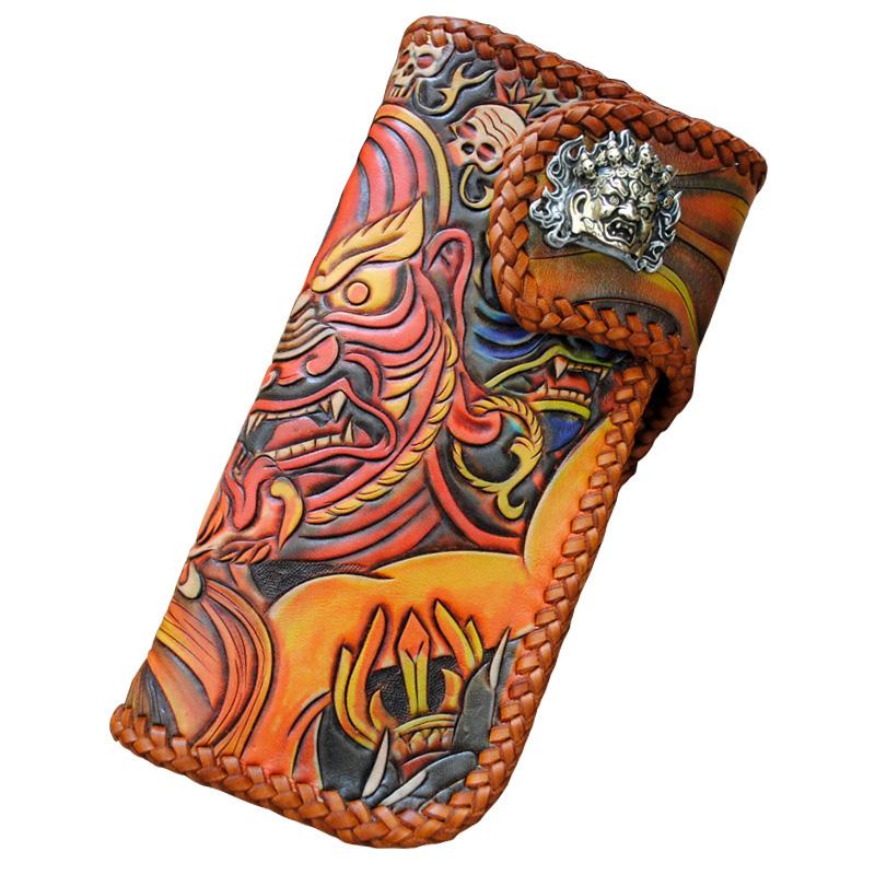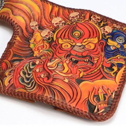 Design: Handmade Mens Tooled God Mahakala Leather Chain Wallet Biker Trucker Wallet with Chain