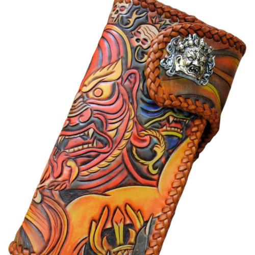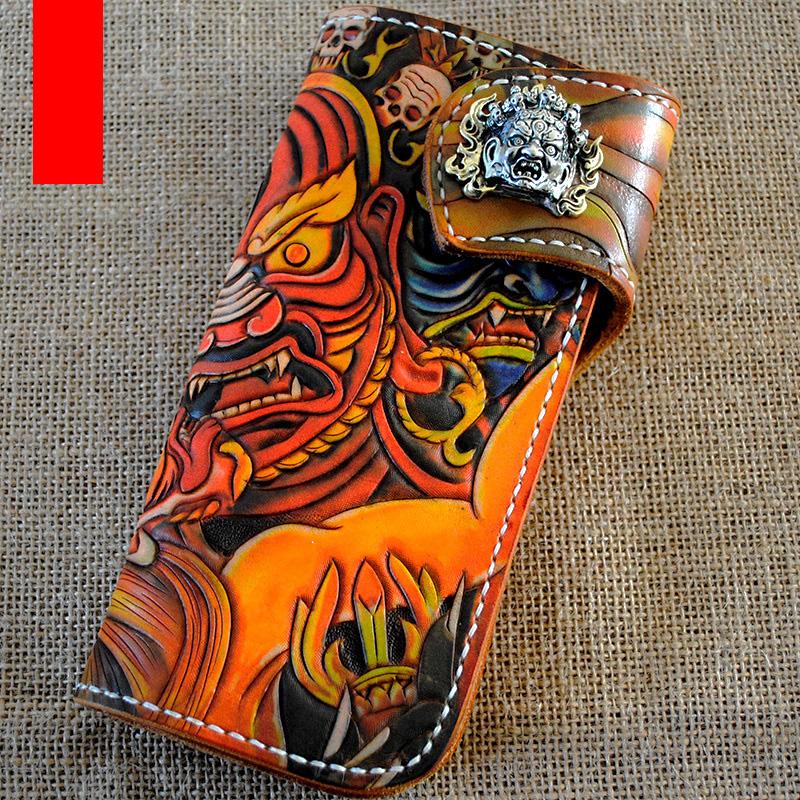 Style: Handmade Mens Tooled God Mahakala Leather Chain Wallet Biker Trucker Wallet with Chain