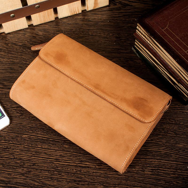 Style: Khaki Cool Mens long Wallet Wristlet Bag Clutch Bag Dark Brown Long Wallets for Men