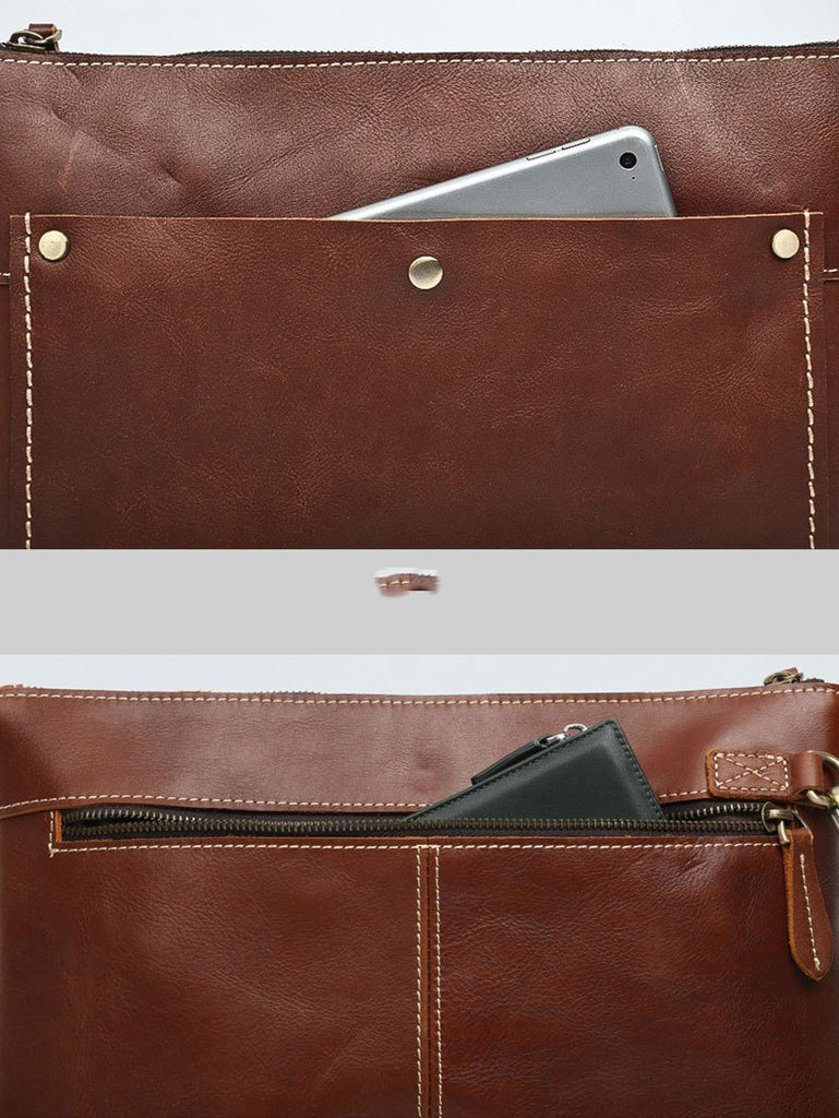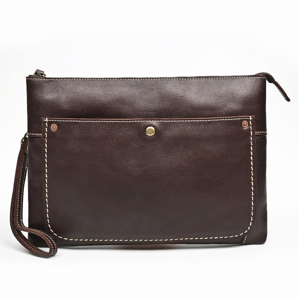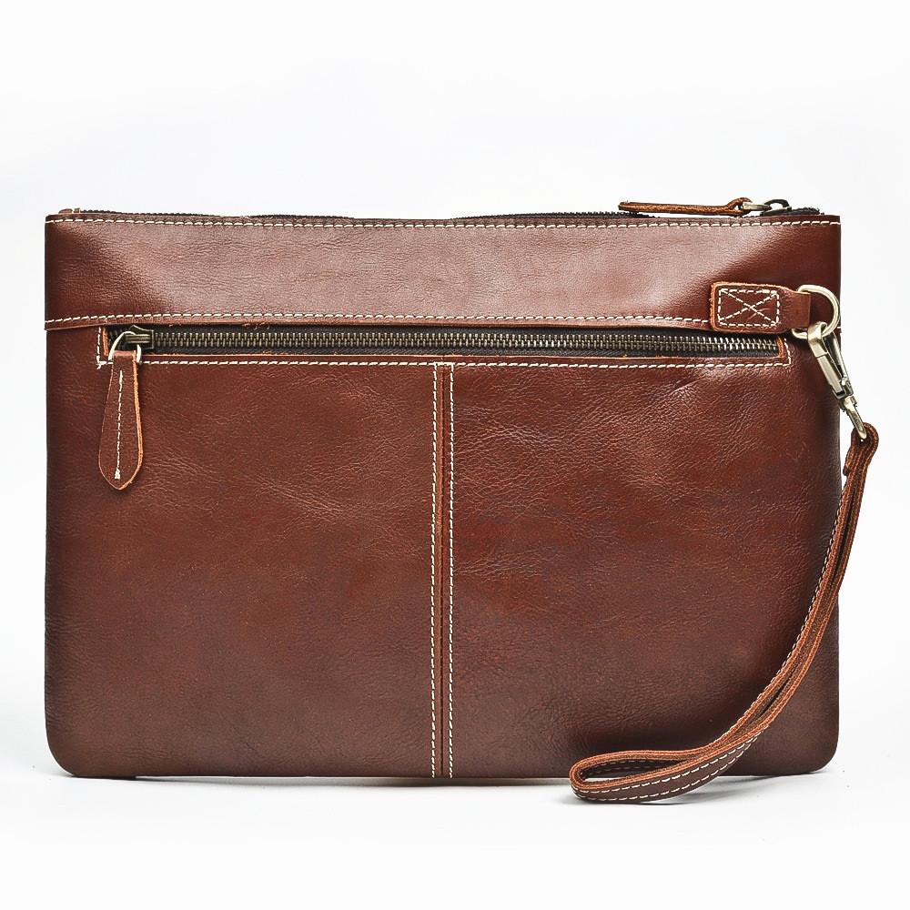 Design: Large Brown MENS LEATHER SLIM ZIPPER CLUTCH Dark Brown WRISTLET PURSE Envelope Briefcase Bag For Men