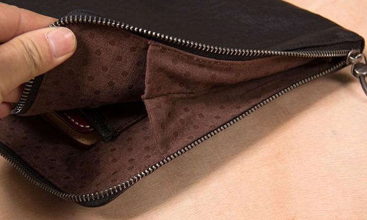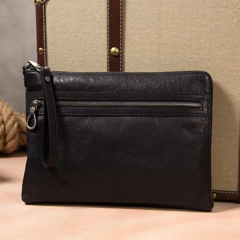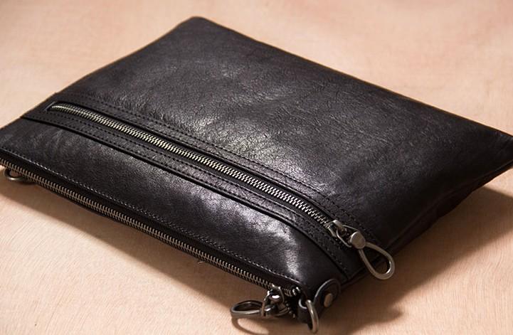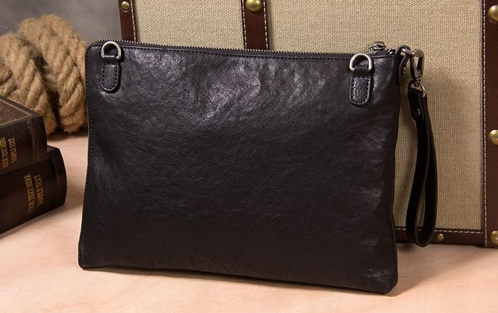 Design: Leather Mens Clutch Wristlet Bag Black Shoulder Bag Zipper Clutch for Men