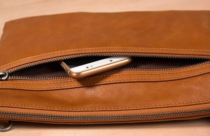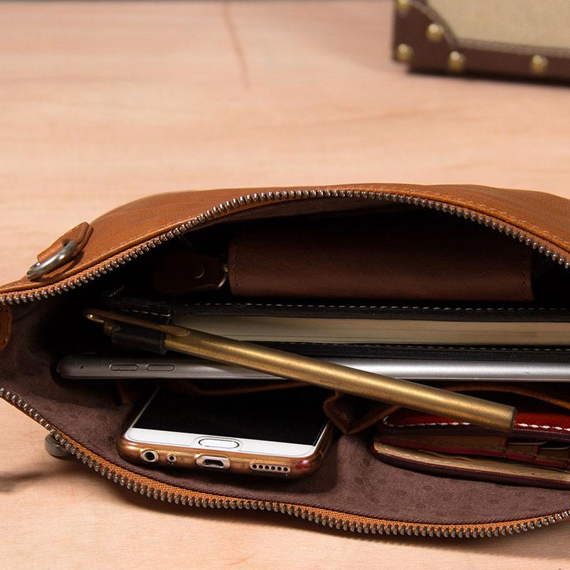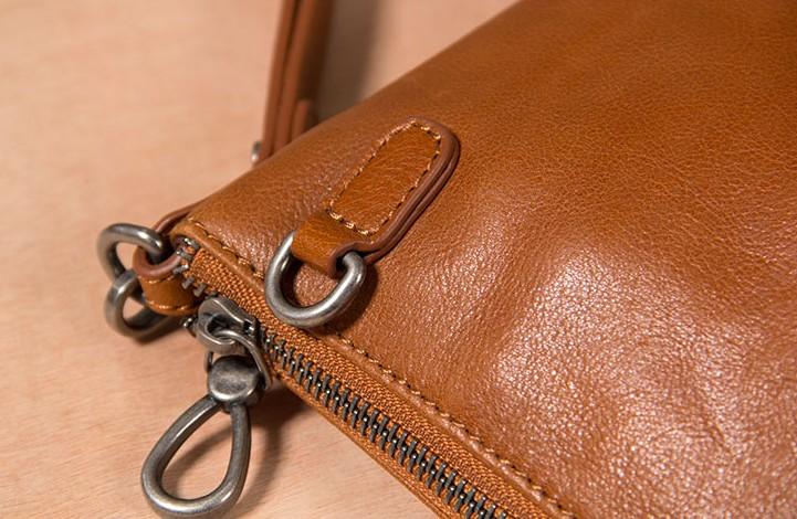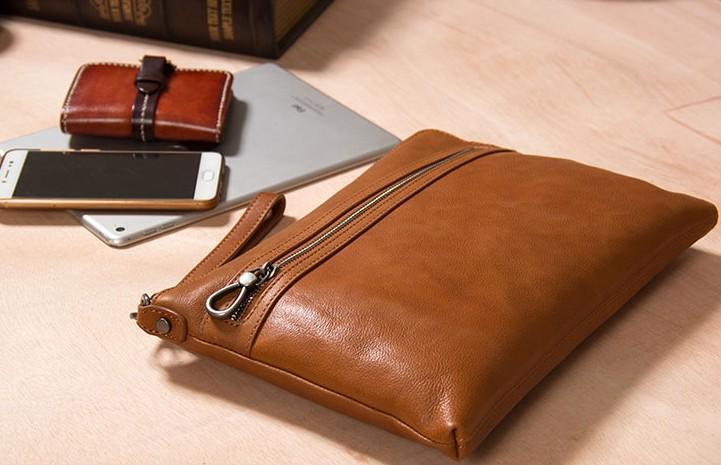 Leather Mens Clutch Wristlet Bag Brown Shoulder Bag Zipper Clutch for Men