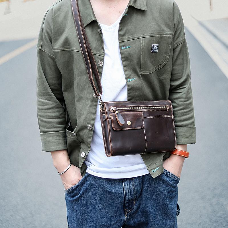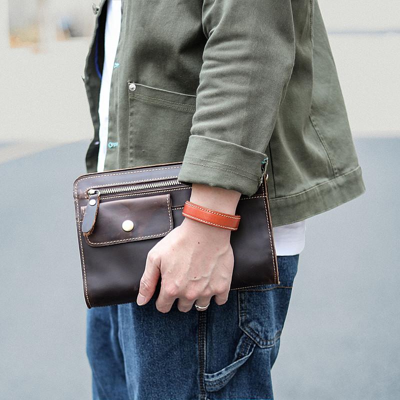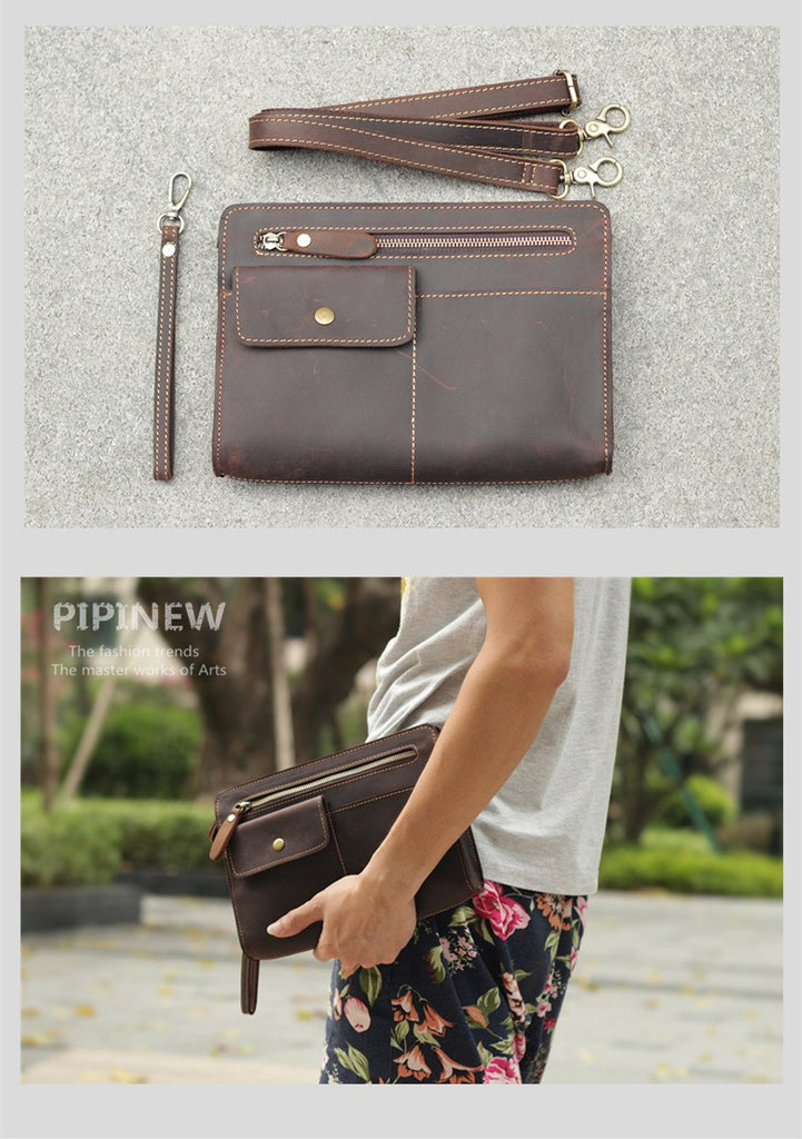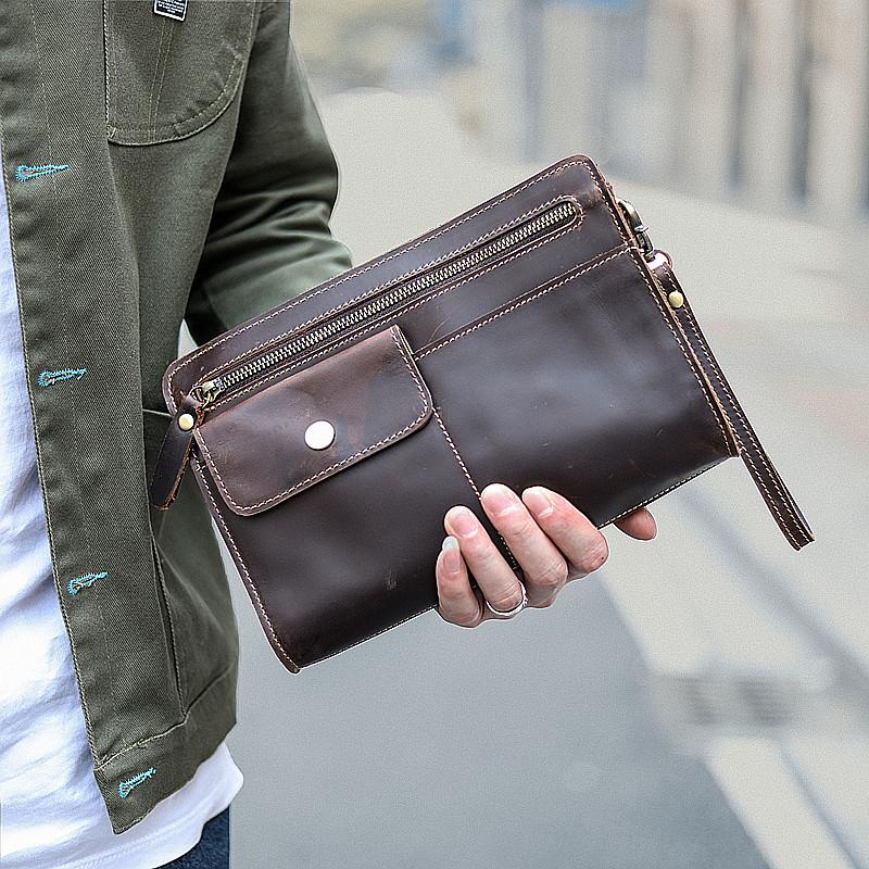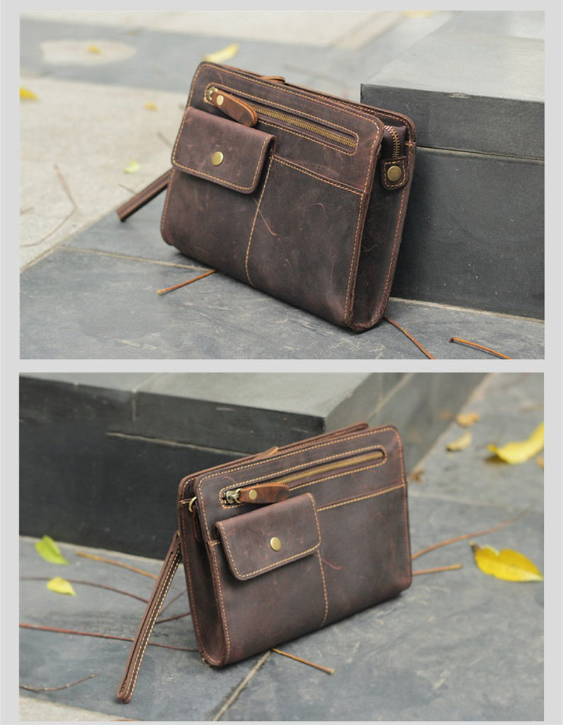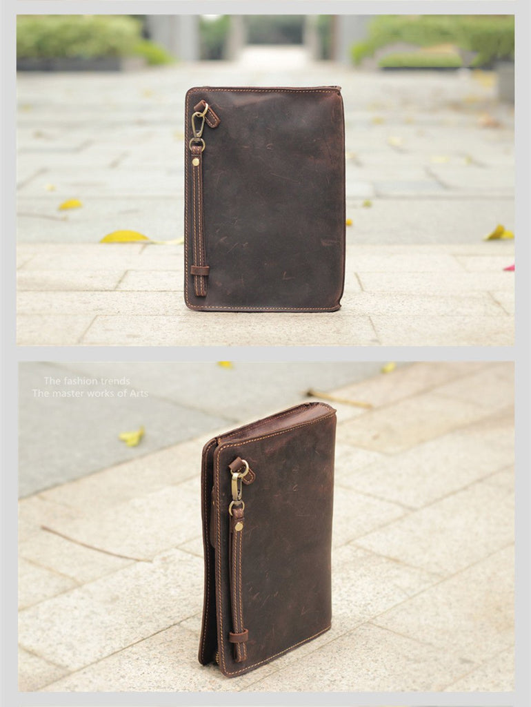Style: Retro Business Leather Mens Dark Brown Long Wallet Phone Bag Purse Clutch For Men
