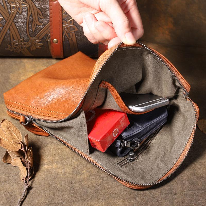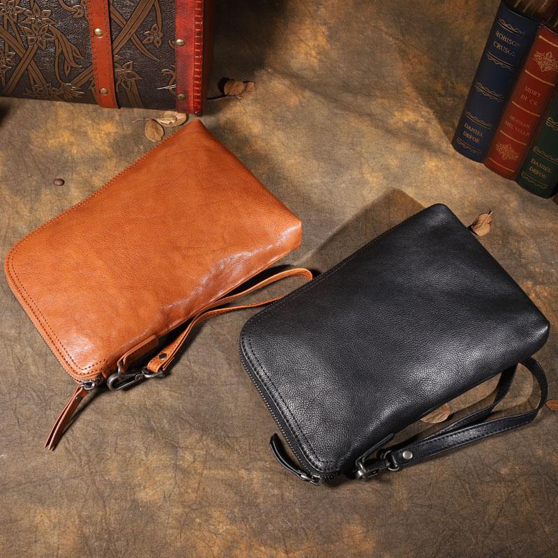 Design: Retro Leather Mens Brown Long Leather Wallet Wristlet Bag Multi-function Clutch Wallet for Men