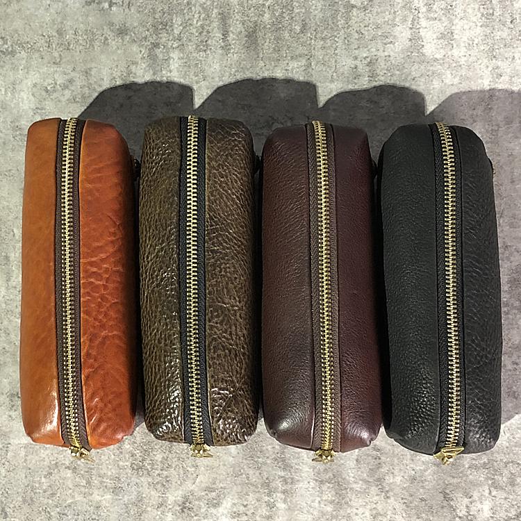 Design: Simple Handmade Leather Mens Black Pencil Case Small Bag Brown Clutch For Men