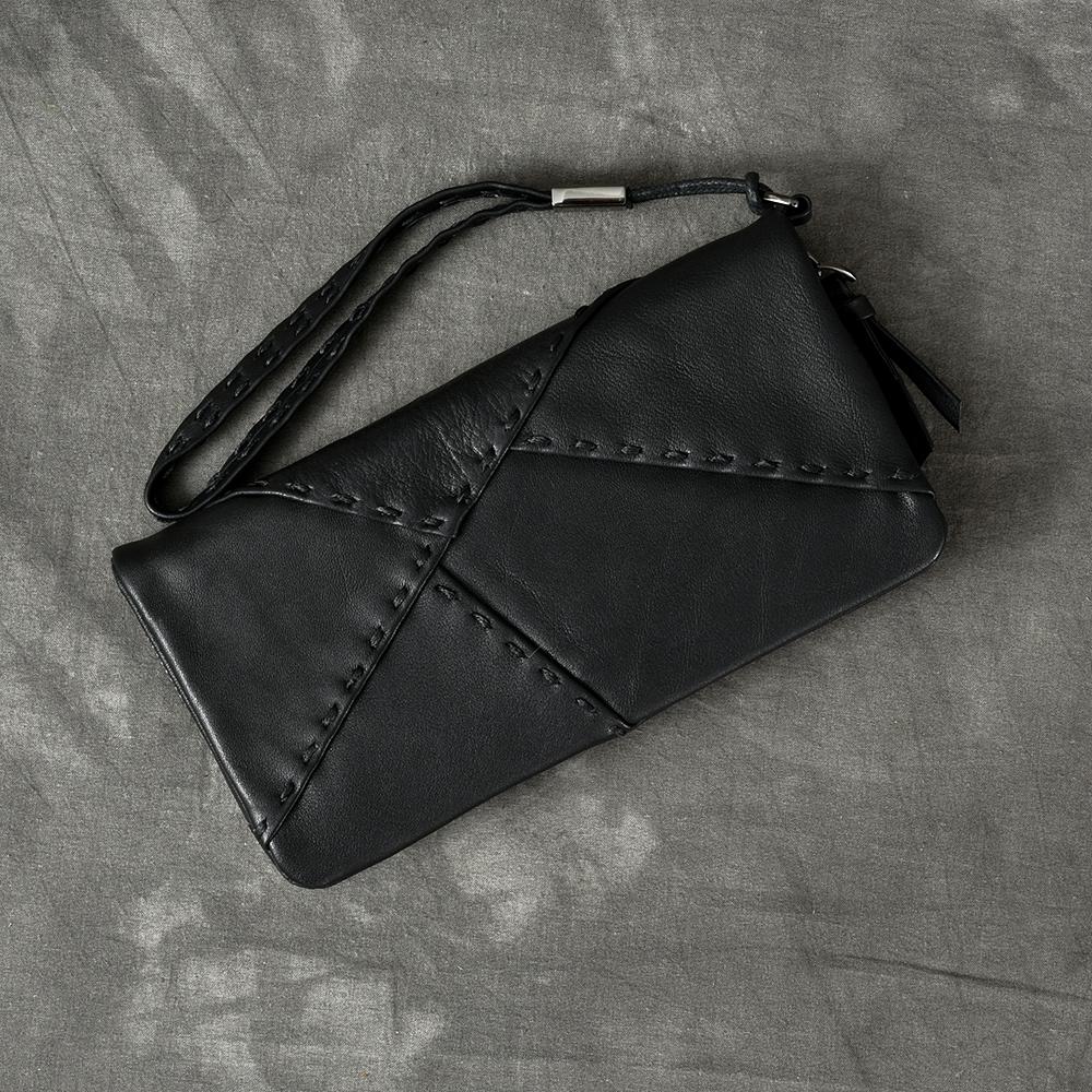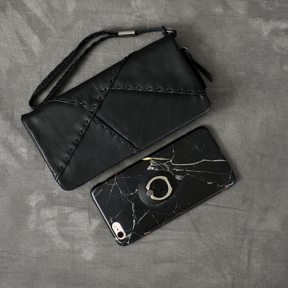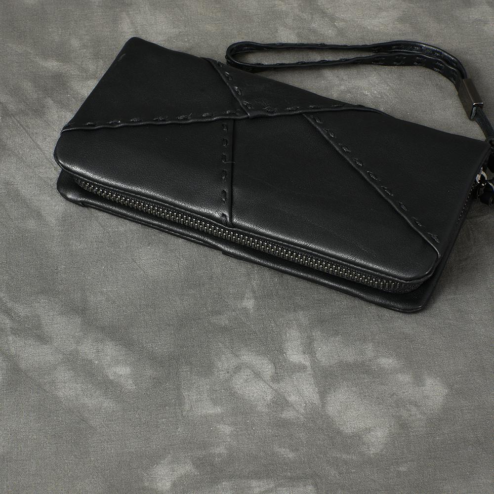 Design: Black Leather Mens Women's Business Clutch Bag Long Wallet For Men