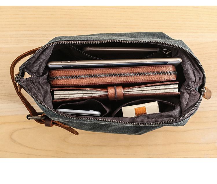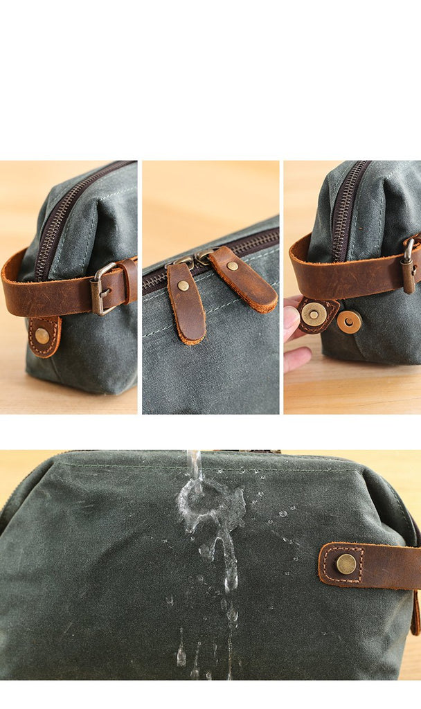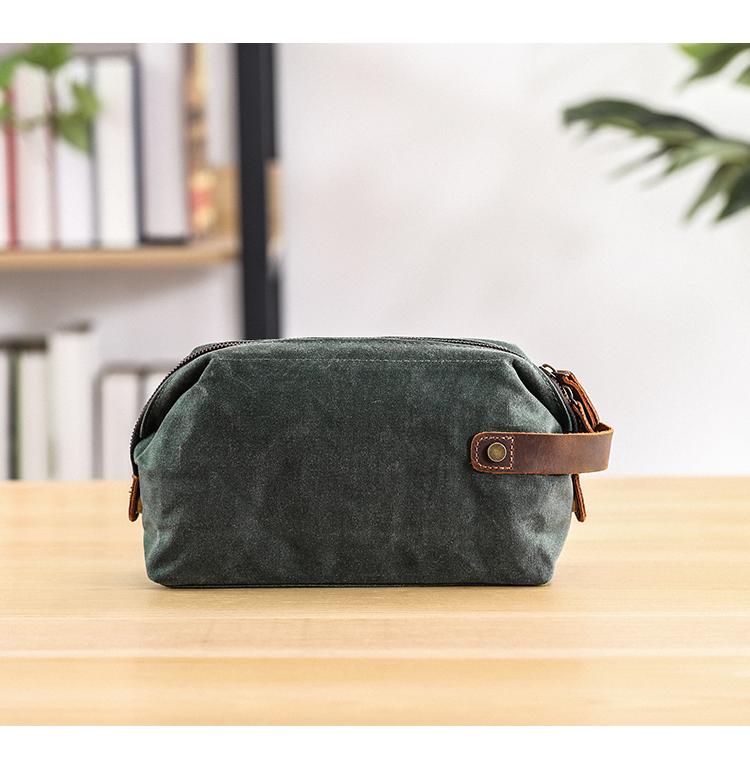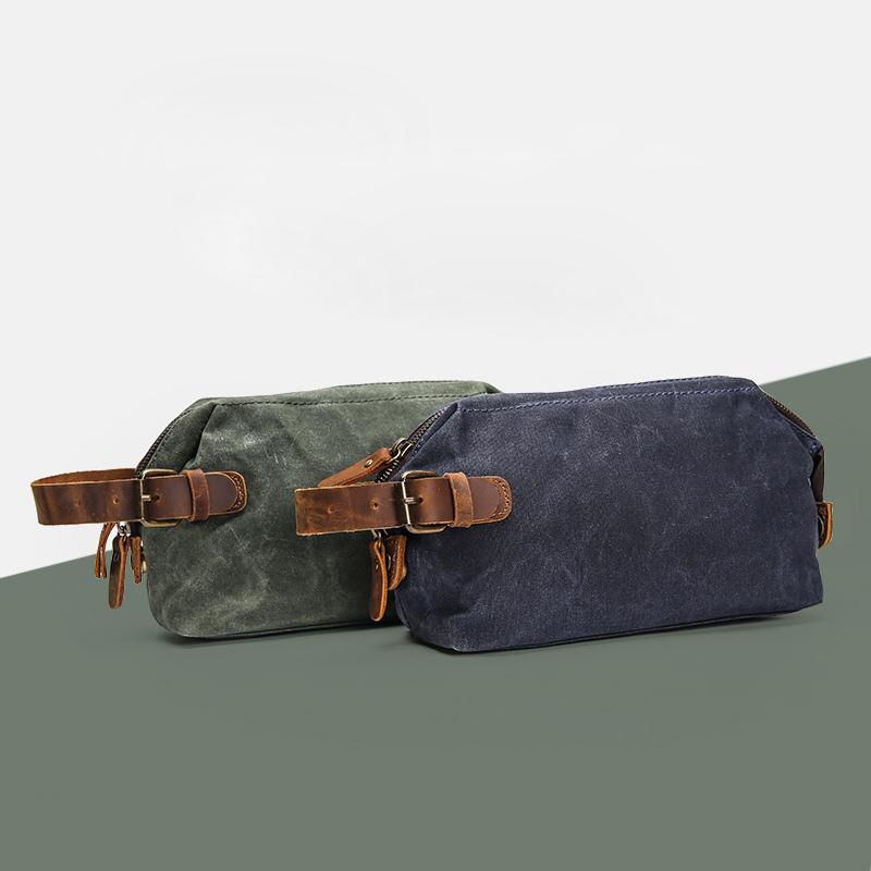 Design: Waxed Canvas Leather Mens Women's Waterproof Cosmetic Bag Clutch Bag Handbag Storage Bag Wash Bag For Men