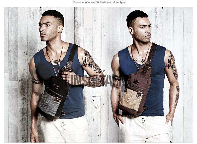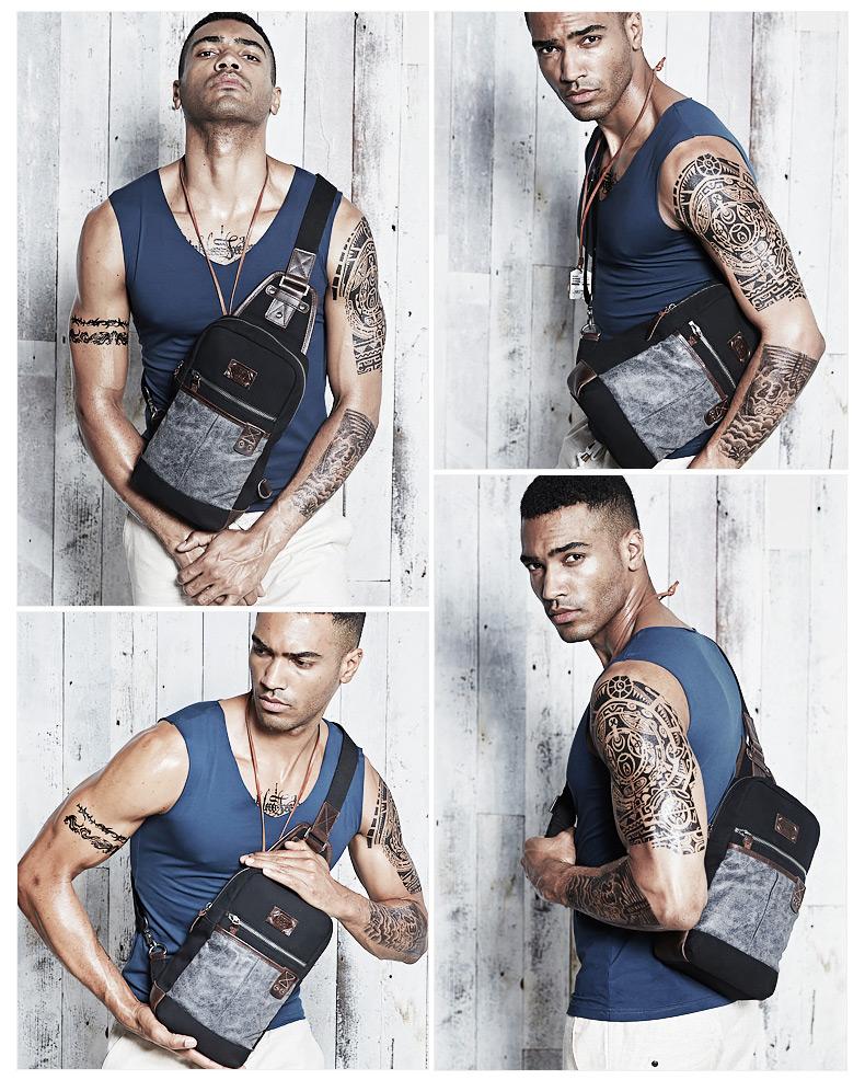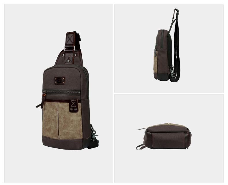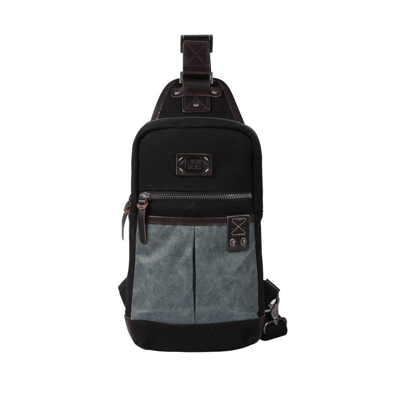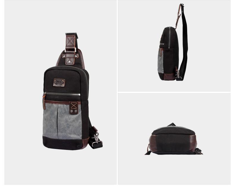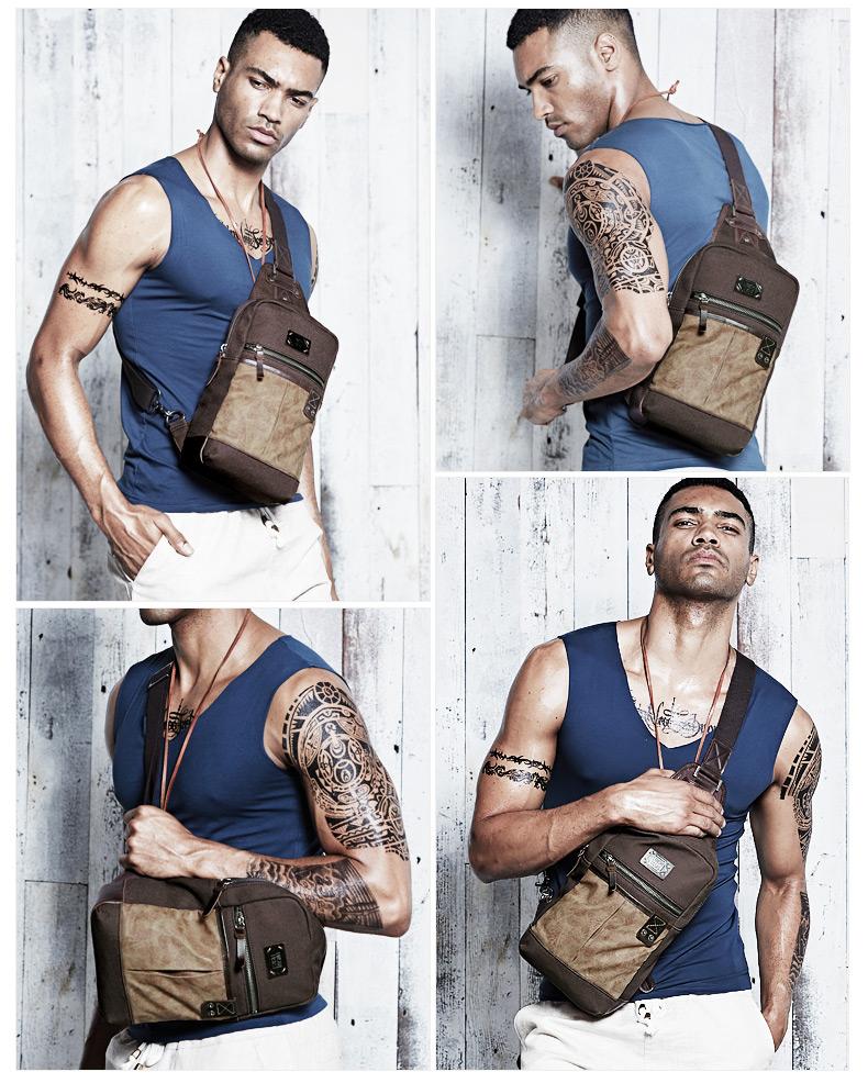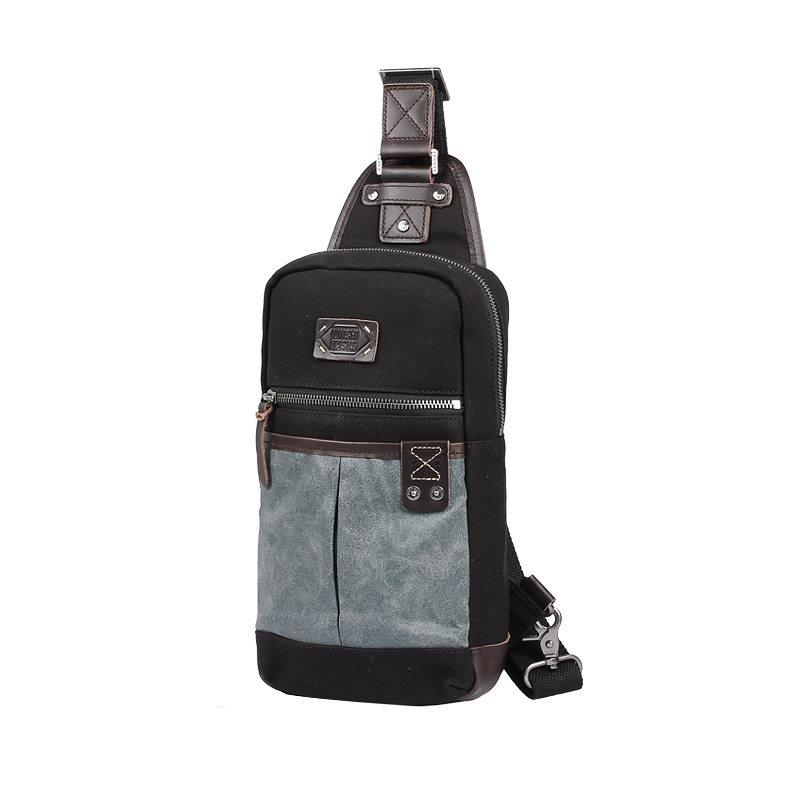 Design: Black Canvas Leather Sling Backpack Men's Sling Bag Chest Bag Dark Brown Canvas One shoulder Backpack For Men