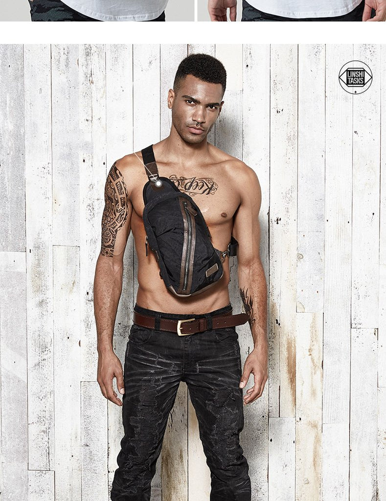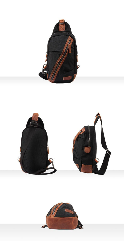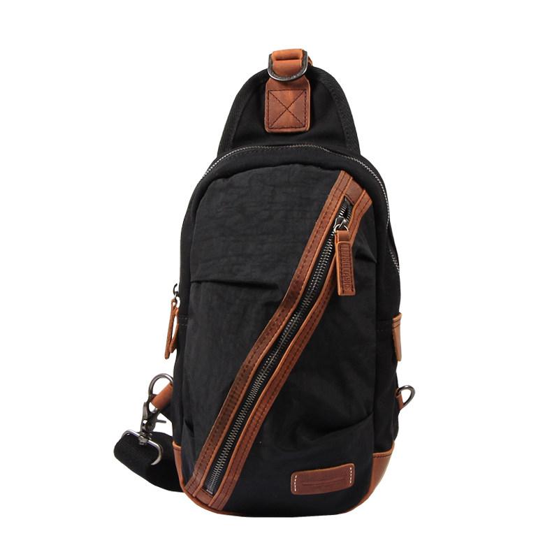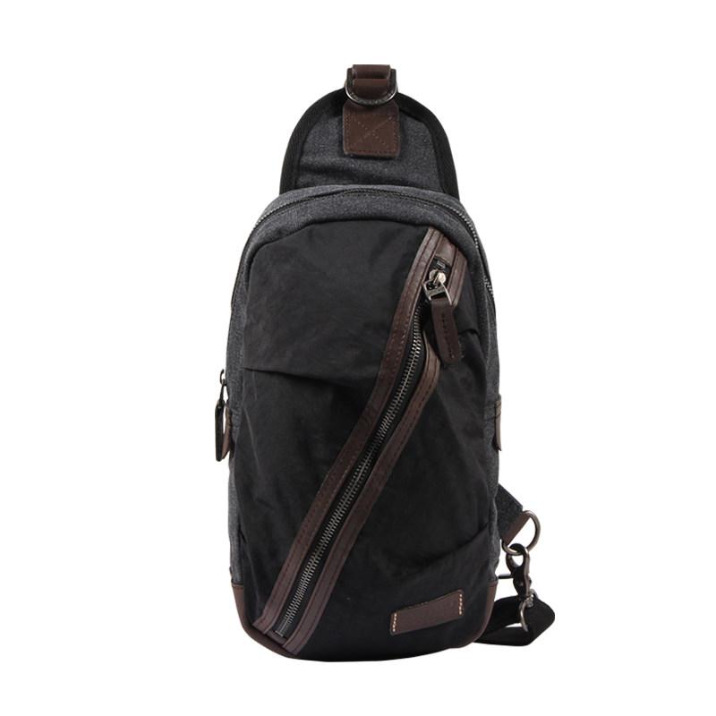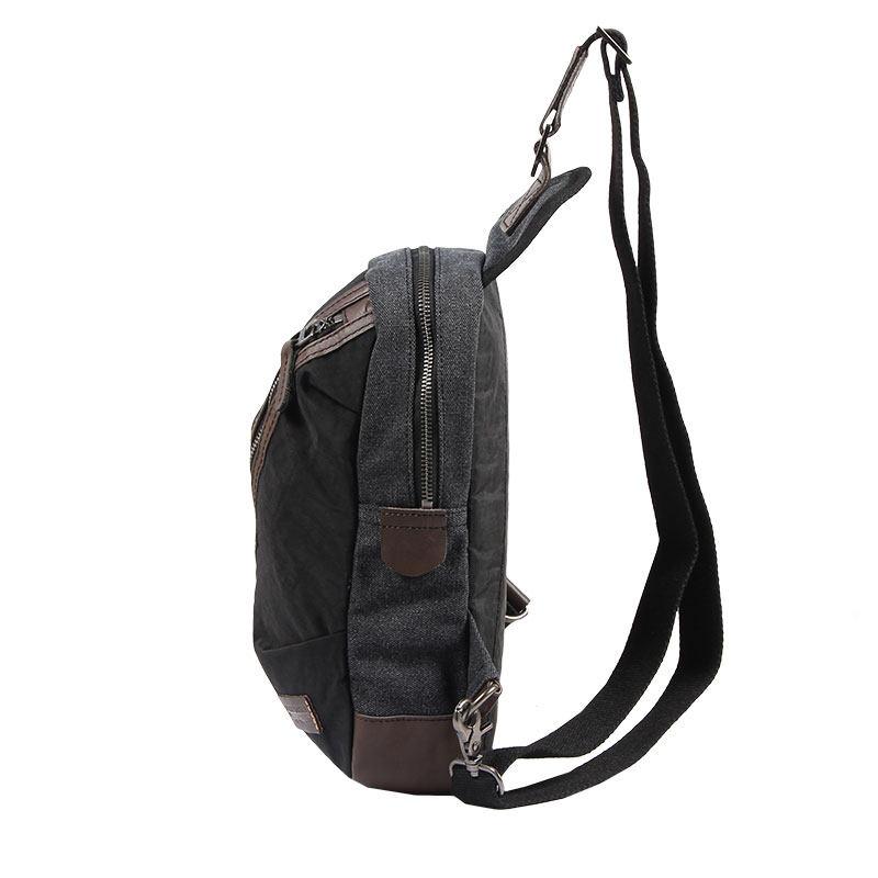 Design: Black Canvas Sling Backpack Men's Sling Bag Brown Chest Bag Canvas One shoulder Backpack For Men