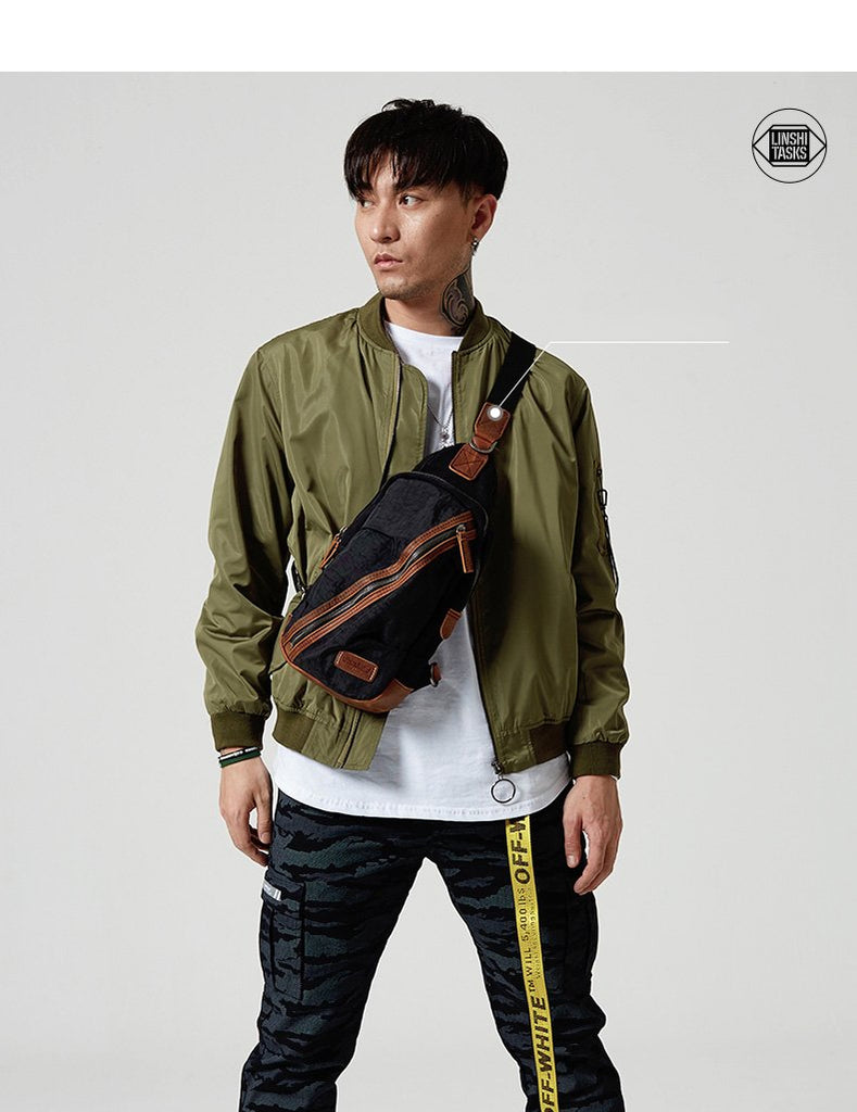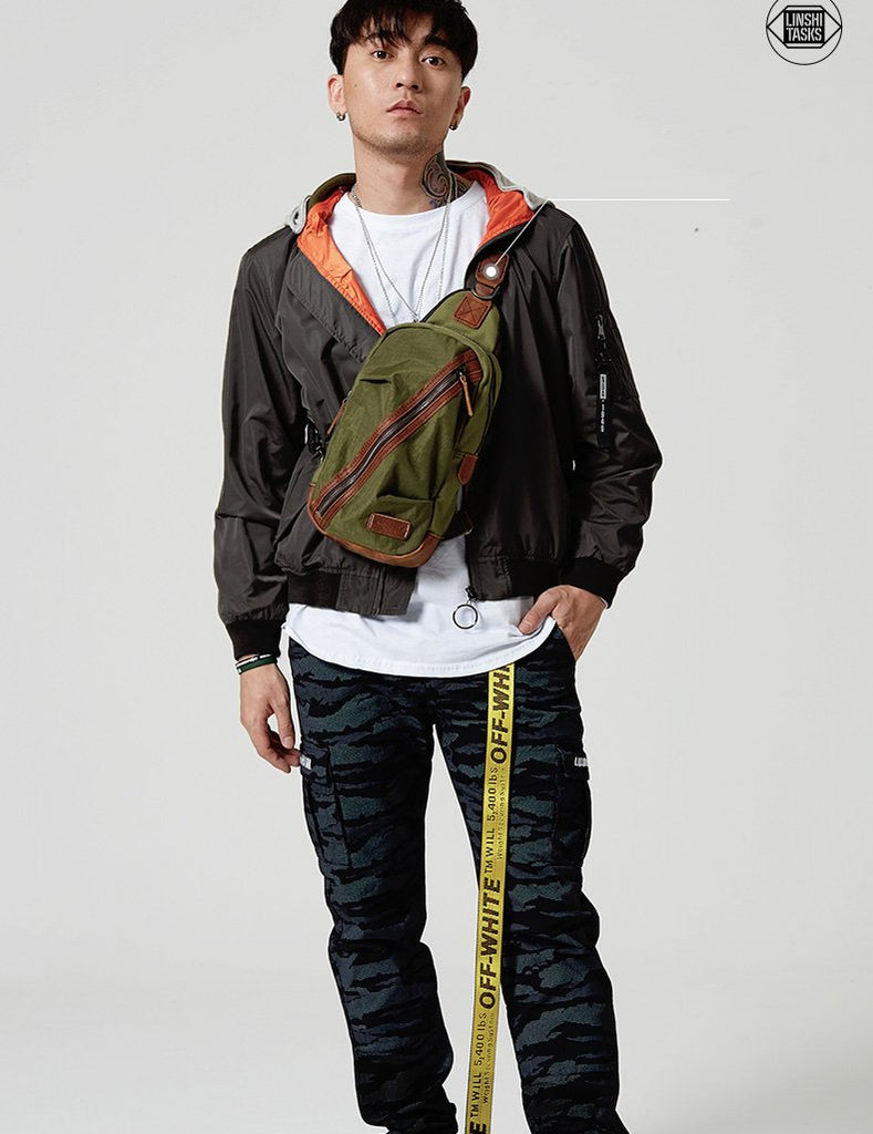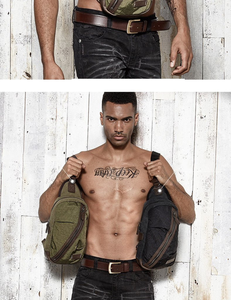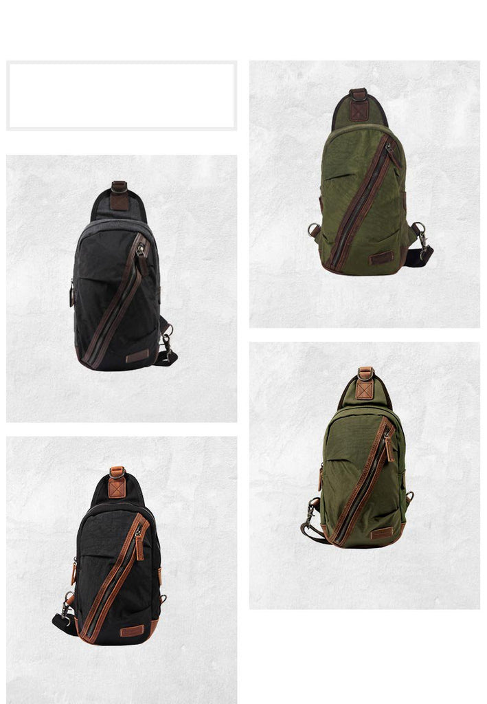 Black Canvas Sling Backpack Men's Sling Bag Green Chest Bag Canvas One shoulder Backpack For Men