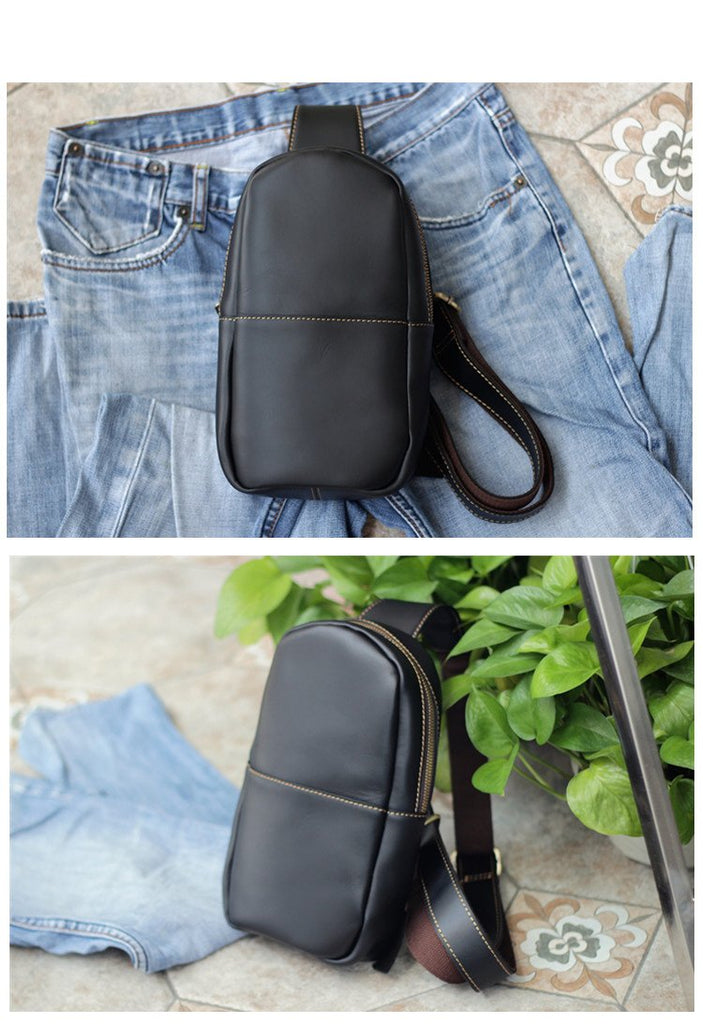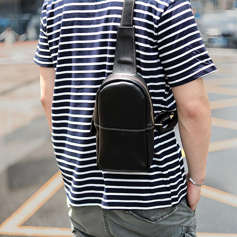 Design: Black Cool Leather Mens Chest Bag Shoulder Bag Brown Messenger Bag For Men