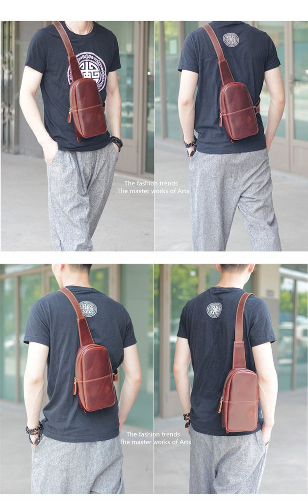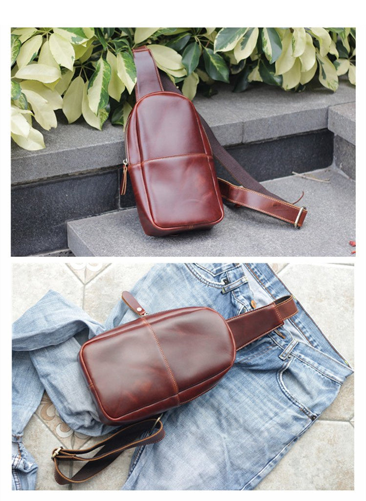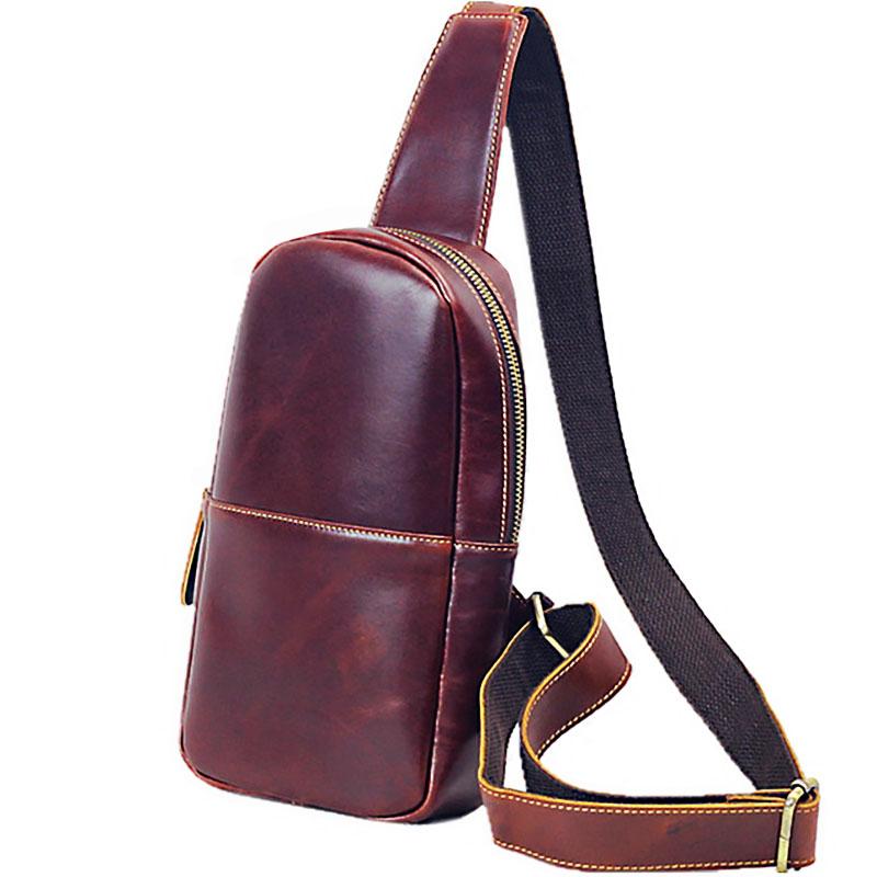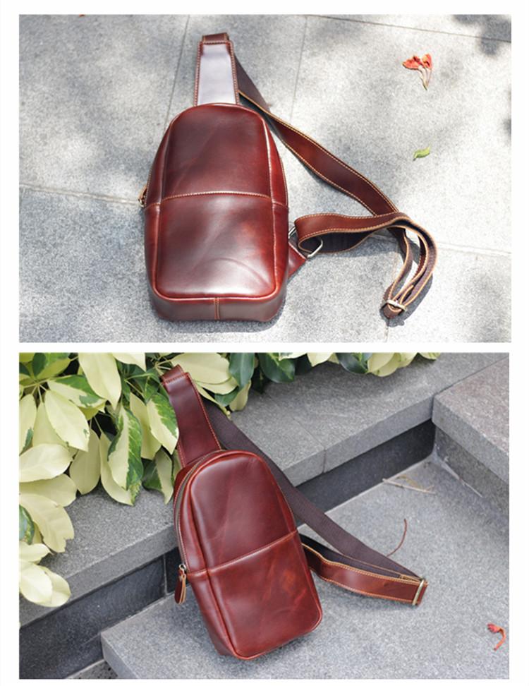 Style: Black Cool Leather Mens Chest Bag Shoulder Bag Brown Messenger Bag For Men