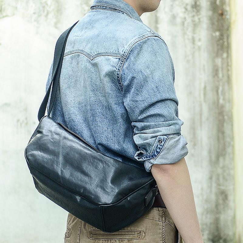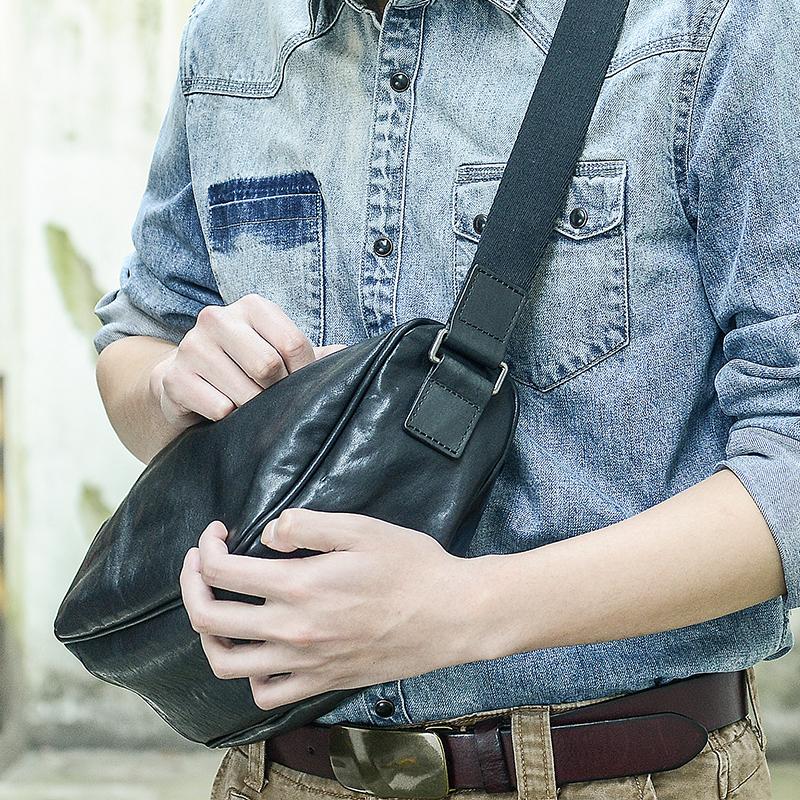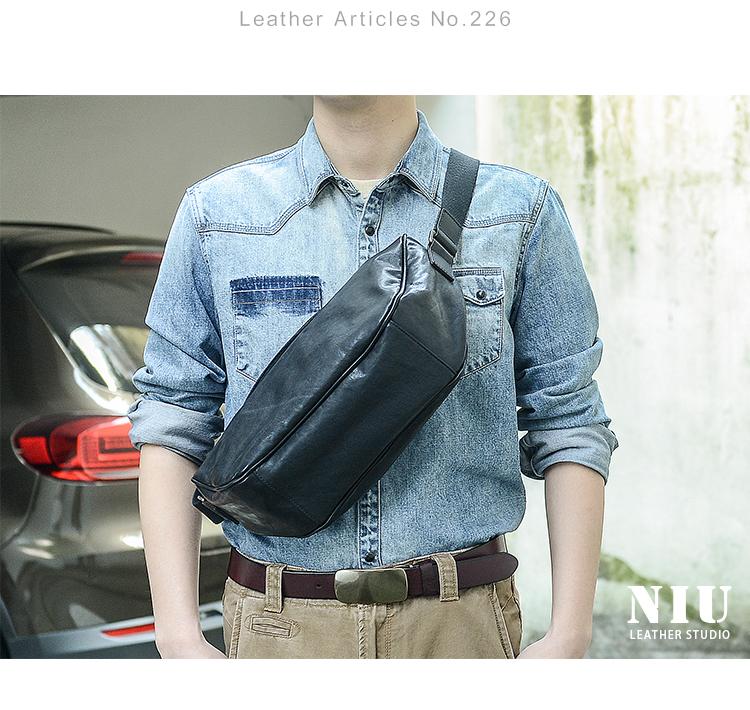 Style: Black Handmade Leather Men Chest Bag Messenger Bag One Shoulder Backpack Shoulder Bag For Men