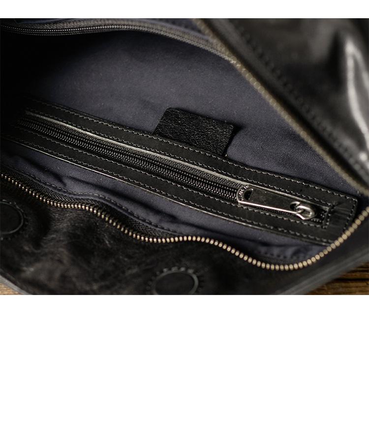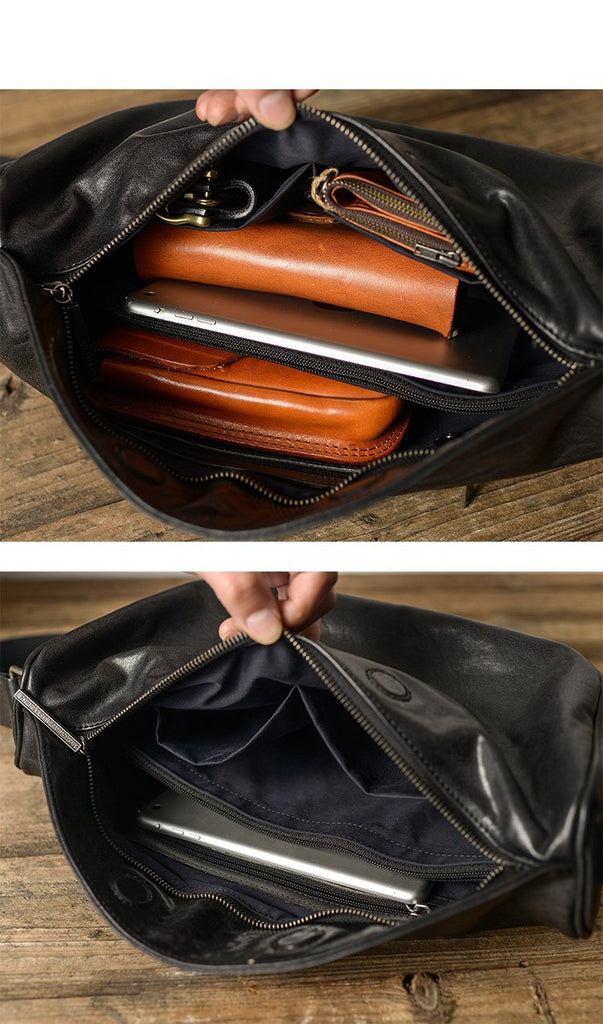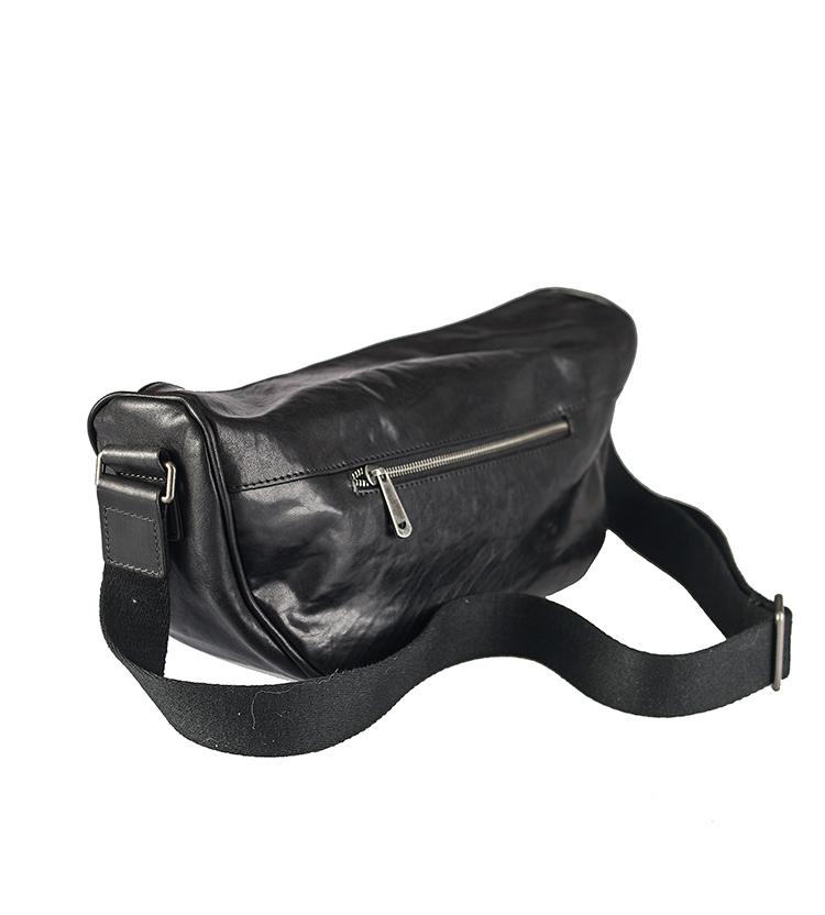 Design: Black Handmade Leather Men Chest Bag Messenger Bag One Shoulder Backpack Shoulder Bag For Men