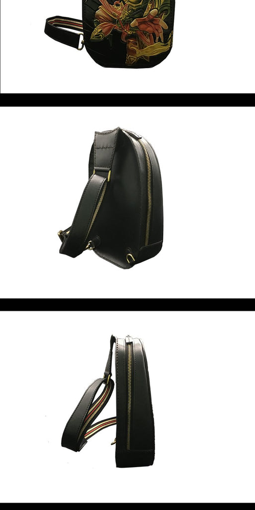 Design: Black Handmade Tooled Leather Monkey King Sling Bag Chest Bag One Shoulder Backpack For Men