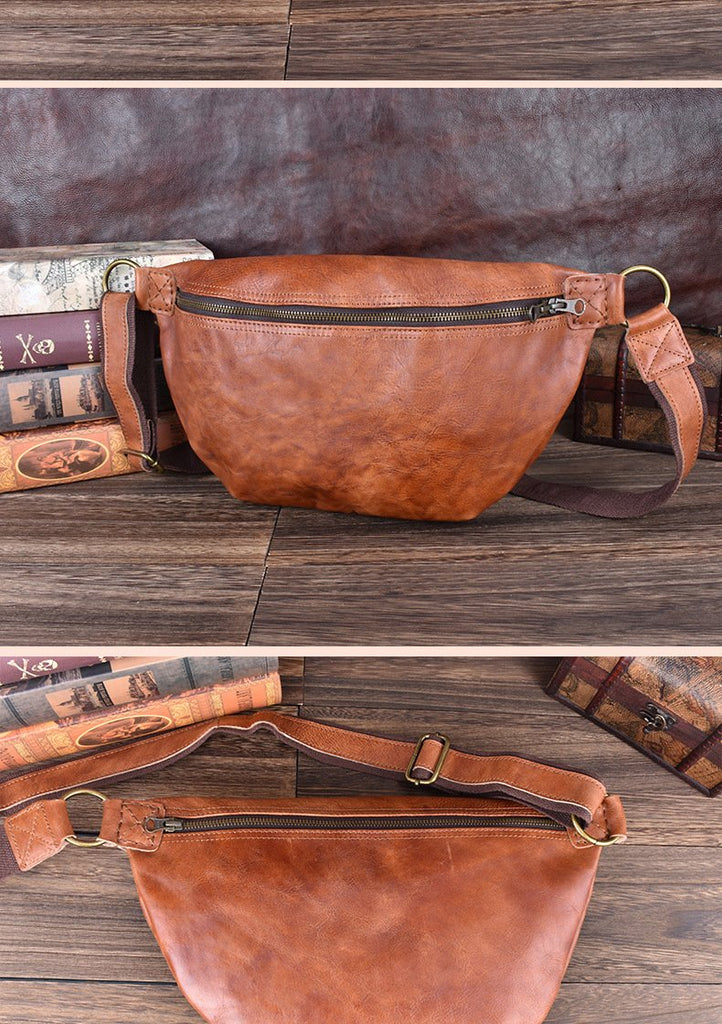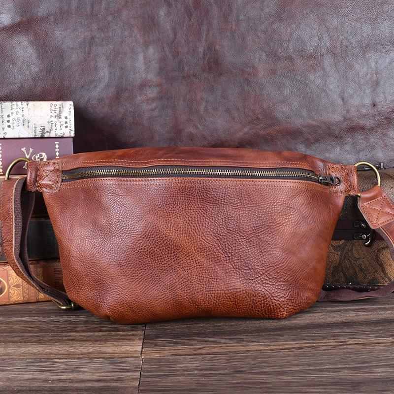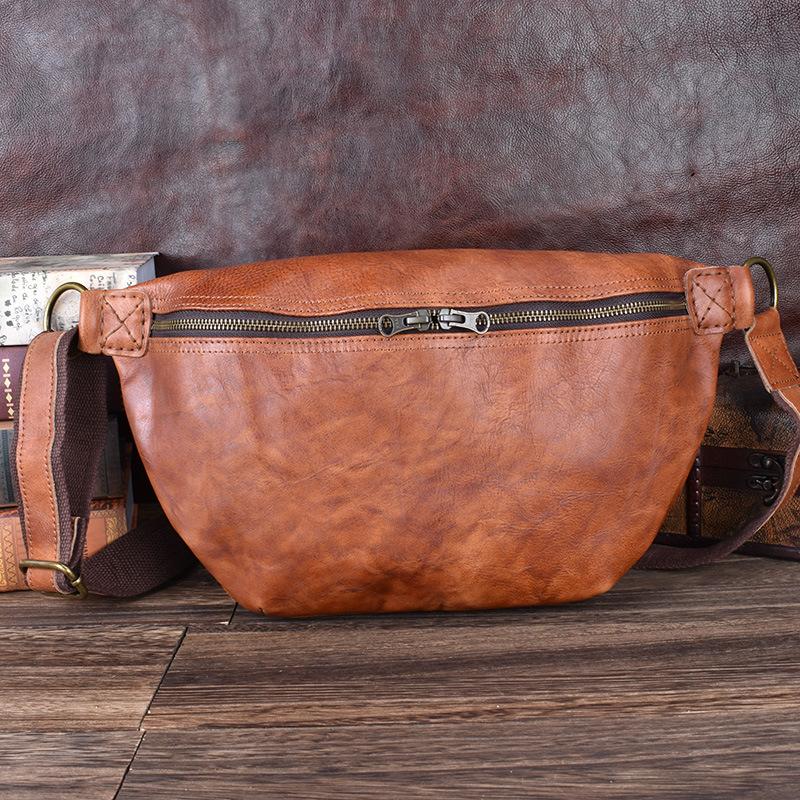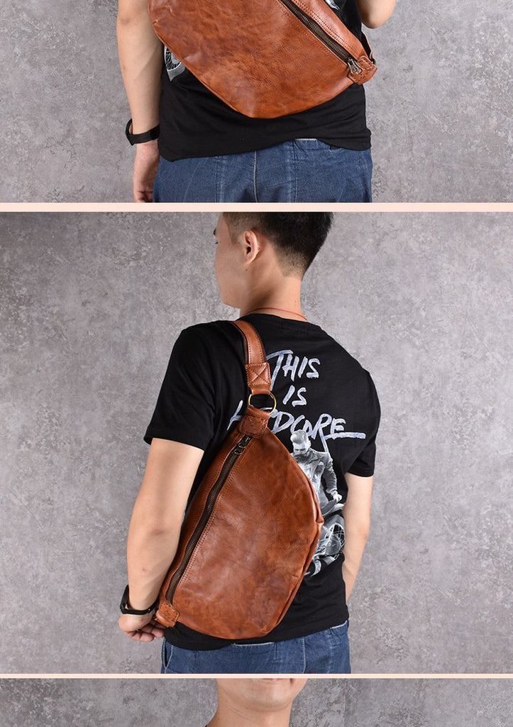 The Leather Men's Large Sling Bag is a fusion of style and practicality, designed to cater to the diverse needs of modern men. With dimensions of 36cm x 23cm x 4cm, it offers a spacious yet streamlined design that makes it versatile enough to be worn as a sling bag, chest bag, shoulder bag, or crossbody bag. Although it takes inspiration from the classic fanny pack, its size is too substantial to be worn around the waist, making it an ideal choice for those who prefer a larger, more functional carry-all.