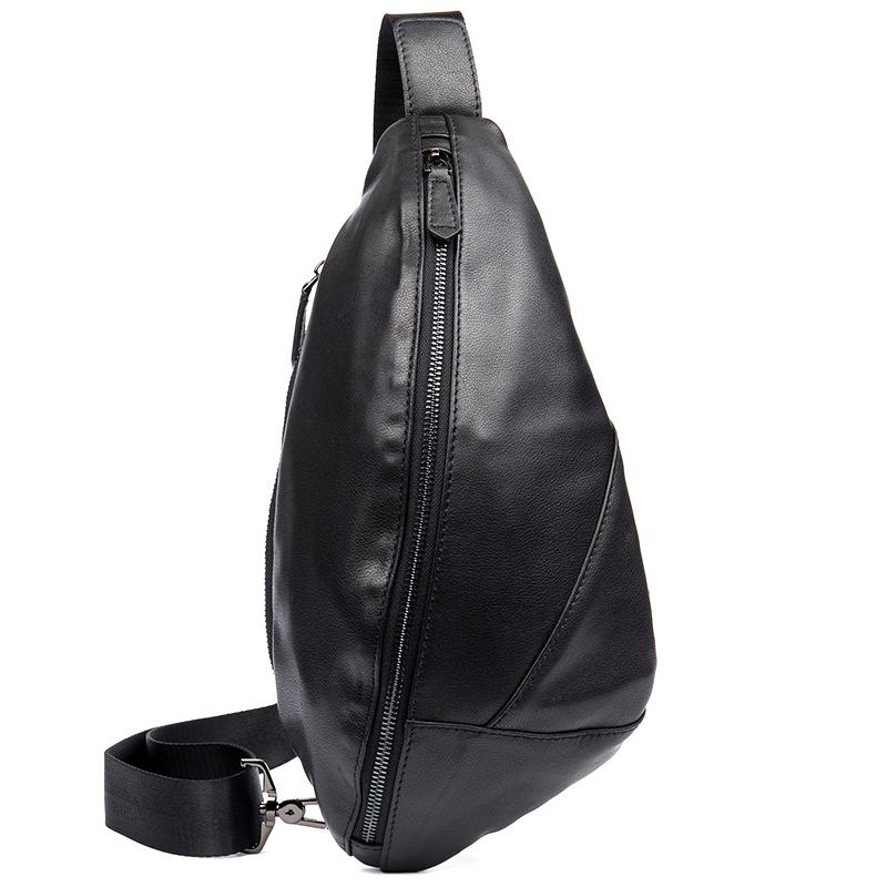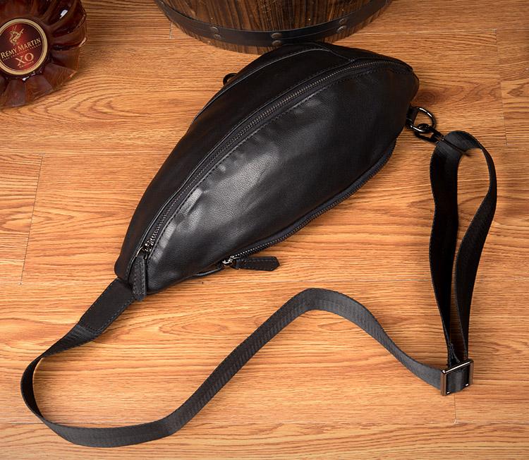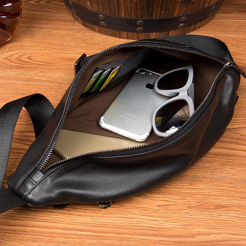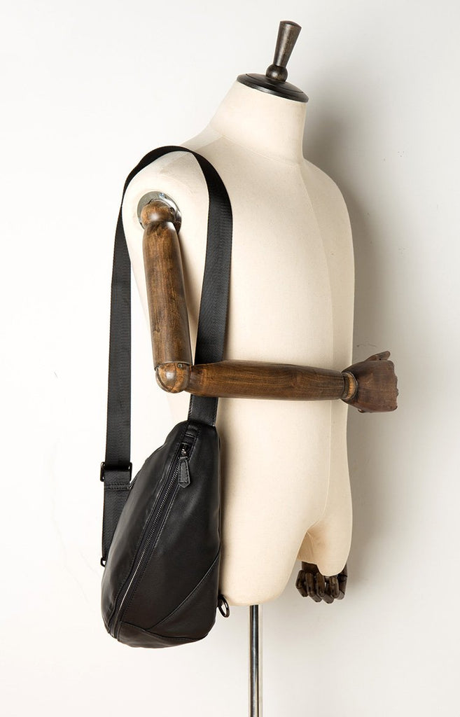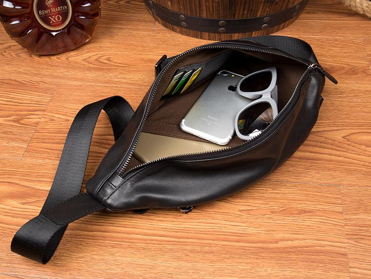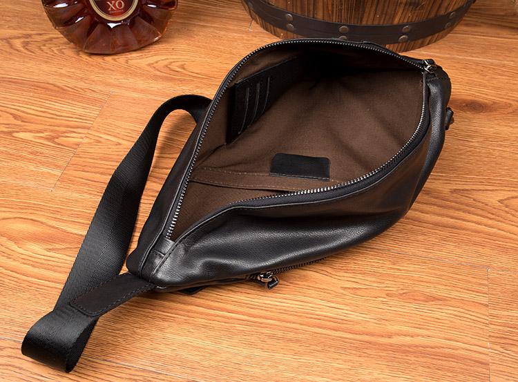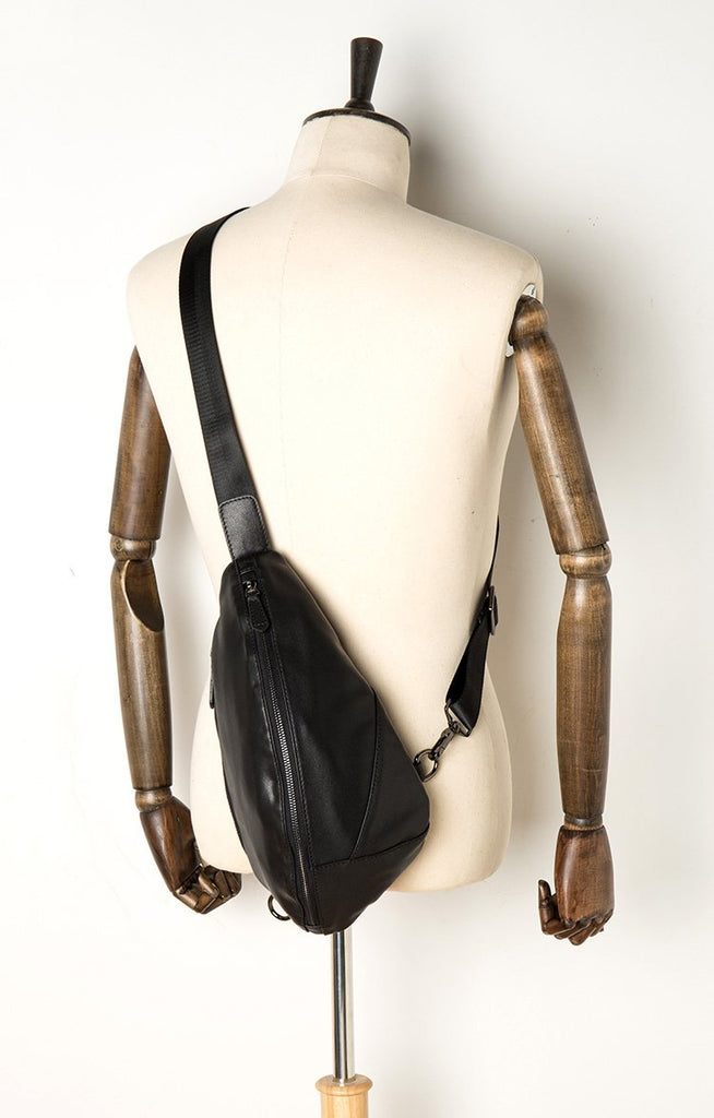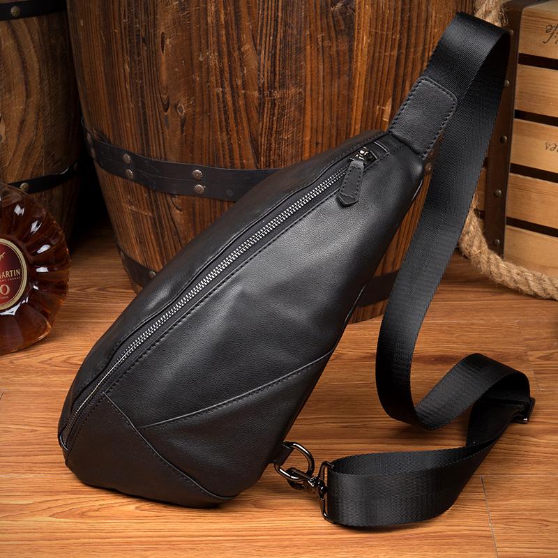 Design: Black Leather Mens 8 inches Cool Sling Bags Crossbody Bag Chest Bag for men