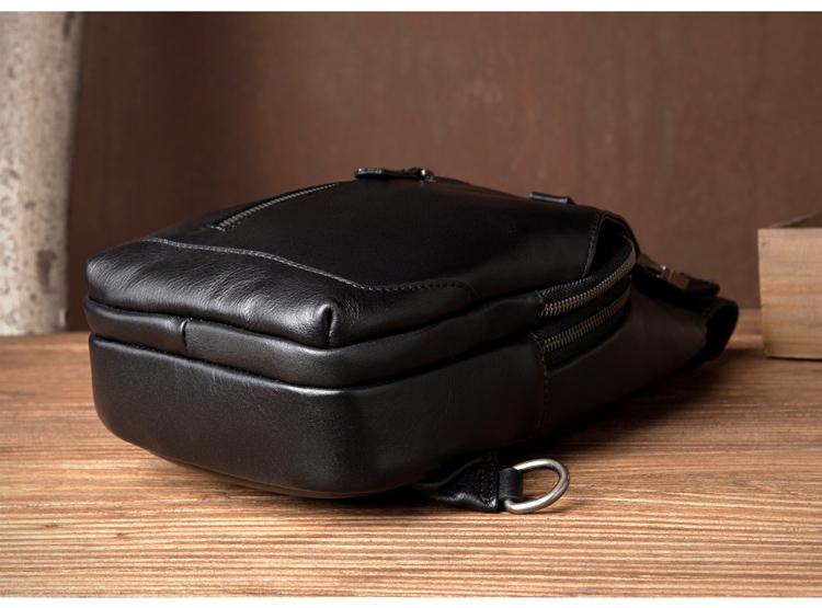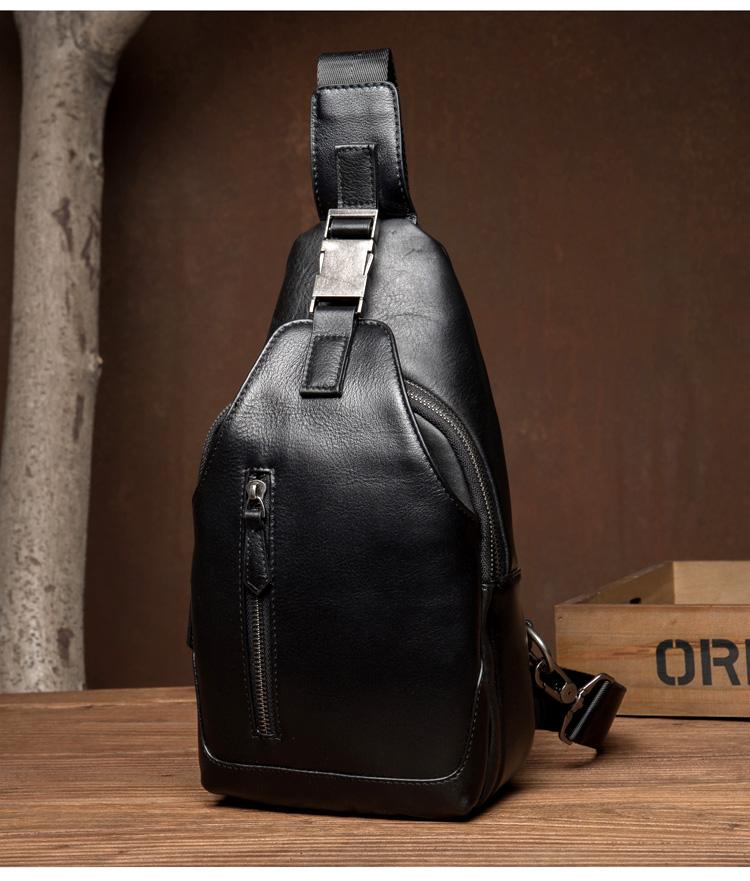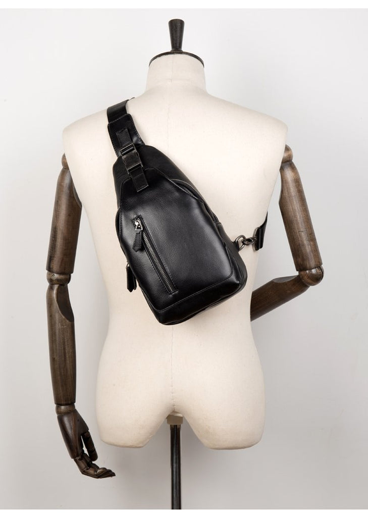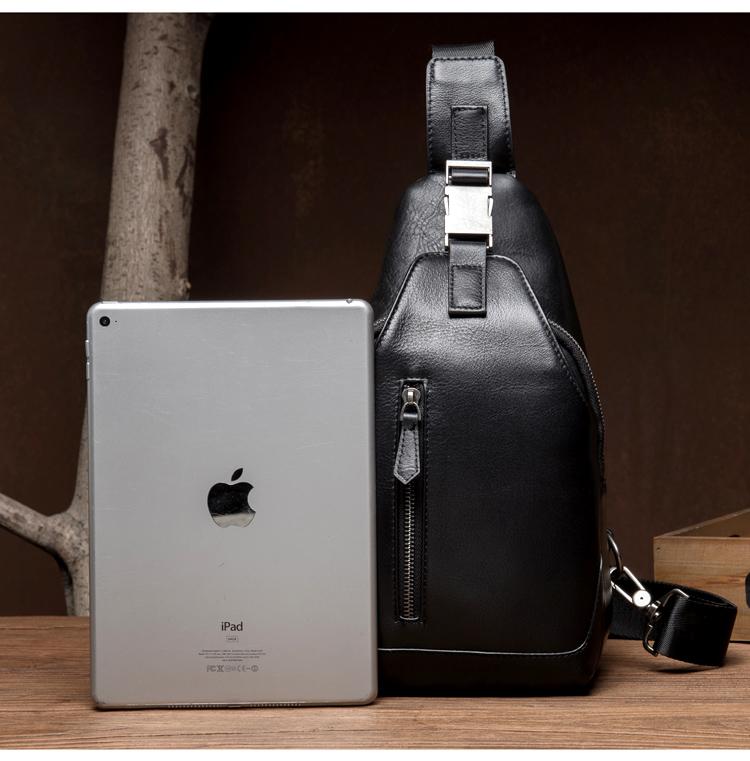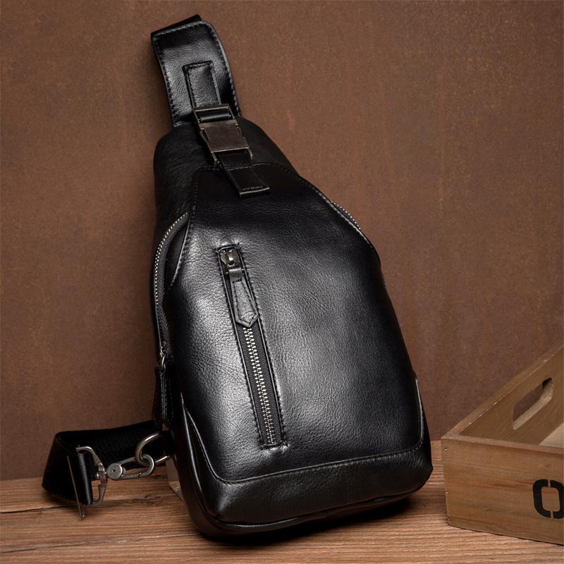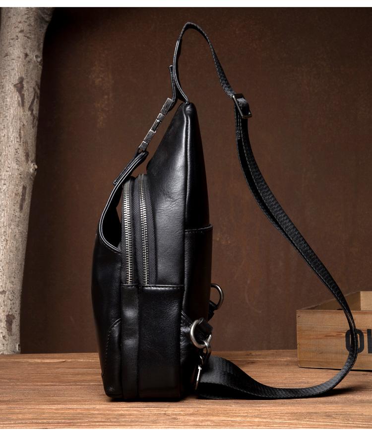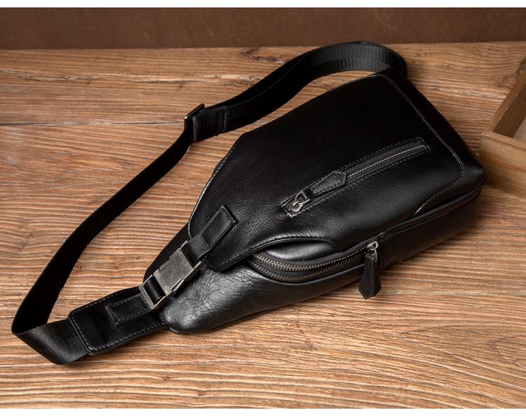 Design: Black Leather Mens 8 inches Cool Sling Bags Crossbody Bag Chest Bags for men