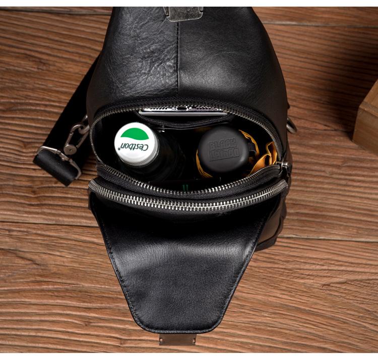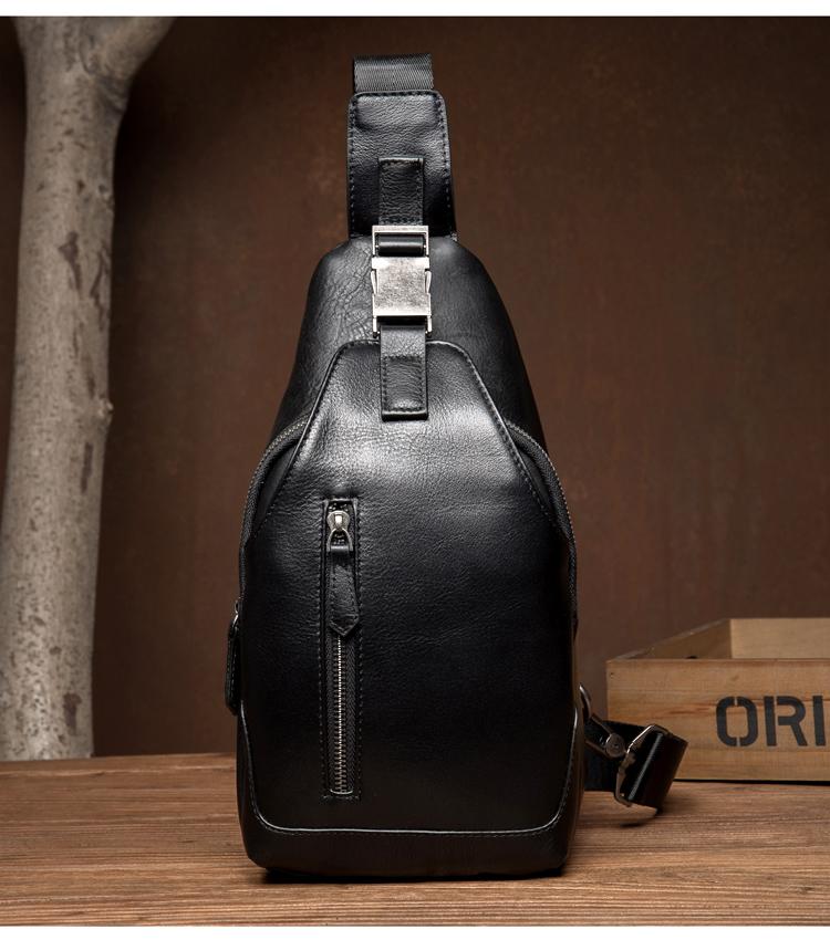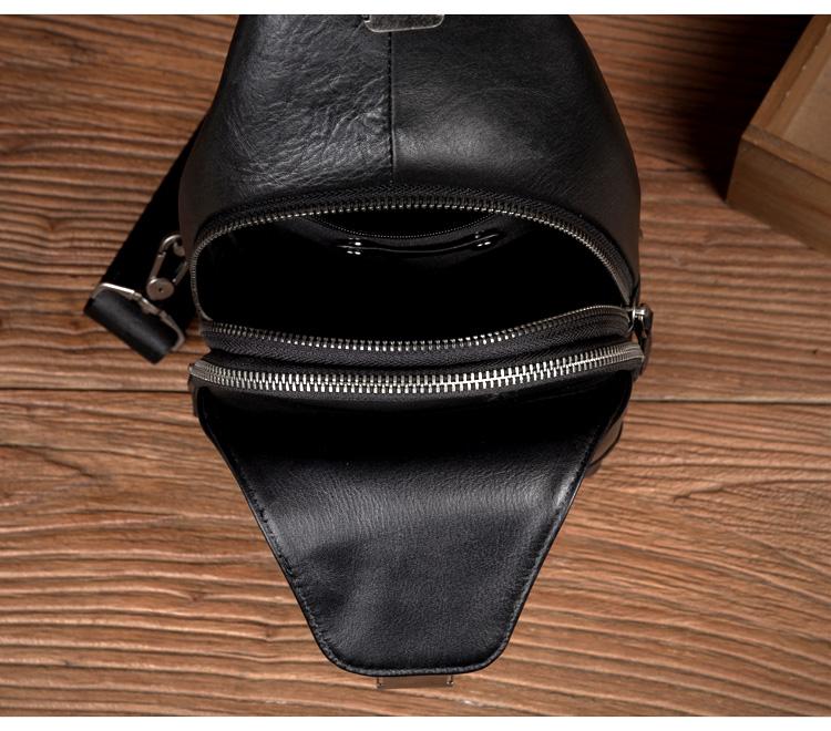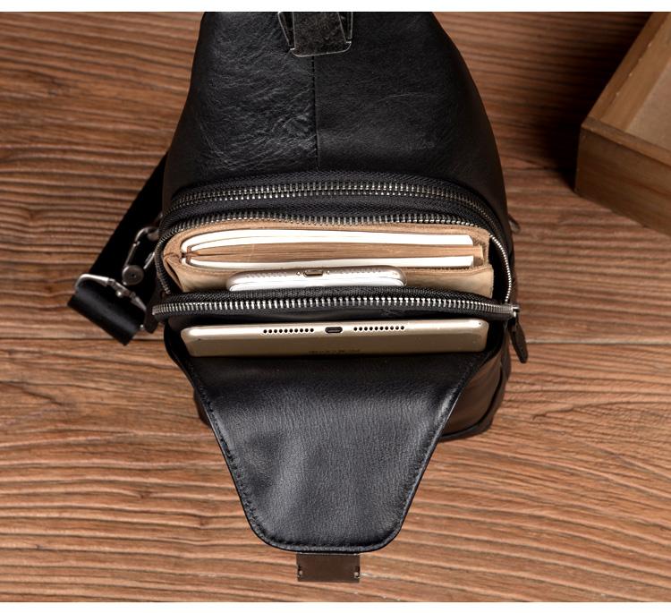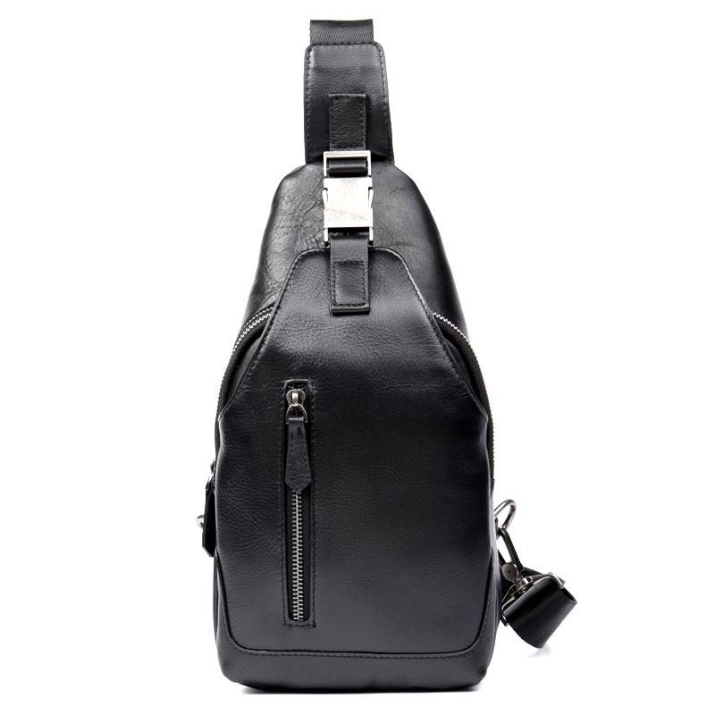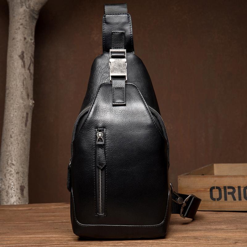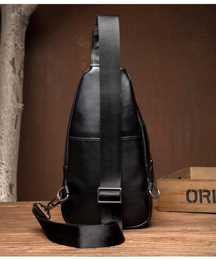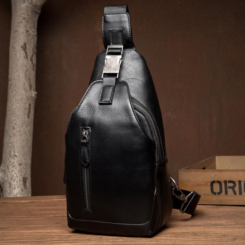 Design: Black Leather Mens 8 inches Cool Sling Bags Crossbody Bag Chest Bags for men