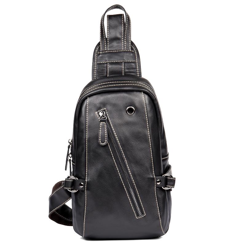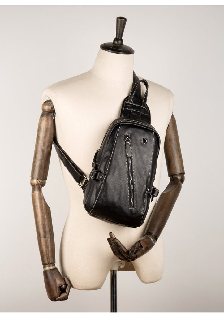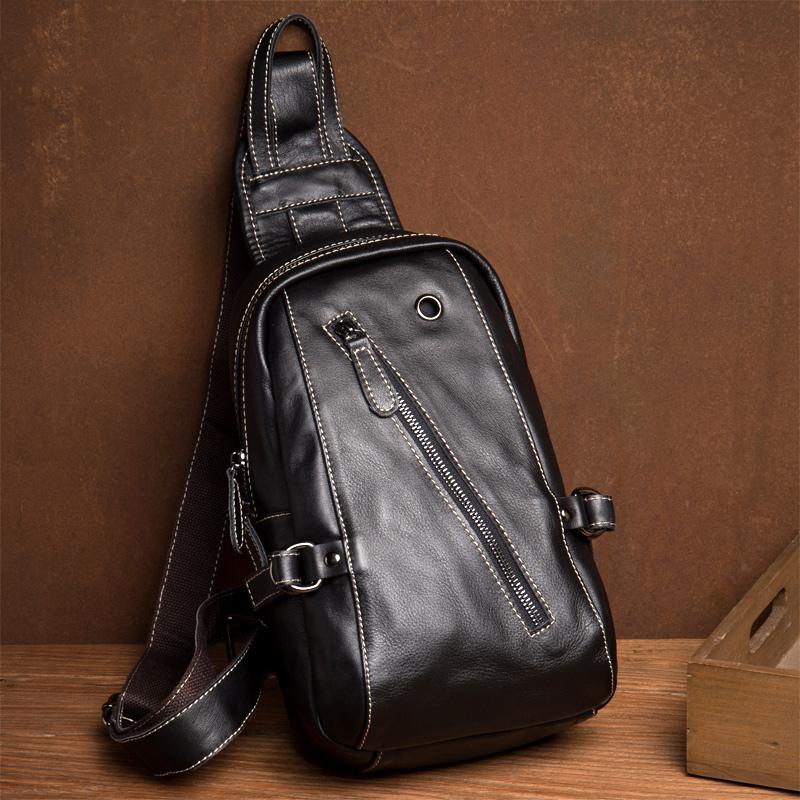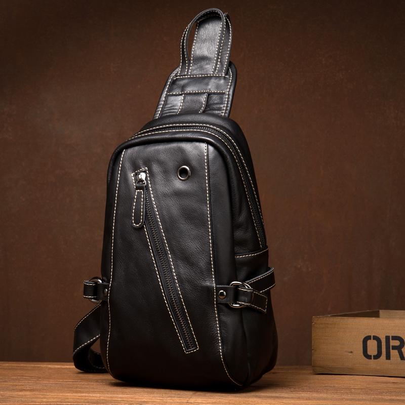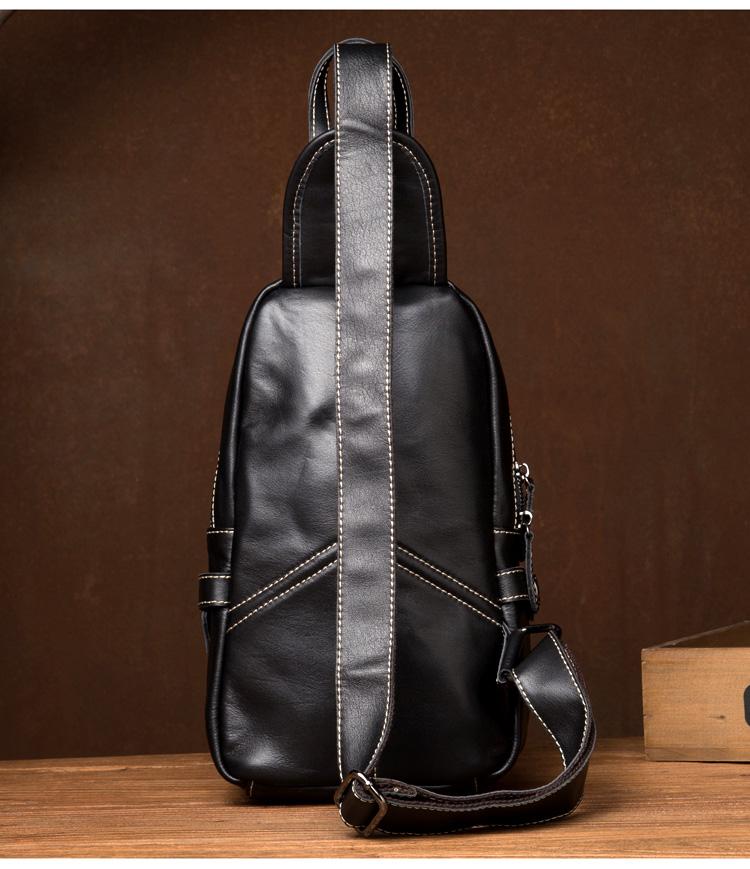 Design: Black Leather Mens 8-inches Cool Sling Bags Crossbody Bag Chest Bags for men