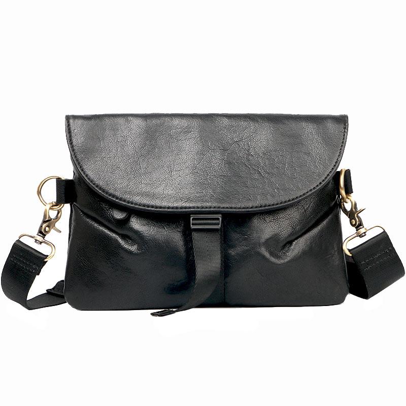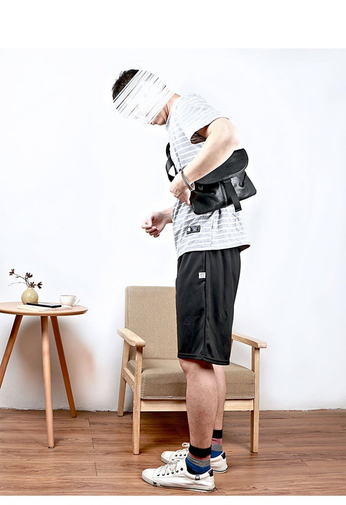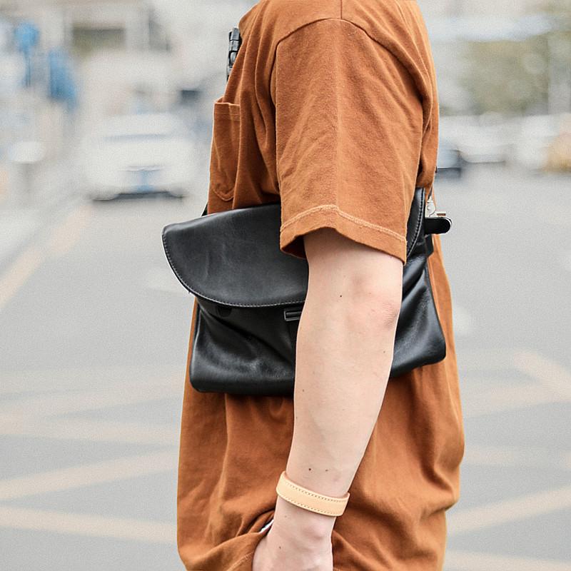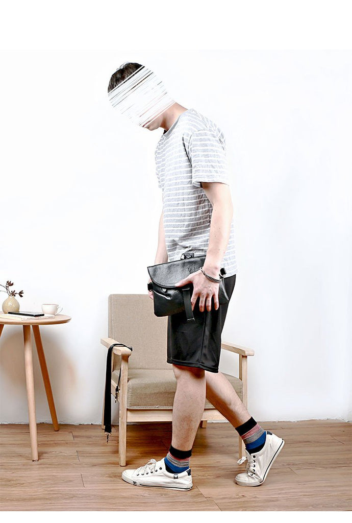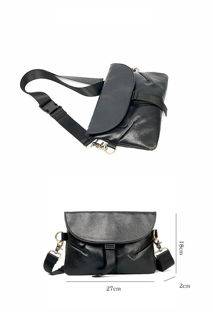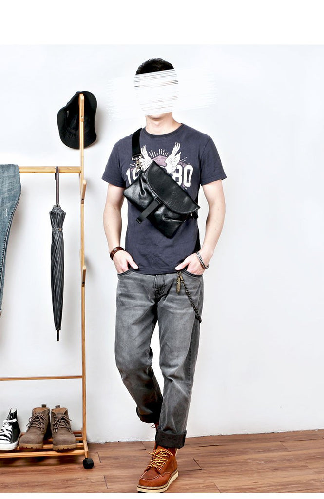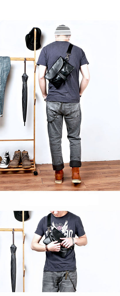 Style: Black Leather Mens 8 inches Chest Bag Messenger Bag One Shoulder Bag For Men